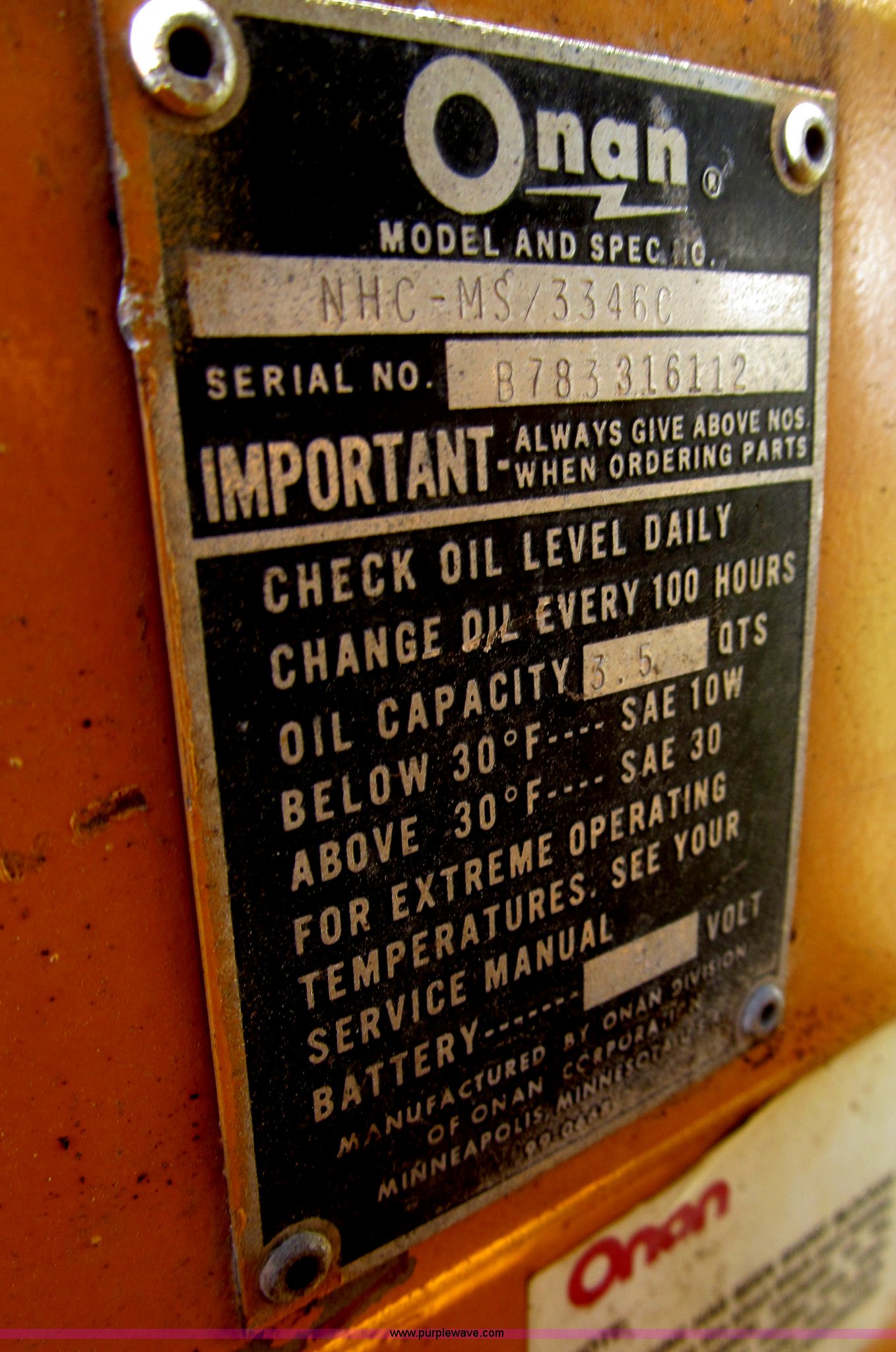 - Onan NHC-MS/3346C two cylinder gas engine