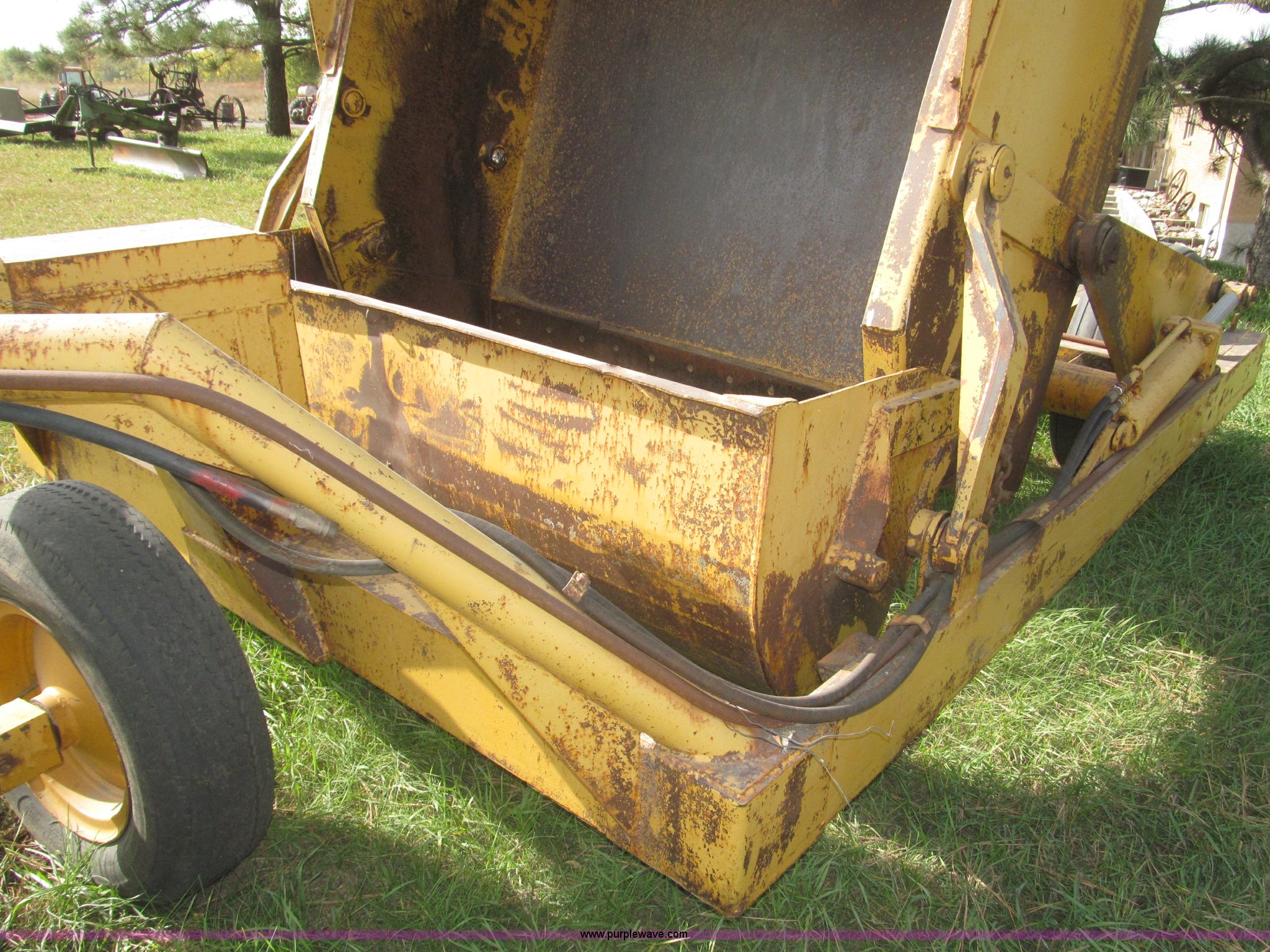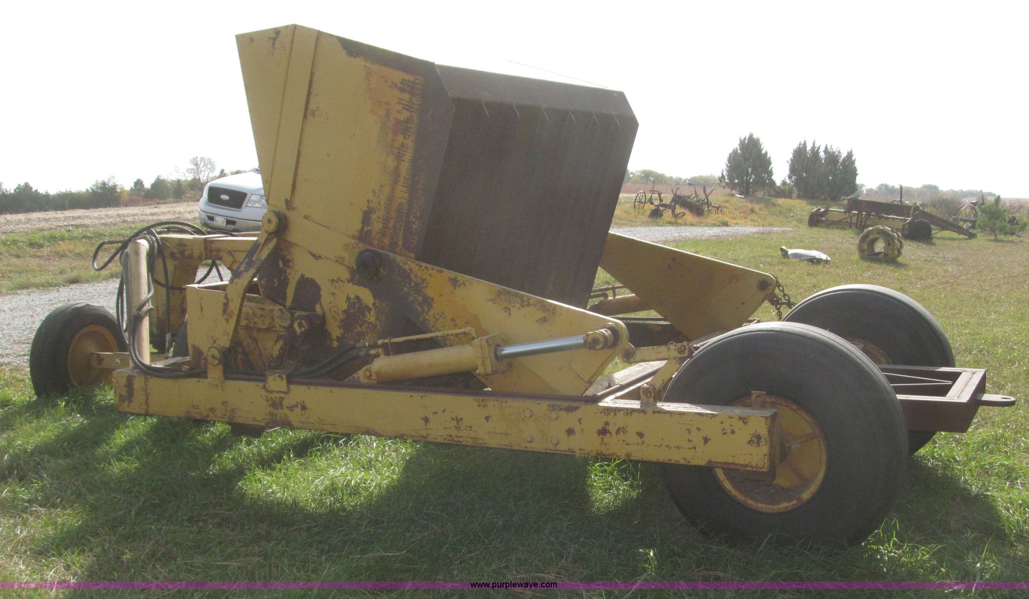 Purple Wave is selling a used Pull Type Scraper in Nebraska. This item is a Pull-type steerable hydraulic dirt scraper with the following: Model 75-RF, 79"W scraper, Bolt-on reversible cutting edge, Hydraulic lift and dump, Dual hydraulic cylinders, Rigid frame, Telescoping tongue, (2) rear hydraulic couplers, Hydraulic hose with Pioneer fittings, Rear pin hitch, Steerable front axle, 7.50-16LT front tires, 40 x 14 rear tires, Serial FG-7463