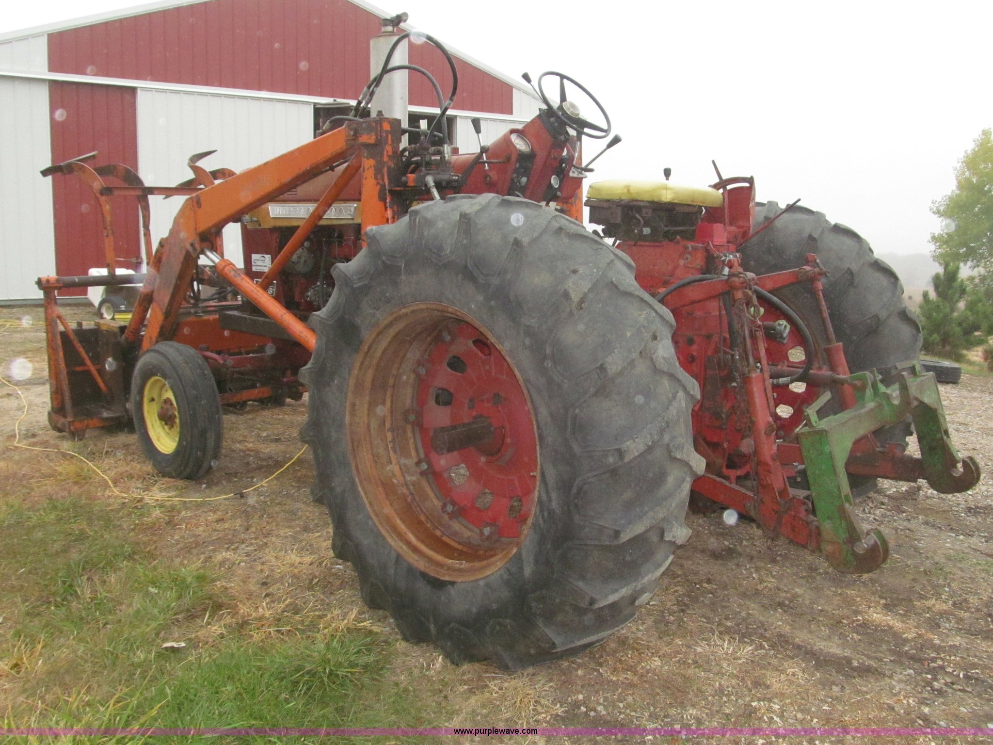 Purple Wave is selling a used Tractor in Nebraska. This item is a 1971 International Farmall 826 tractor with the following: 9,397 hours on meter, International Harvester D358 5.9L six cylinder diesel engine, 92 PTO HP, Manual transmission, 16F-8R gears, Torque amplifier non-operational, Spring suspension seat, Block heater, Loader, Three lever control, 78"W x 24"H grapple and fork backrest, 42"L x 4"W x 20"H adjustable forks, Four tine grapple attachment, Tines bent,, Class II three point, Quick attach not included, 540/1000 PTO, (2) rear hydraulic remotes, 37 gallon fuel tank, 105" wheelbase, 7.50-16 front tires, Original front wheels will be installed, One new tire and tube, 18.4-34 rear tires, Seat damaged, Hole in one fork, Recently replaced battery, Injectors rebuilt in 2012, Injection pump factory rebuild with two year warranty in 2013, One brake repaired, Torque amplifier non-operational, Serial 2510132U010513