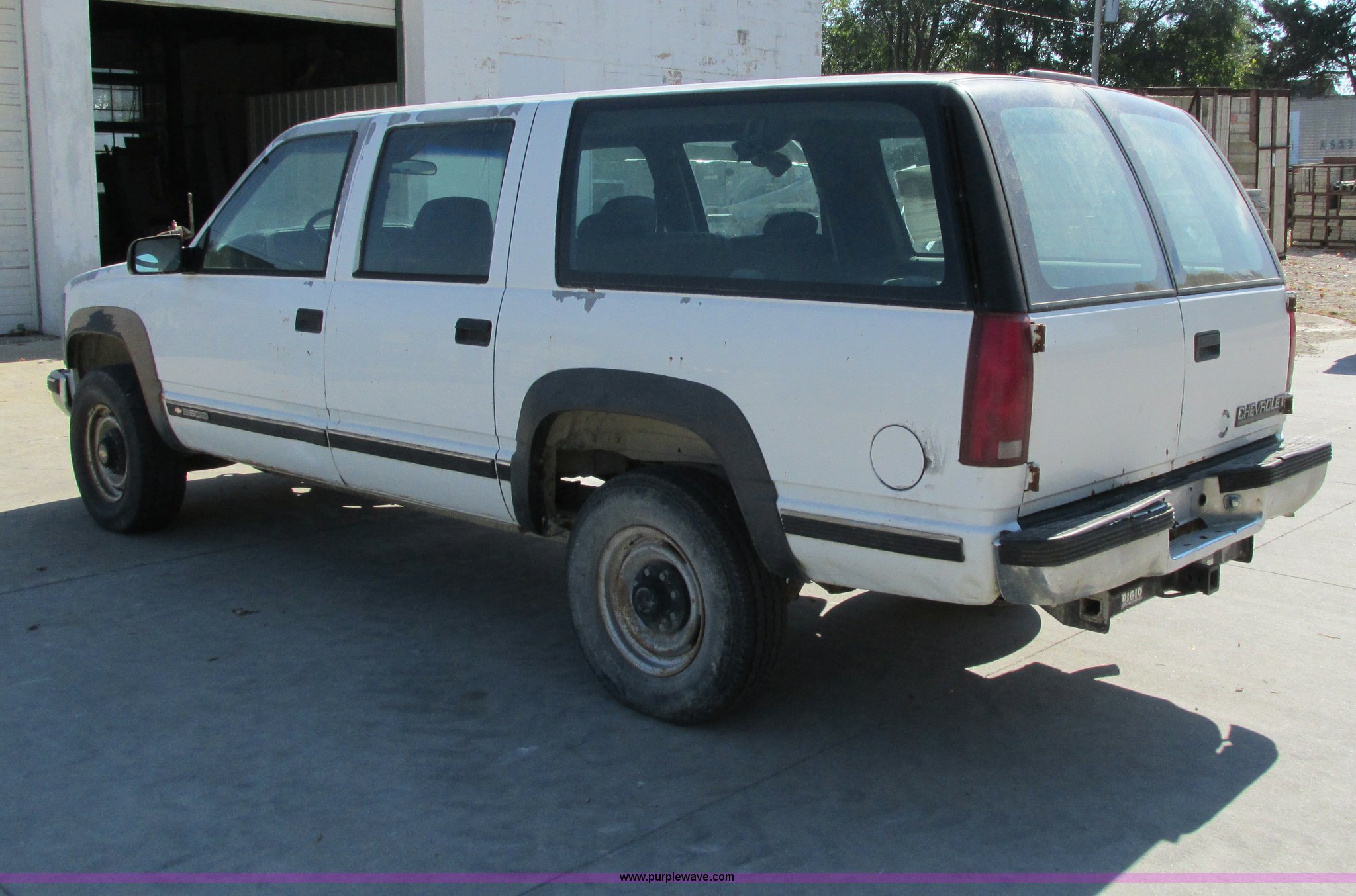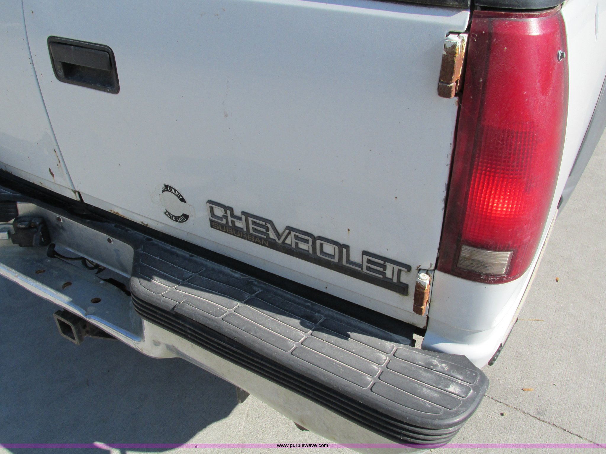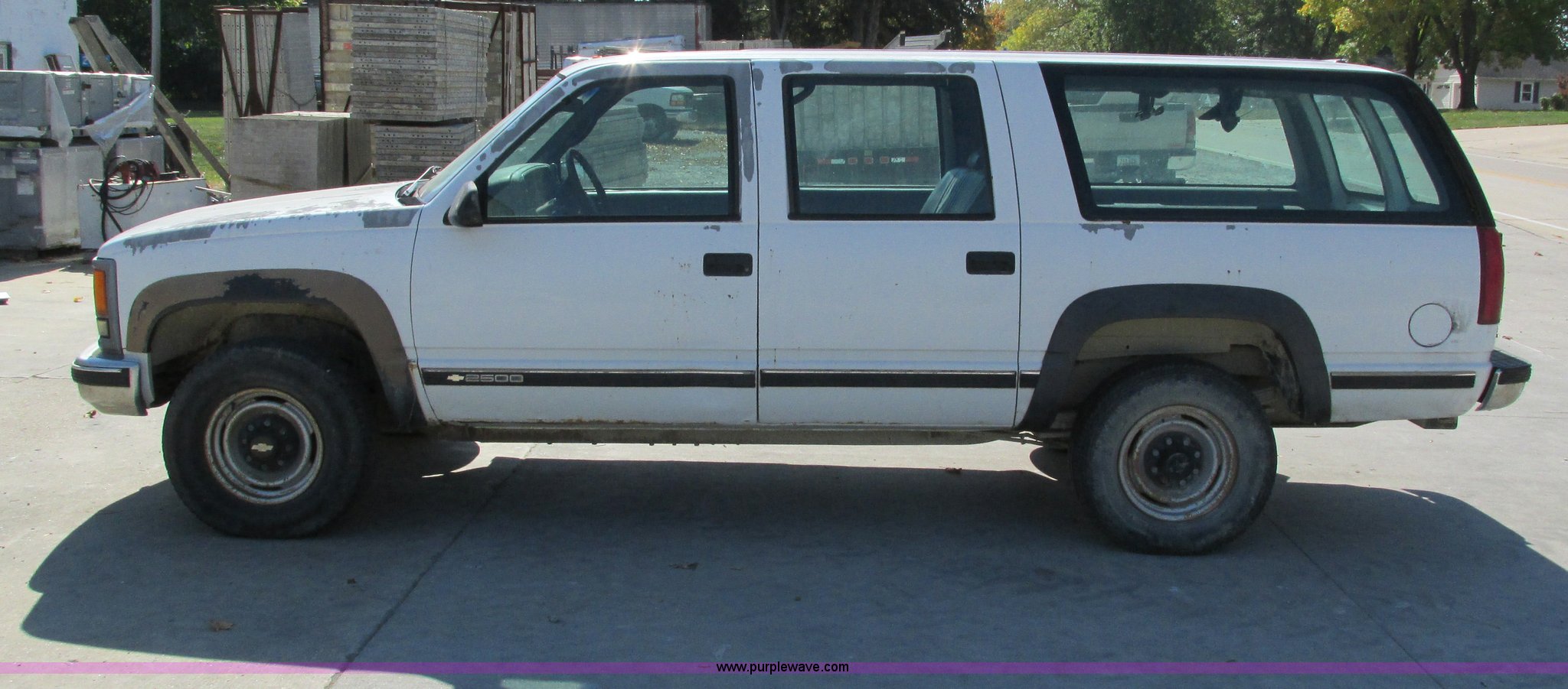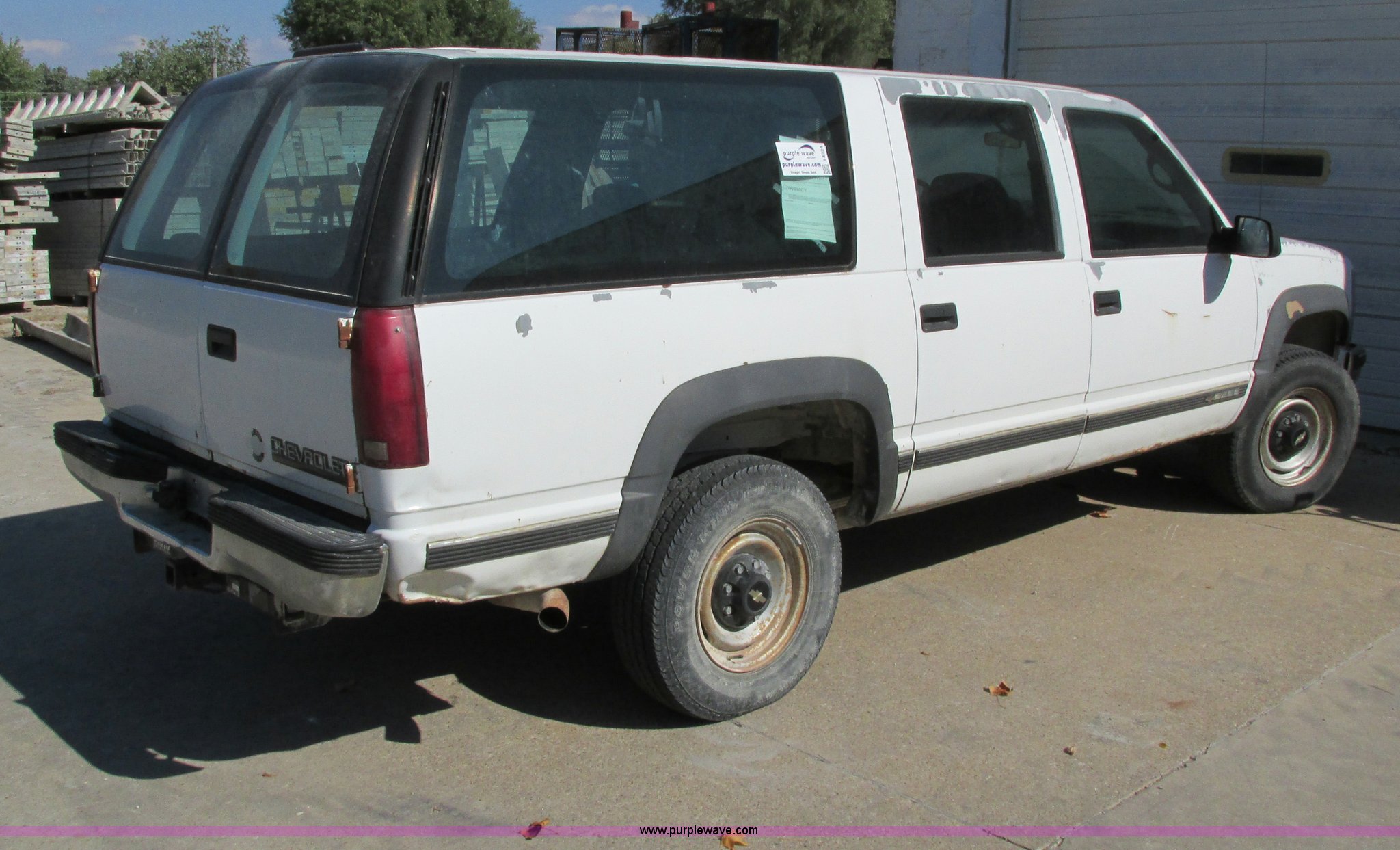 Purple Wave is selling a used Passenger Vehicle in Iowa. This item is a 1995 Chevrolet Suburban K2500 SUV with the following: 212,155 actual miles, 5.7L V8 OHV 16V gas engine, Automatic transmission, Four wheel drive, AC and heat, Tilt, Cruise, AM/FM, Manual windows and locks, Vinyl interior, Receiver hitch, Trailer wiring, LT245/75R16 tires, Windshield wipers inoperable