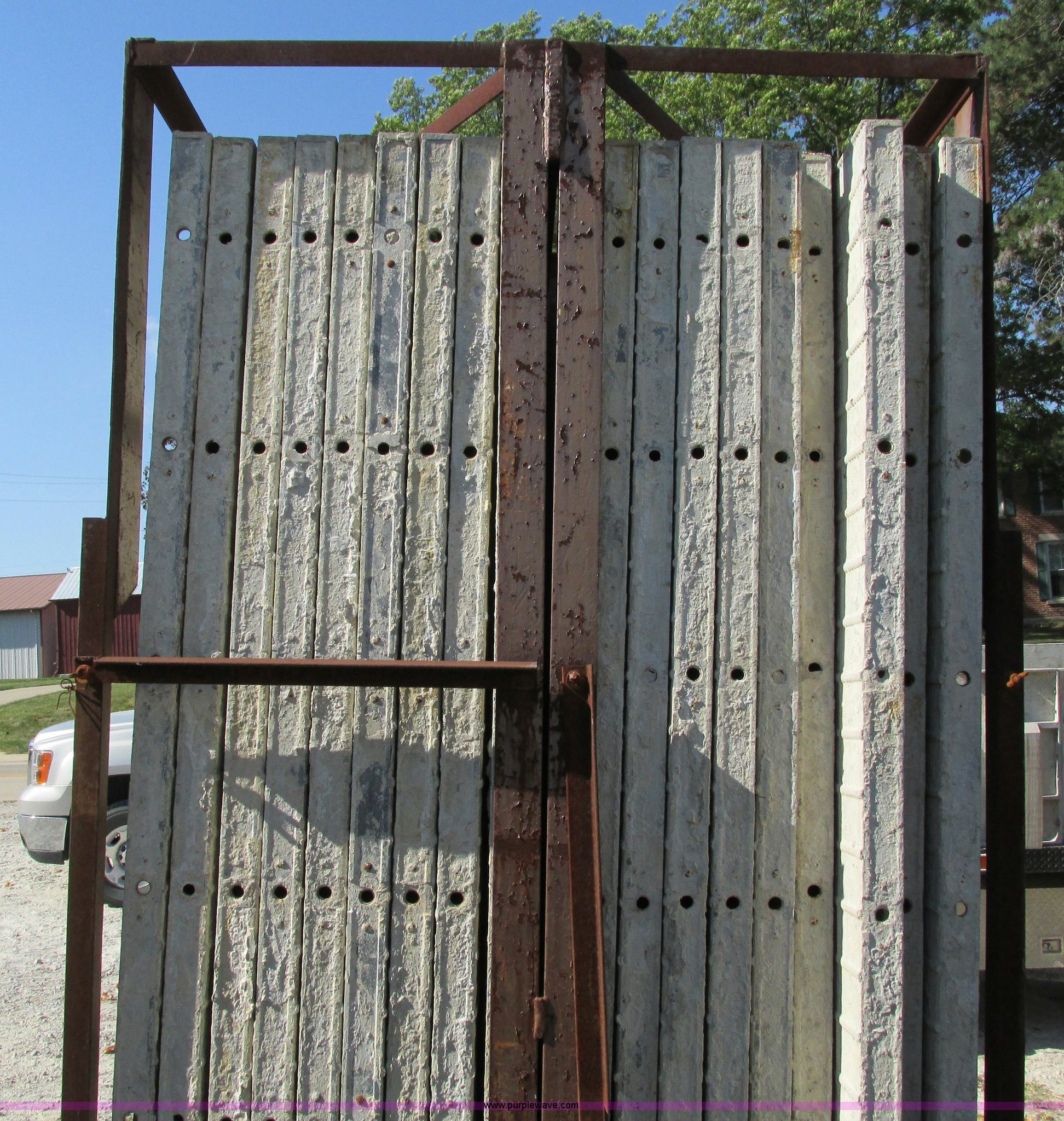 Purple Wave is selling a used Building Materials in Iowa. This item is a (17) Symons Silver aluminum concrete forms with the following: 3 x 8 vertex brick, Six to 12 hole pattern, Rack included