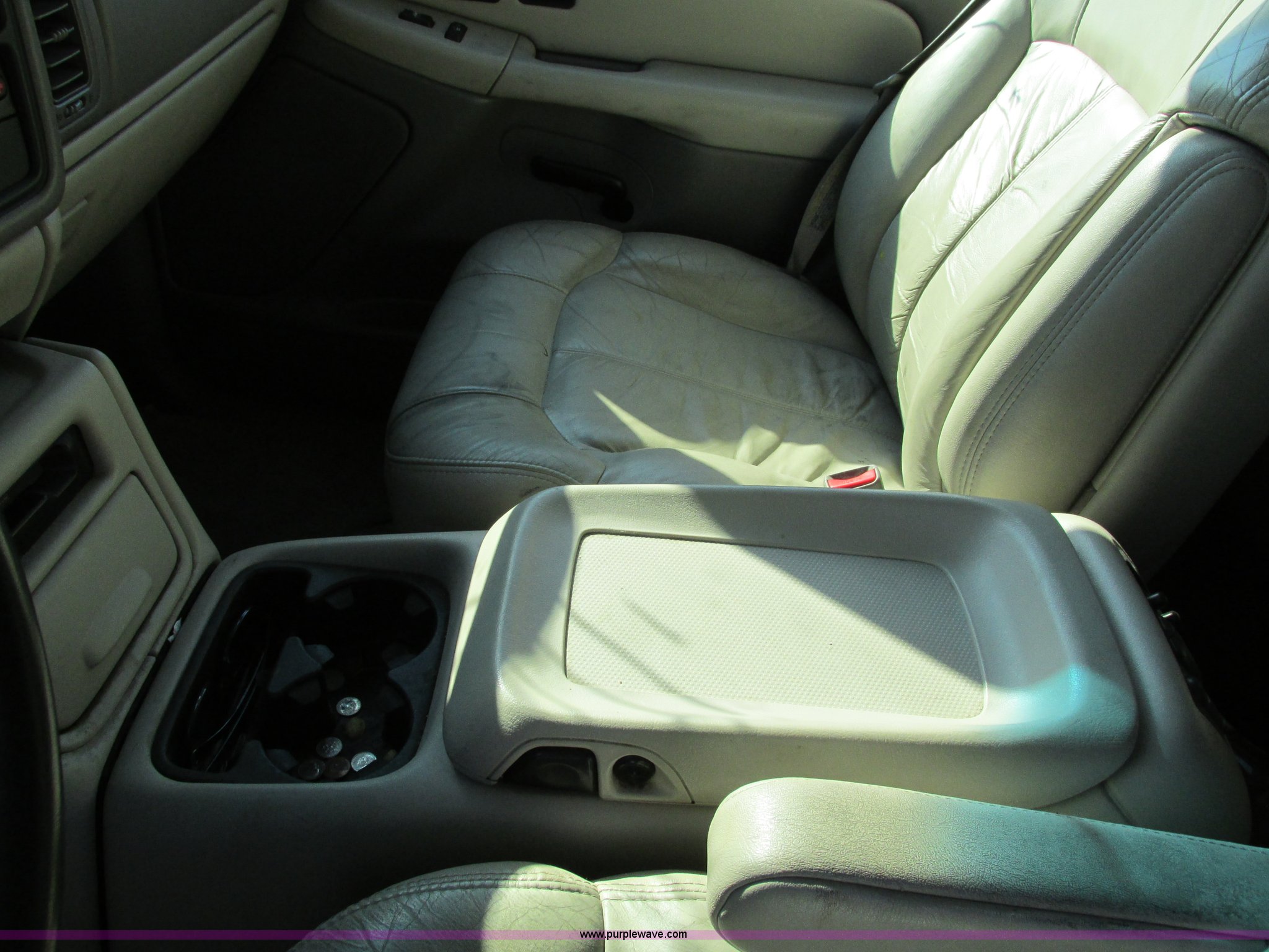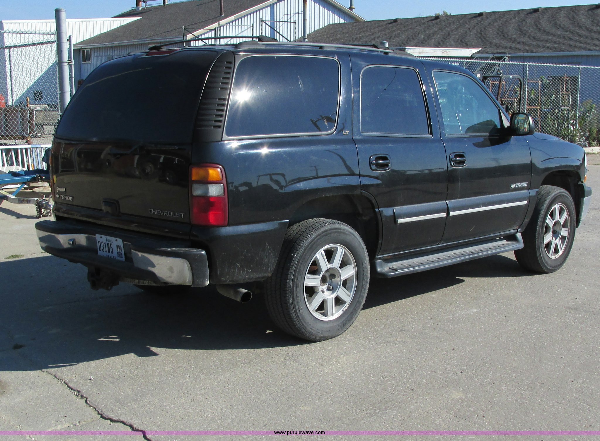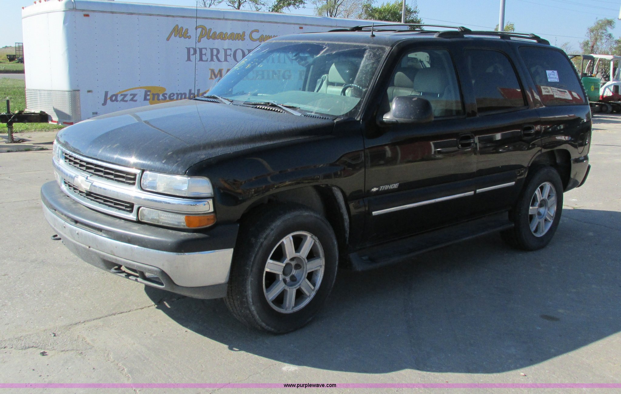 Purple Wave is selling a used Passenger Vehicle in Iowa. This item is a 2002 Chevrolet Tahoe SUV with the following: 159,102 miles on odometer, 5.3L V8 OHV 16V FFV gas engine, Automatic transmission, Four wheel drive, AC and heat, Tilt, Cruise, AM/FM/CD/cassette, Power windows, locks, mirrors, and seats, Heated seats, Leather interior, On-Star capable, Rear climate controls, Rear audio controls, Third row seating, Moonroof, Receiver hitch, Trailer wiring, P265/65R18 tires