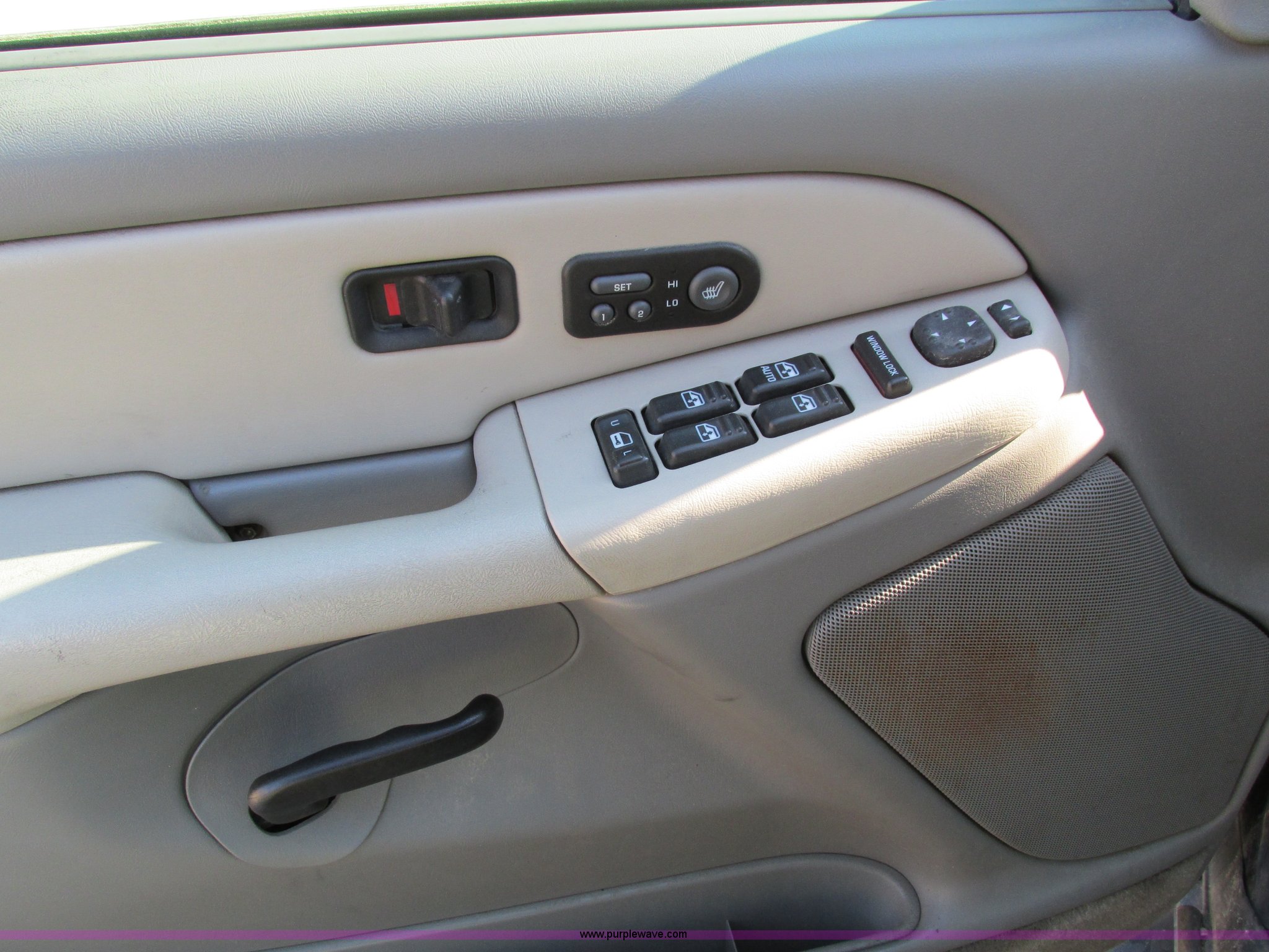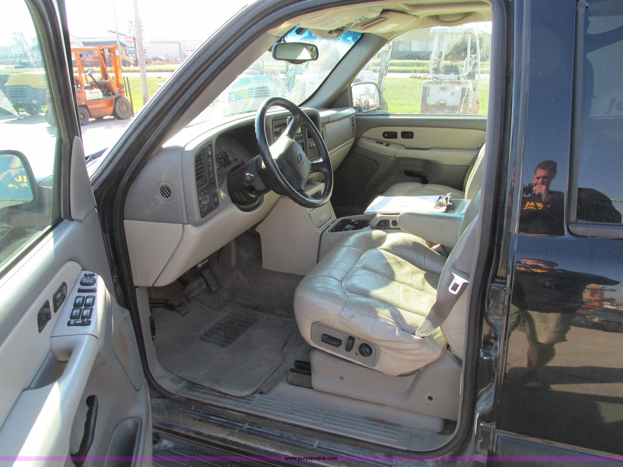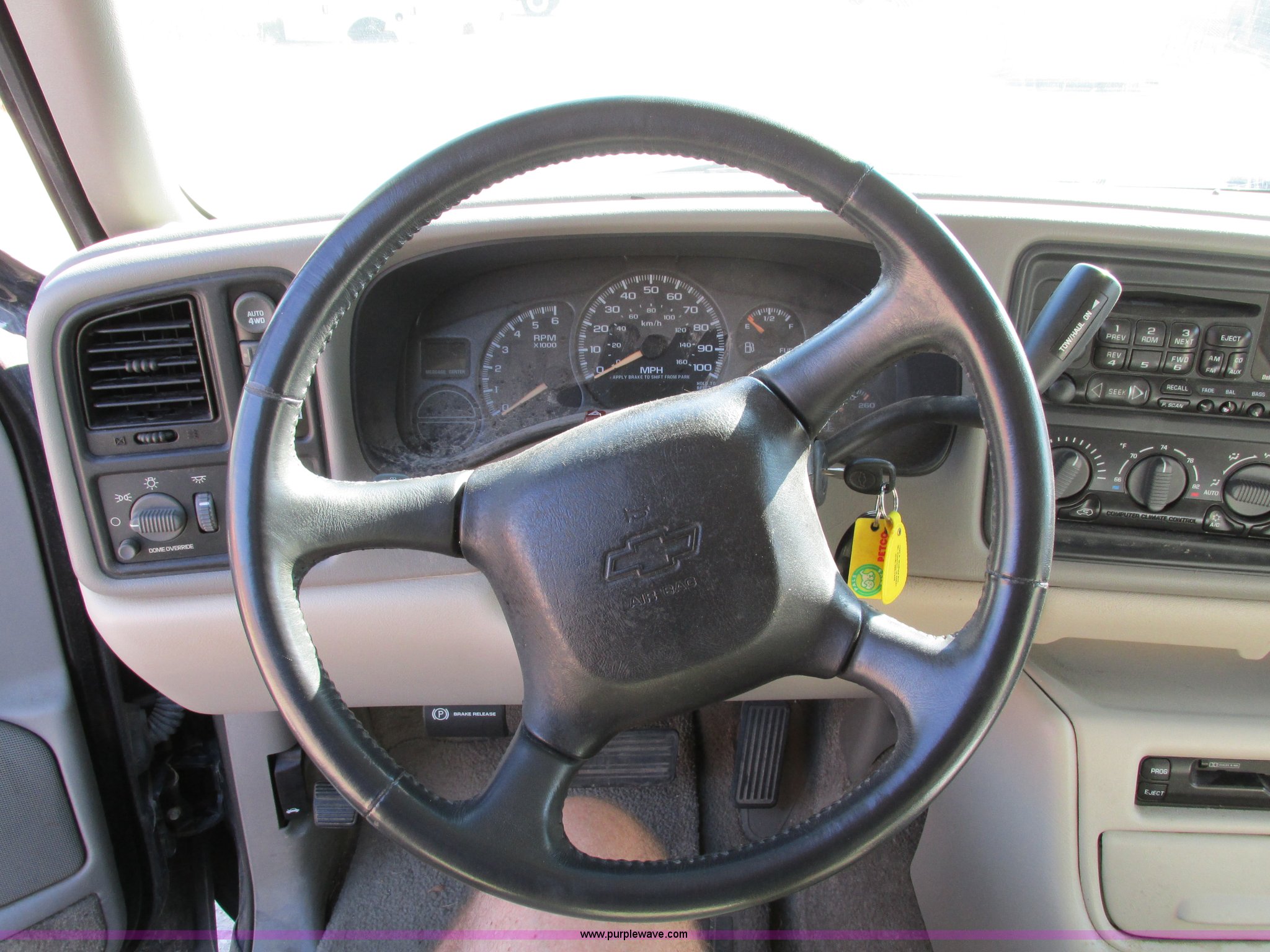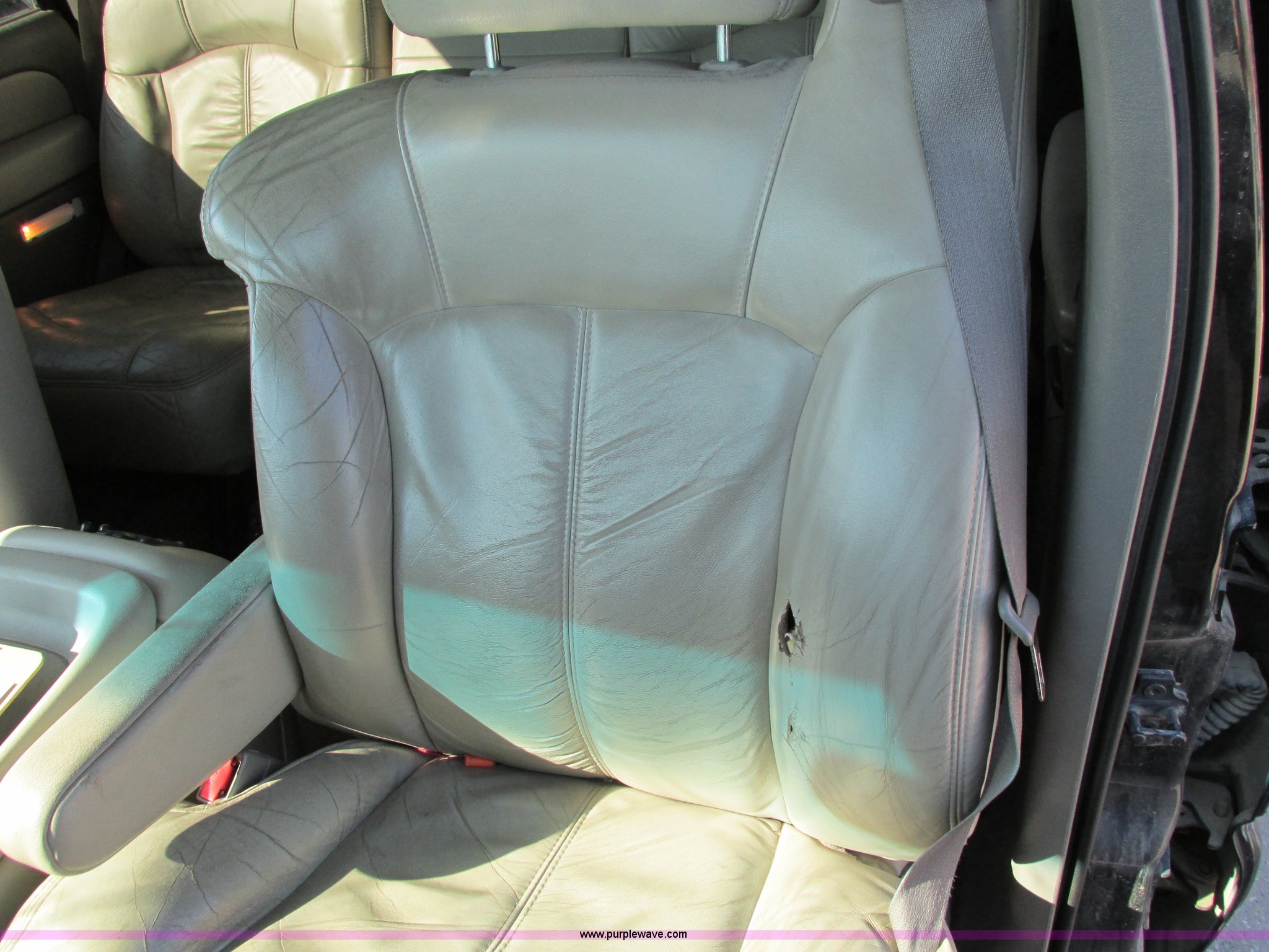 Purple Wave is selling a used Passenger Vehicle in Iowa. This item is a 2002 Chevrolet Tahoe SUV with the following: 159,102 miles on odometer, 5.3L V8 OHV 16V FFV gas engine, Automatic transmission, Four wheel drive, AC and heat, Tilt, Cruise, AM/FM/CD/cassette, Power windows, locks, mirrors, and seats, Heated seats, Leather interior, On-Star capable, Rear climate controls, Rear audio controls, Third row seating, Moonroof, Receiver hitch, Trailer wiring, P265/65R18 tires