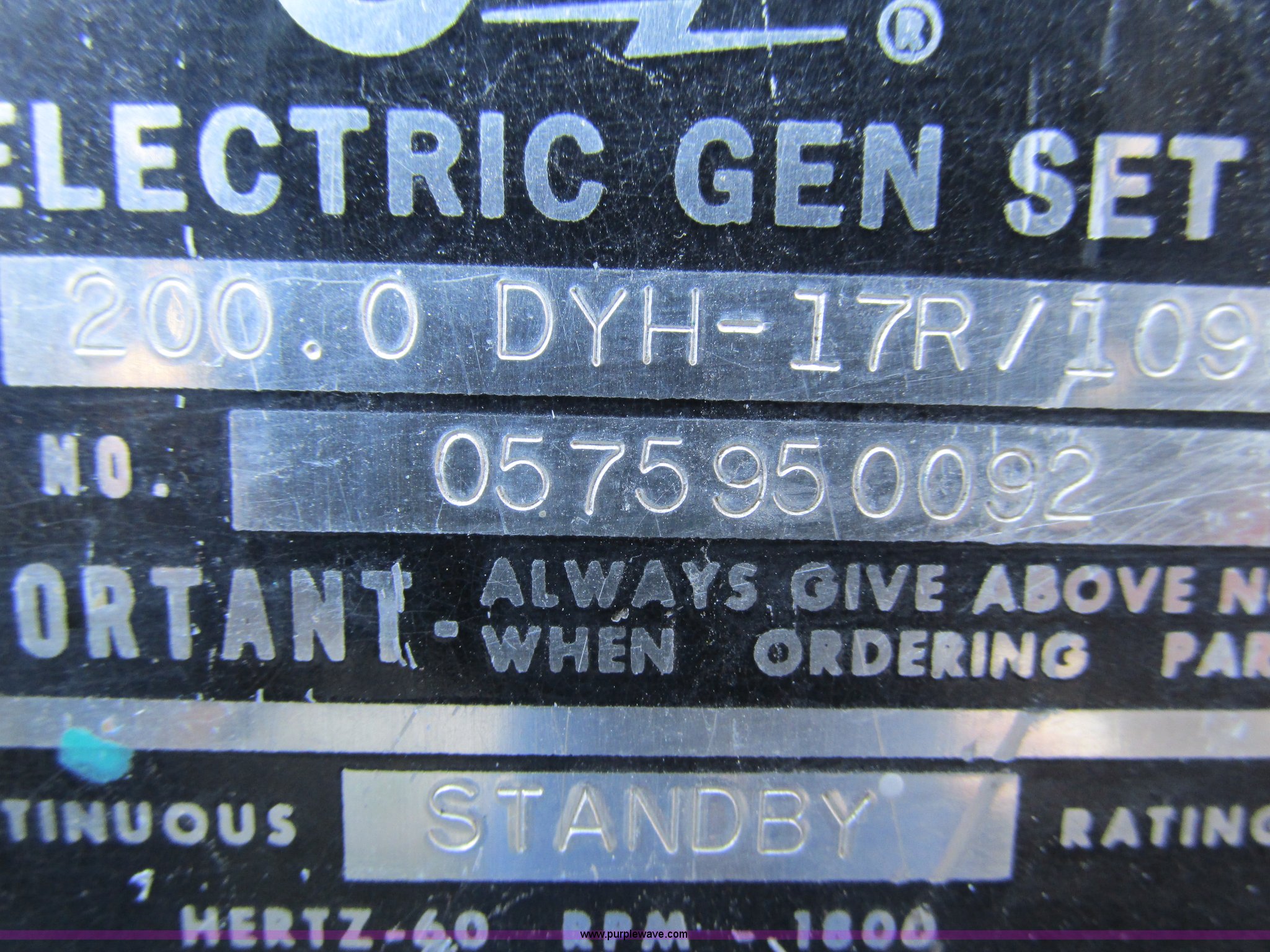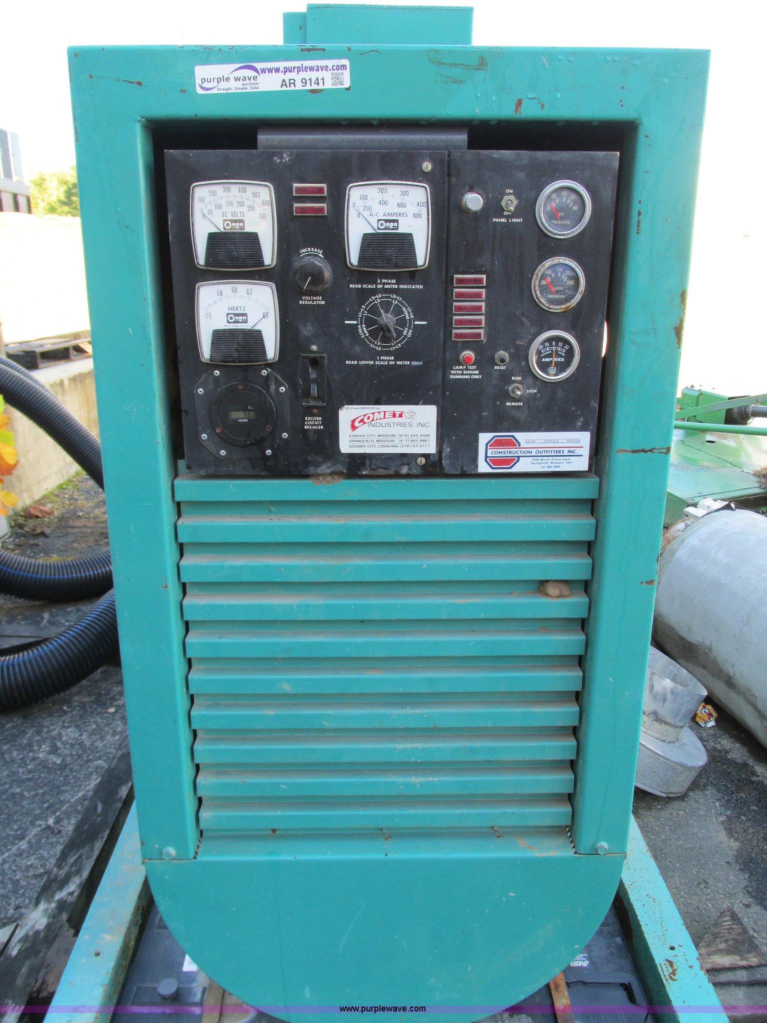 Purple Wave is selling a used Generator Set in Missouri. This item is a Onan DP-3500 generator set with the following: 988 hours on meter, Allis Chalmers 2100 six cylinder diesel engine, Serial 21-13726, Single and three phase, Open frame, Serial 0575950092