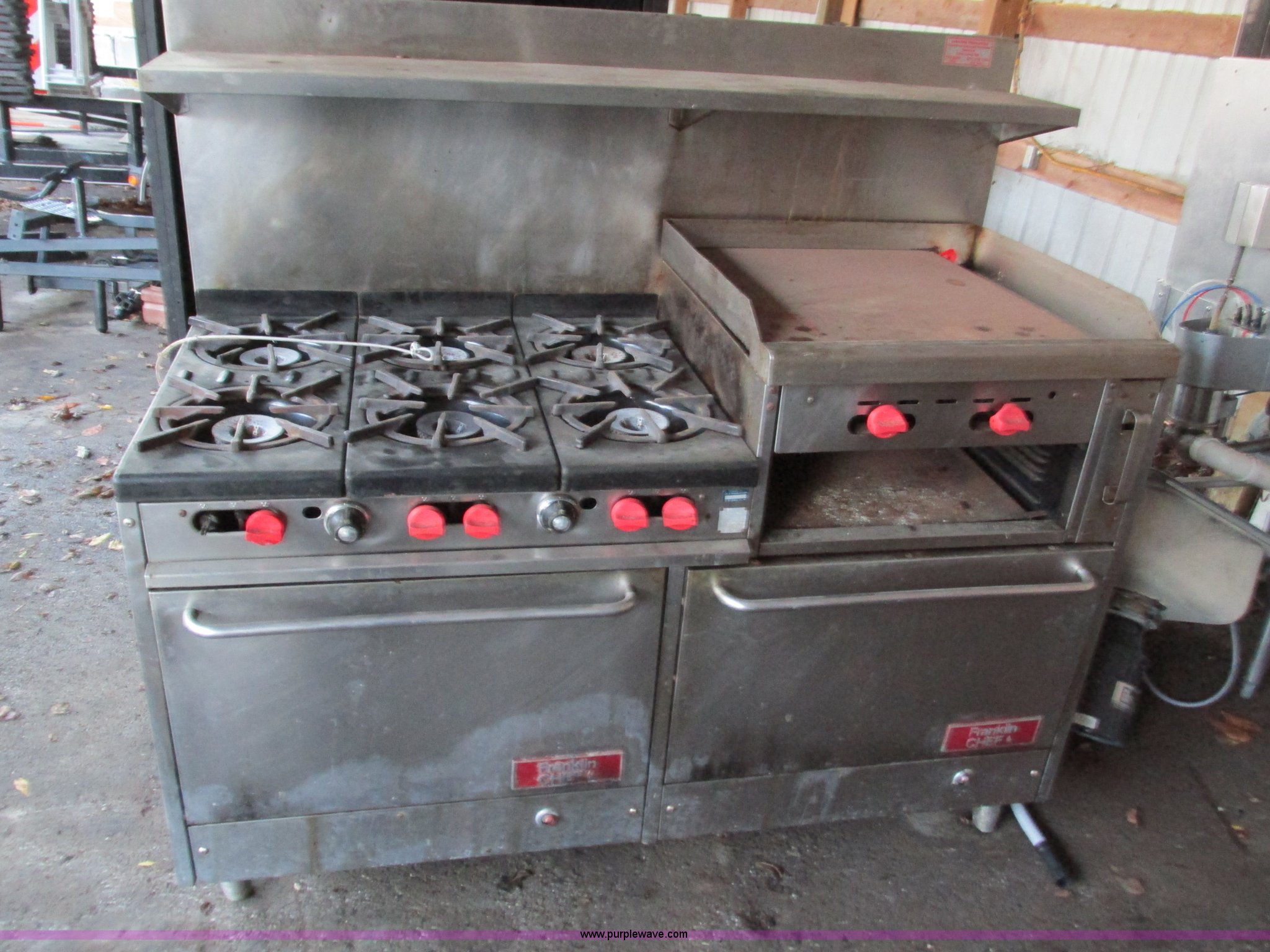 Purple Wave is selling a used Restaurant Equip. in Missouri. This item is a Assorted restaurant equipment with the following: Franklin Chef commercial stove/oven, Energy Mizer low energy dishwasher, Model AH-2X, 120V, 60 Hz, Single phase, Stainless steel sink with garbage disposal, Roper dishwasher, Blodgett pizza oven, Unknown operating conditions