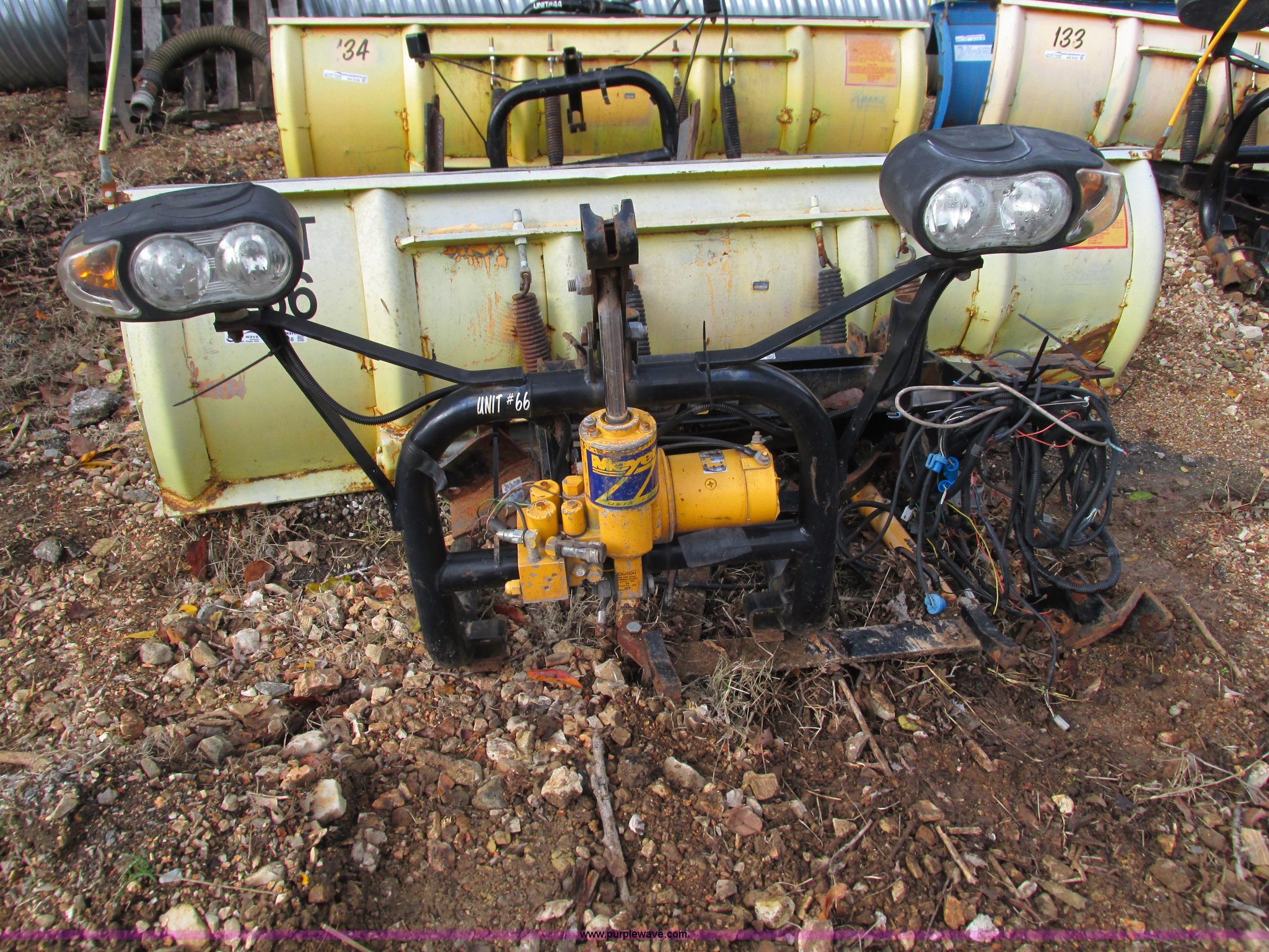 Purple Wave is selling a used Truck Part and Attach. in Missouri. This item is a Meyer 8' snow plow with the following: Power angling, Bolt-on straight edge, Light bar, Jack included, Mounting bar, Wiring, Rust damage, Unit# 66
