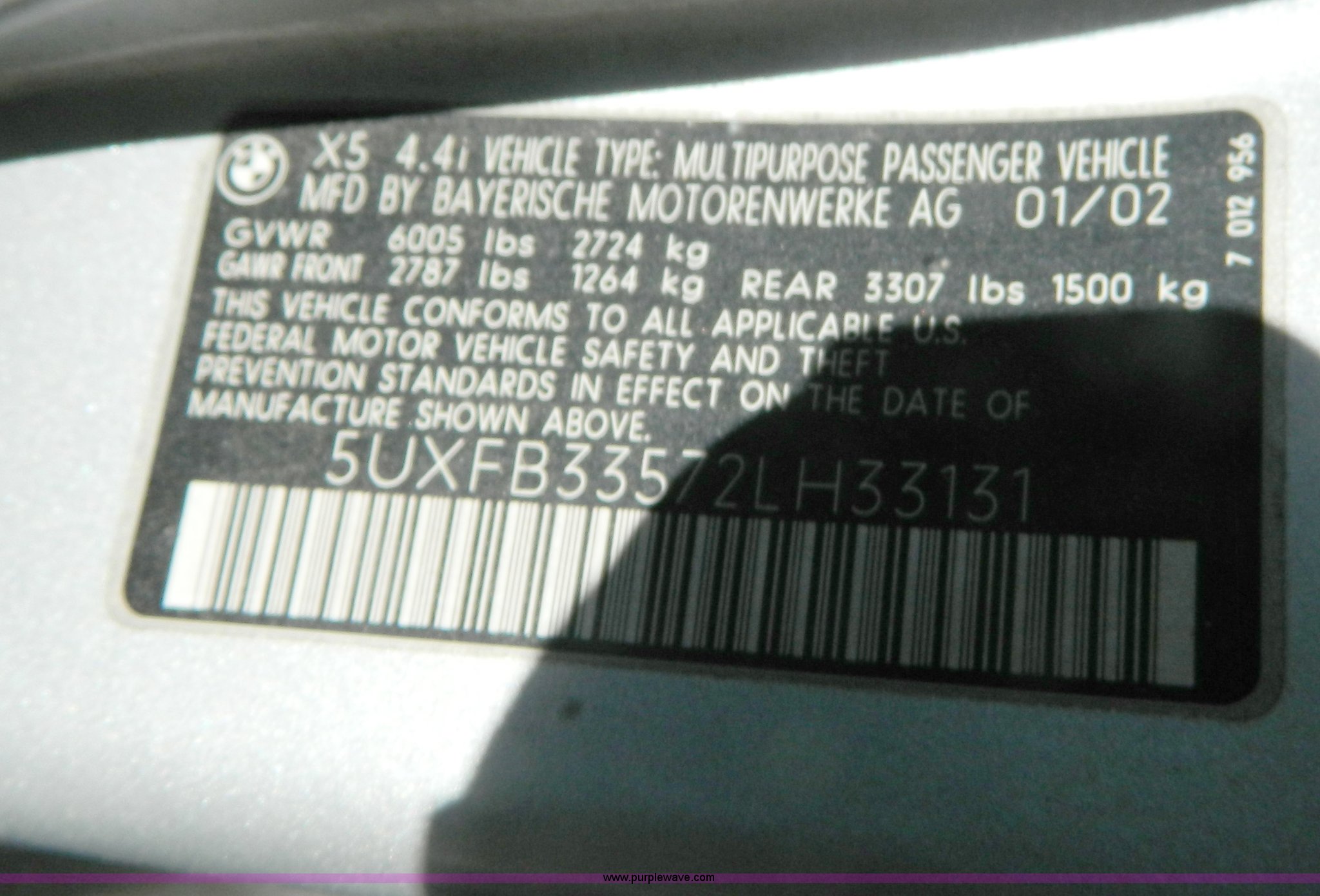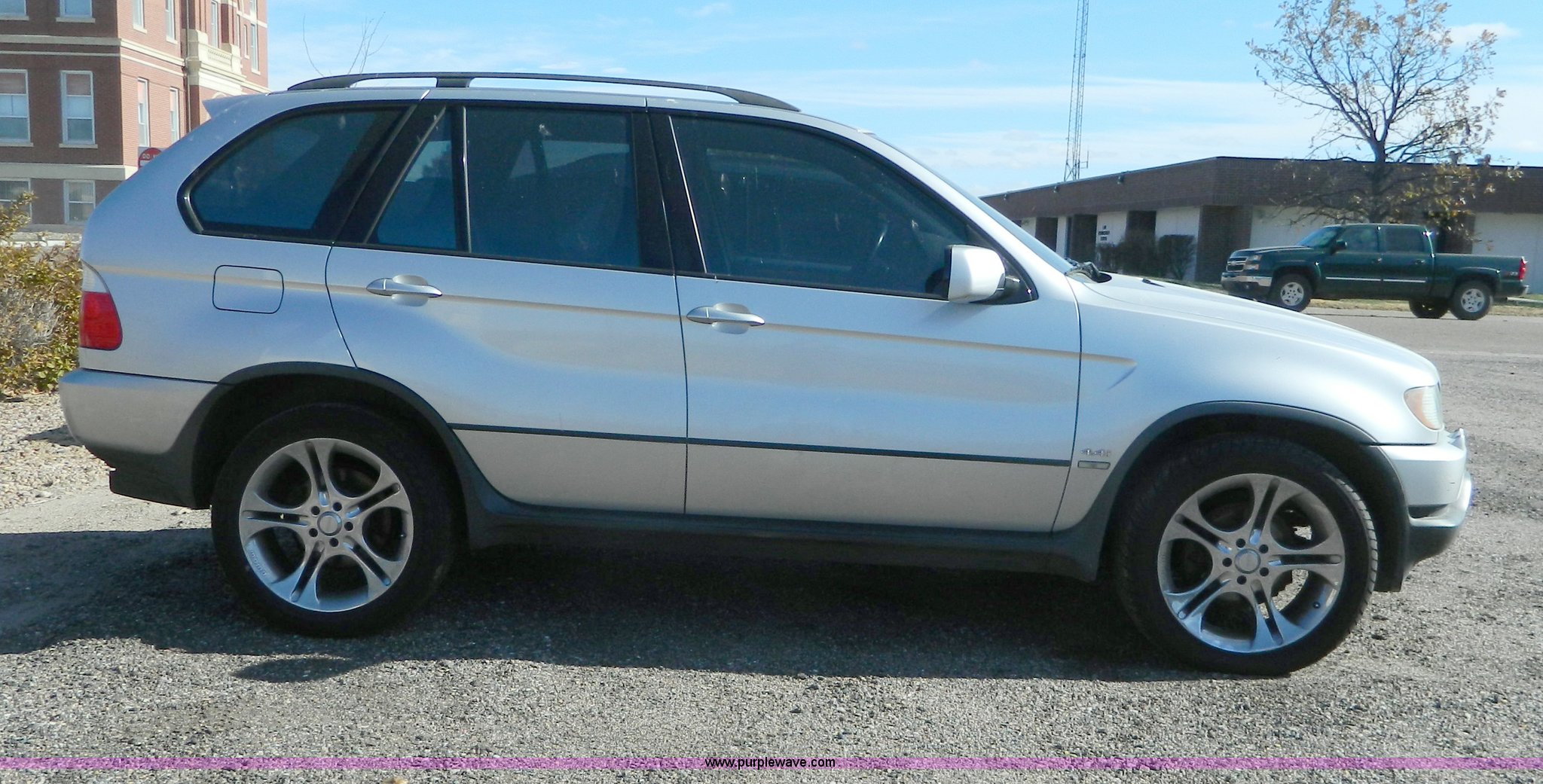 Purple Wave is selling a used Passenger Vehicle in Kansas. This item is a 2002 BMW X5 4.4i SUV with the following: 113,193 miles on odometer, 4.4L V8 DOHC 32V gas engine, Automatic transmission, AC and heat, Tilt, Cruise, AM/FM/CD, Power windows, locks, mirrors, and seats, Leather interior, Receiver hitch, Sunroof, Kenwood GPS, Momo wheels, 275/45R20 tires, Weak battery