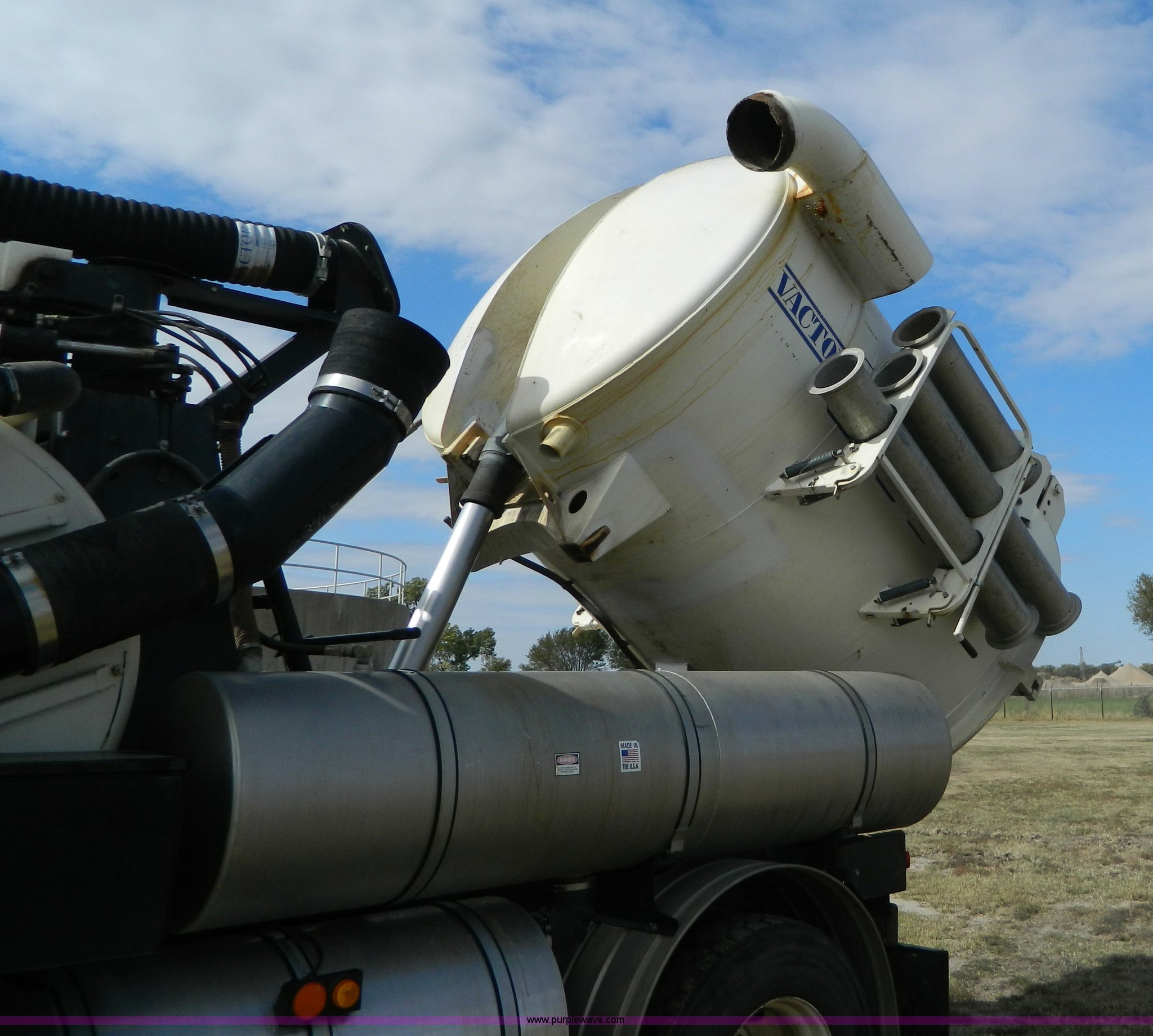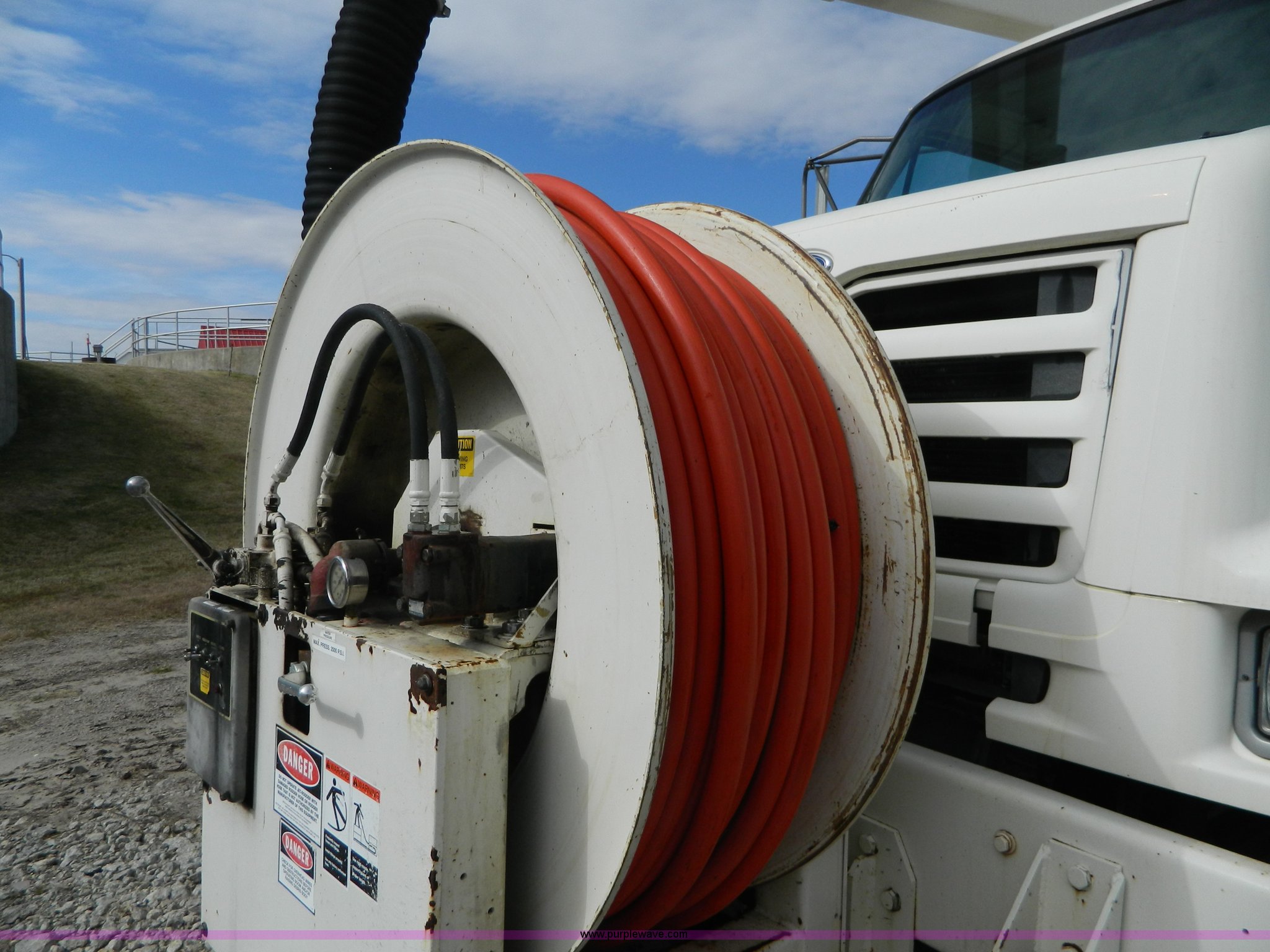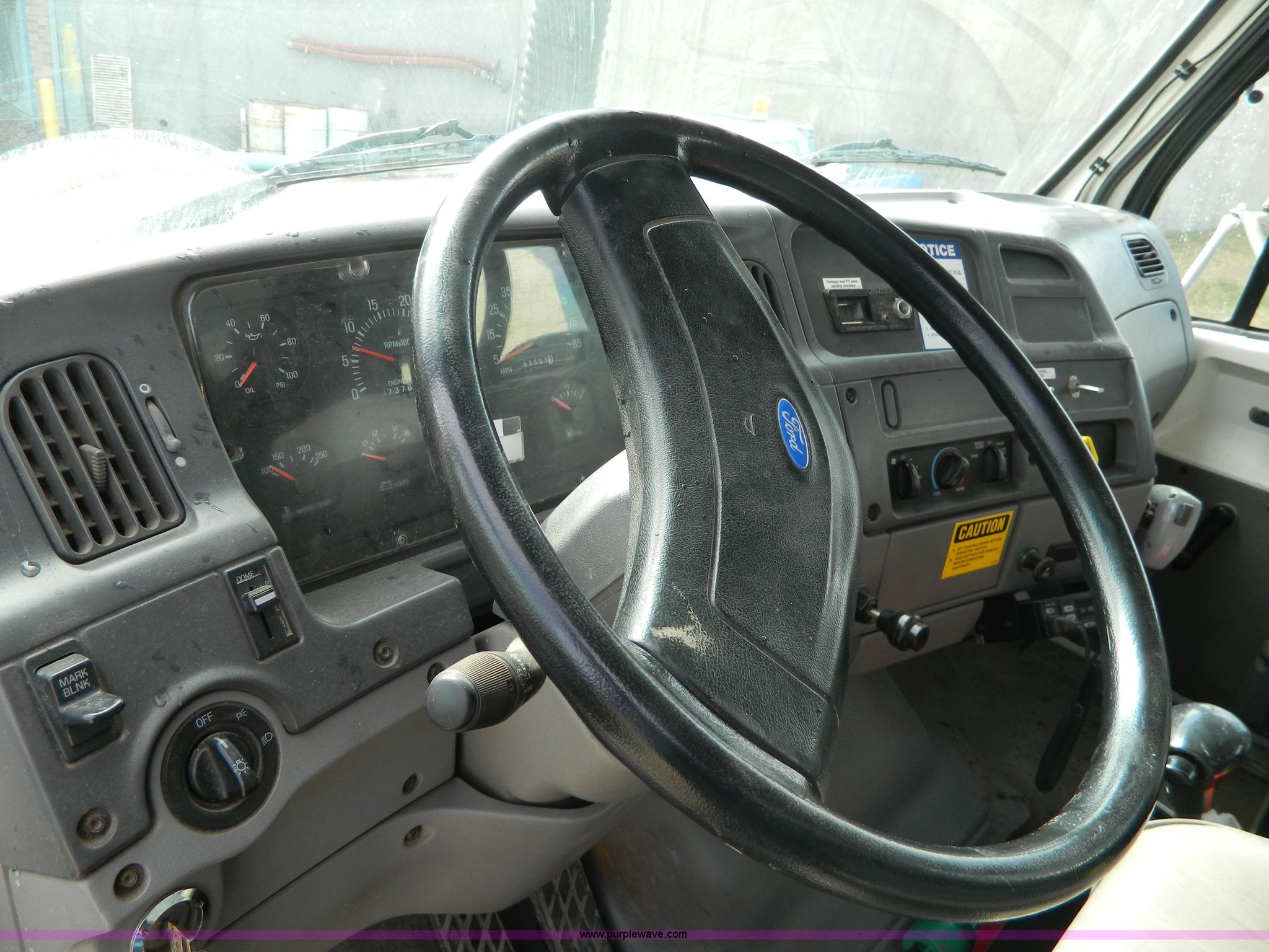Purple Wave is selling a used Vacuum Truck in Kansas. This item is a 1997 Ford L8501 Louisville 101 sewer cleaning truck with the following: 61,150 miles on odometer, Cummins six cylinder diesel engine, Automatic transmission, Heat, Air ride driver's seat