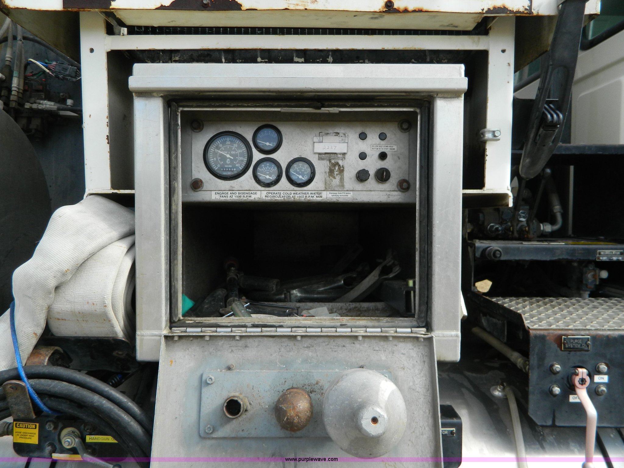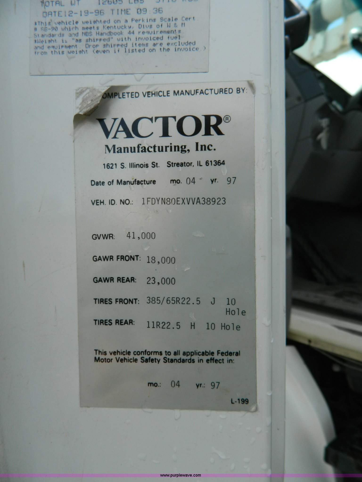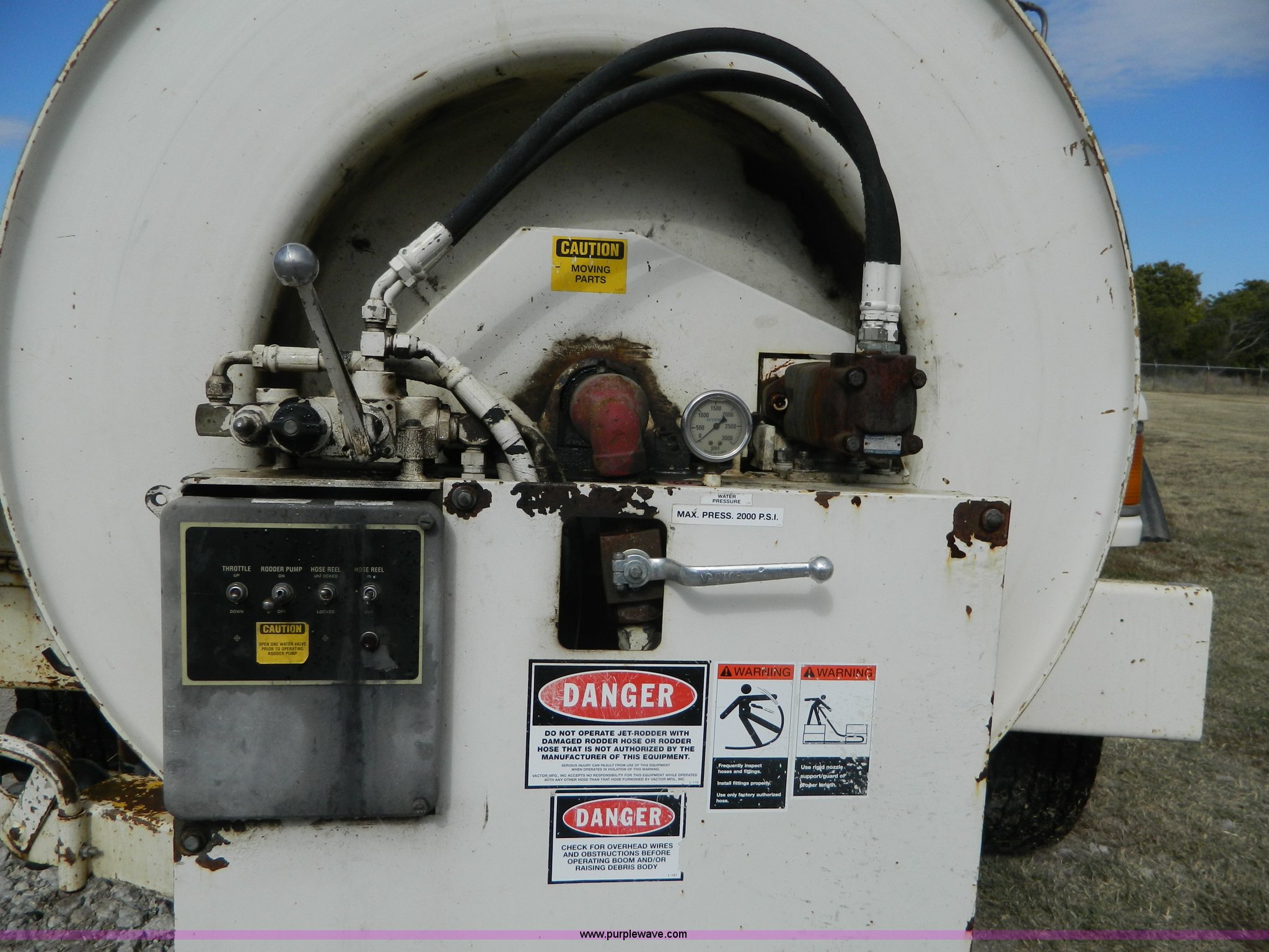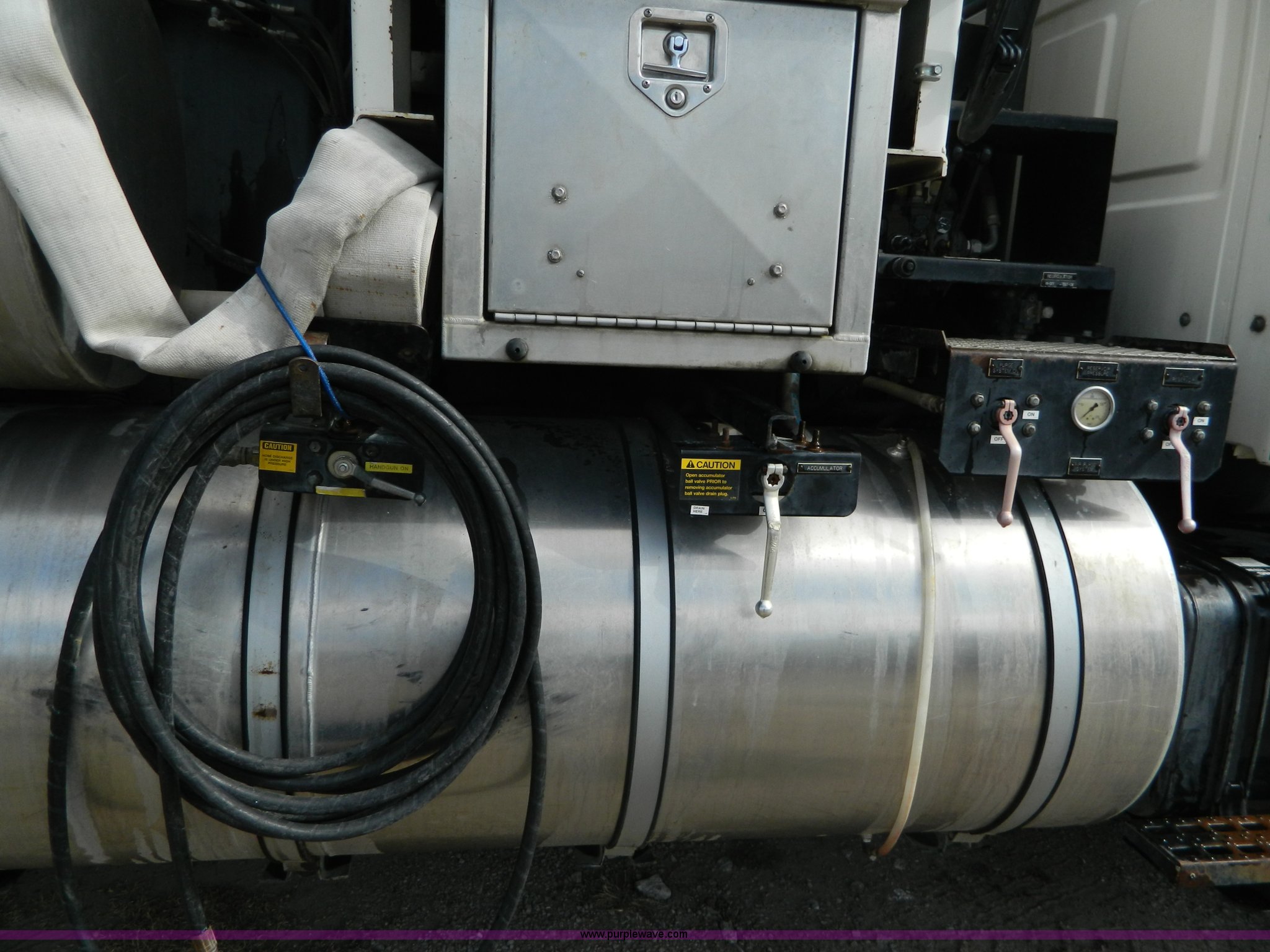 Purple Wave is selling a used Vacuum Truck in Kansas. This item is a 1997 Ford L8501 Louisville 101 sewer cleaning truck with the following: 61,150 miles on odometer, Cummins six cylinder diesel engine, Automatic transmission, Heat, Air ride driver's seat
