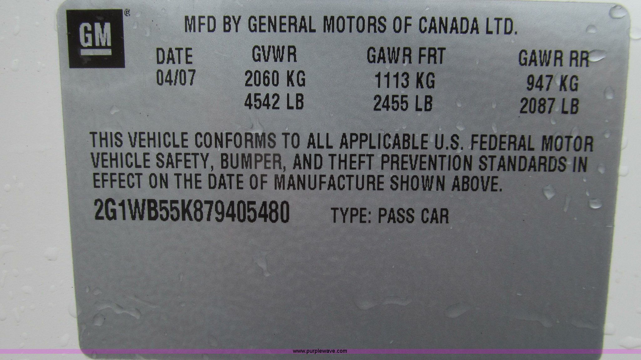 Purple Wave is selling a used Passenger Vehicle in Missouri. This item is a 2007 Chevrolet Impala LS with the following: 158,244 miles on odometer, 3.5L V6 OHV 16V FFV gas engine, Automatic transmission, AC and heat, Tilt, Cruise, AM/FM/CD, Power windows, locks, mirrors, and seats, Cloth interior, P225/60R16 tires, Small hole drilled in driver's side dash, Paint chipped on front and rear bumpers, Dented driver's side front door post, Right rear quarter panel dented and scratched, MoDOT ID B6265