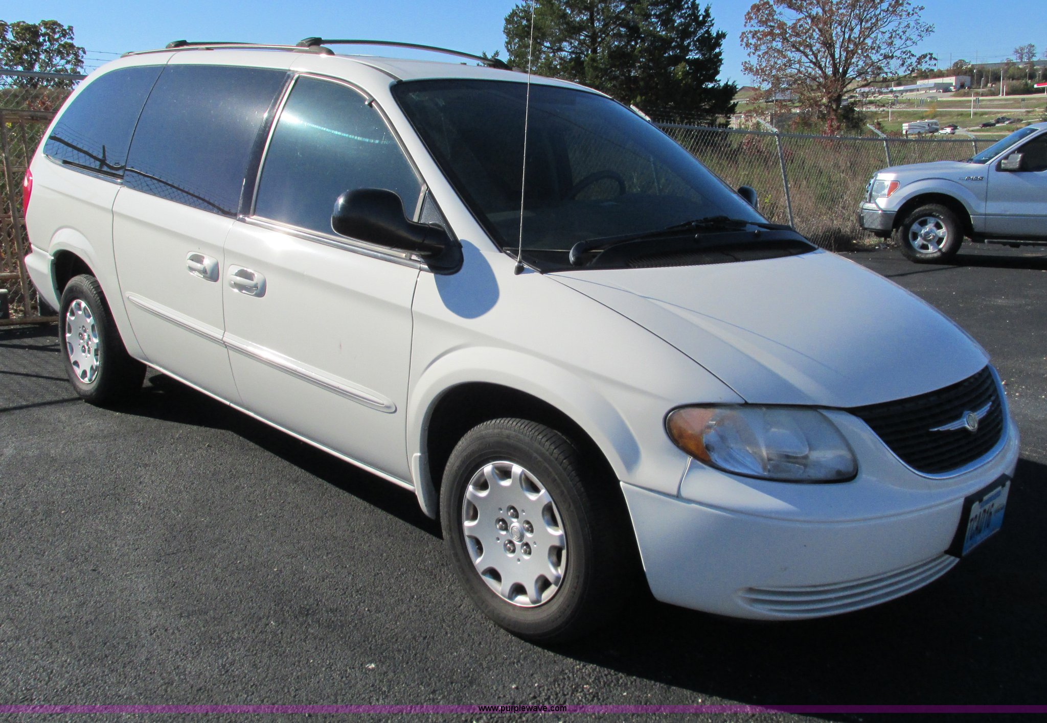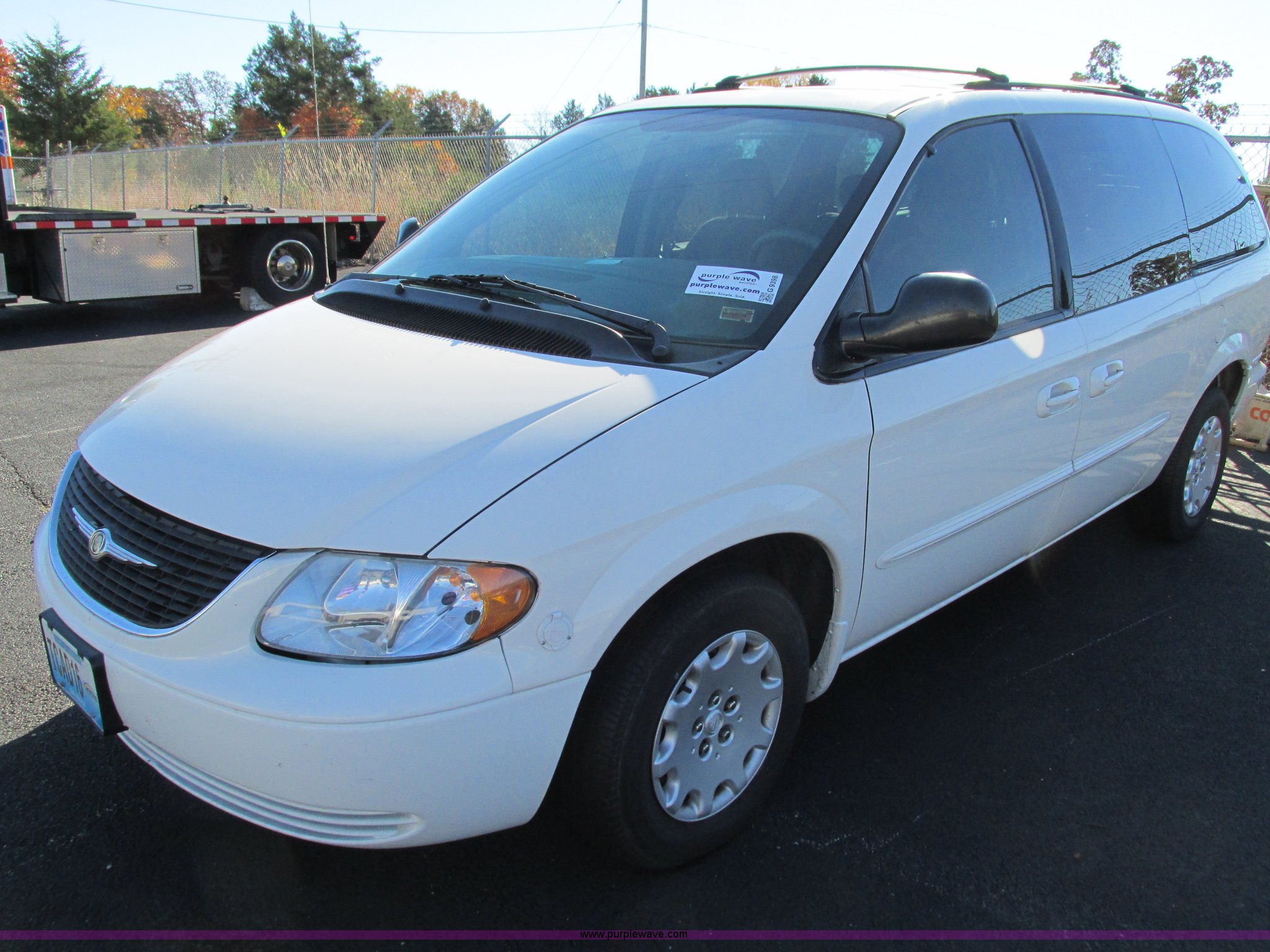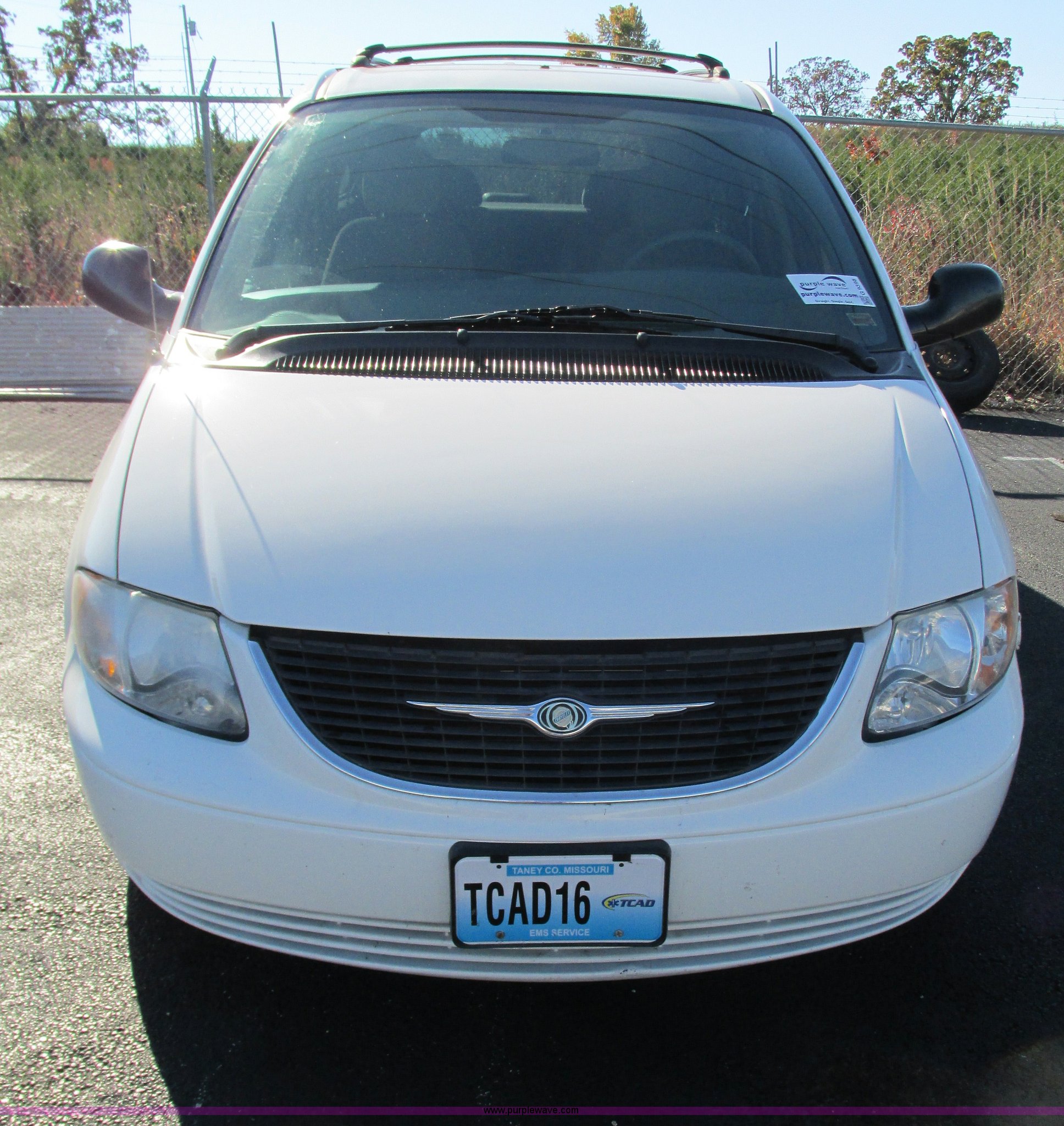 Purple Wave is selling a used Passenger Vehicle in Missouri. This item is a 2003 Chrysler Town & Country LX van with the following: 133,156 miles on odometer, 3.3L V6 OHV 12V FFV gas engine, Automatic transmission, AC and heat, Tilt, Cruise, AM/FM/CD/cassette, Power windows, locks, and mirrors, Cloth interior, Dual climate control, Rear AC and heat, Third row seating, Luggage rack, Cargo box in rear, 215/70R15 tires, (2) additional 215/70R15 wheels and tires, Interior/exterior cosmetic damage
