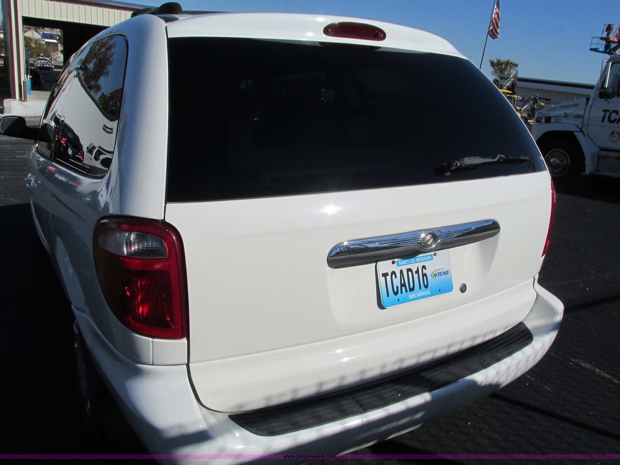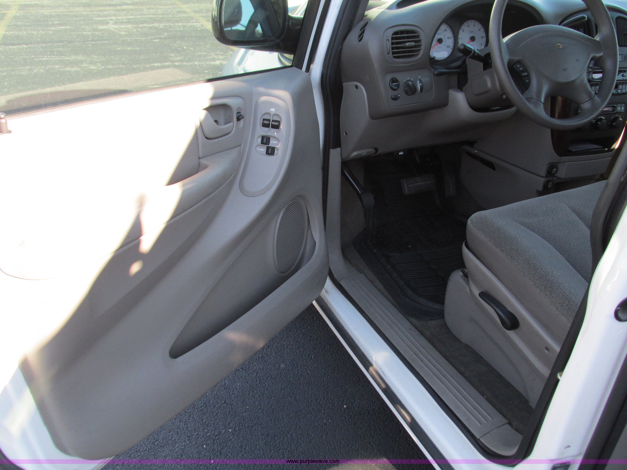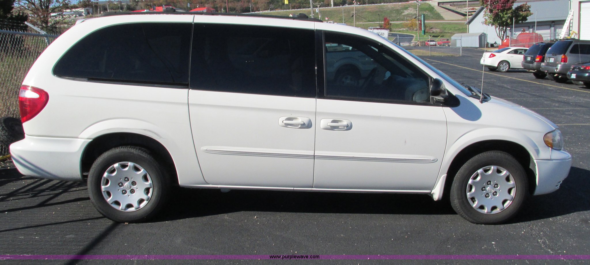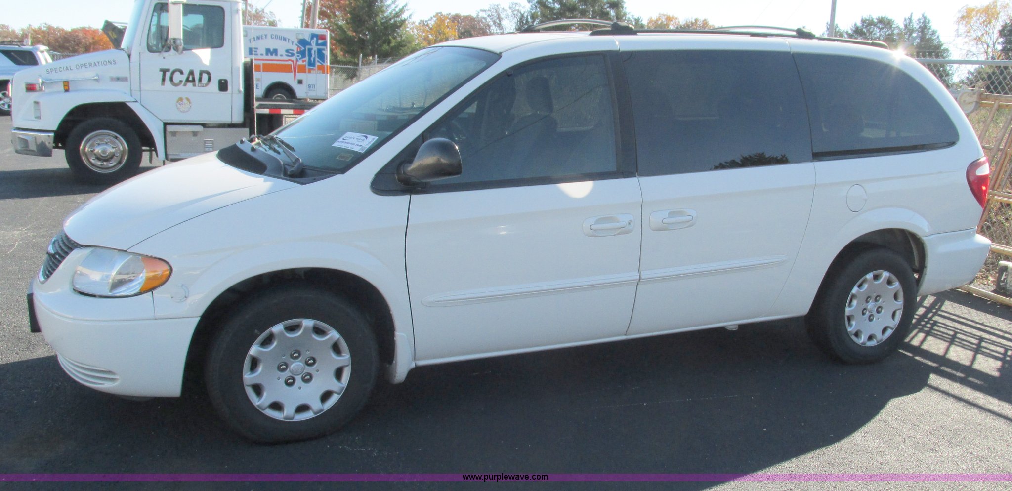 Purple Wave is selling a used Passenger Vehicle in Missouri. This item is a 2003 Chrysler Town & Country LX van with the following: 133,156 miles on odometer, 3.3L V6 OHV 12V FFV gas engine, Automatic transmission, AC and heat, Tilt, Cruise, AM/FM/CD/cassette, Power windows, locks, and mirrors, Cloth interior, Dual climate control, Rear AC and heat, Third row seating, Luggage rack, Cargo box in rear, 215/70R15 tires, (2) additional 215/70R15 wheels and tires, Interior/exterior cosmetic damage