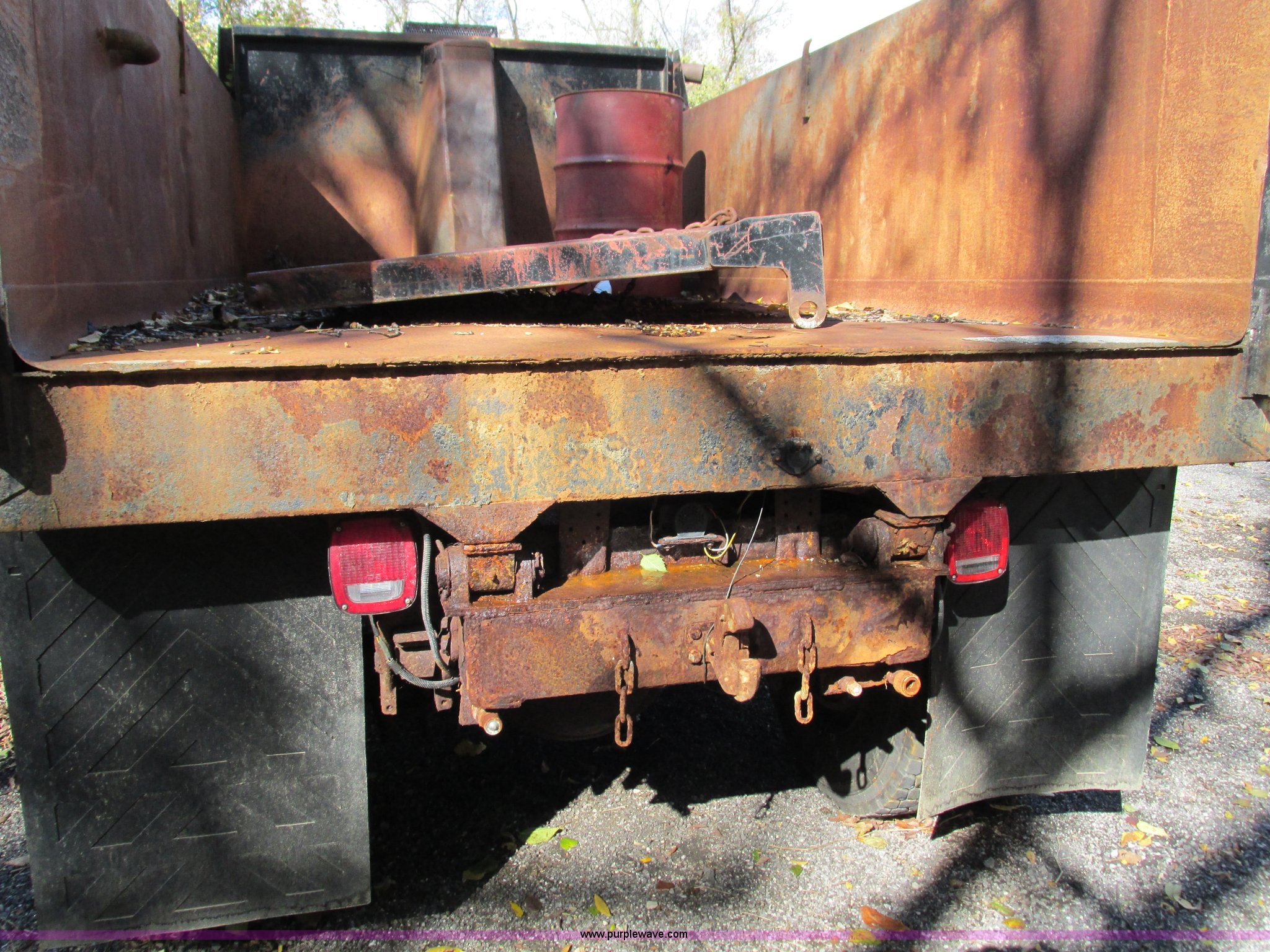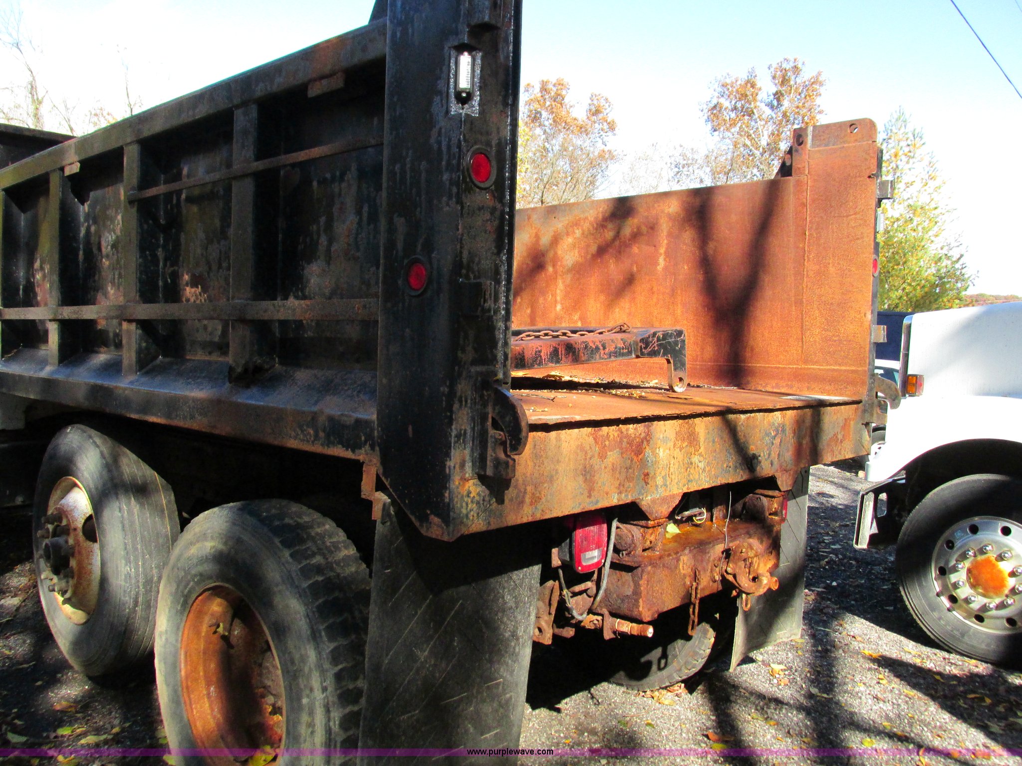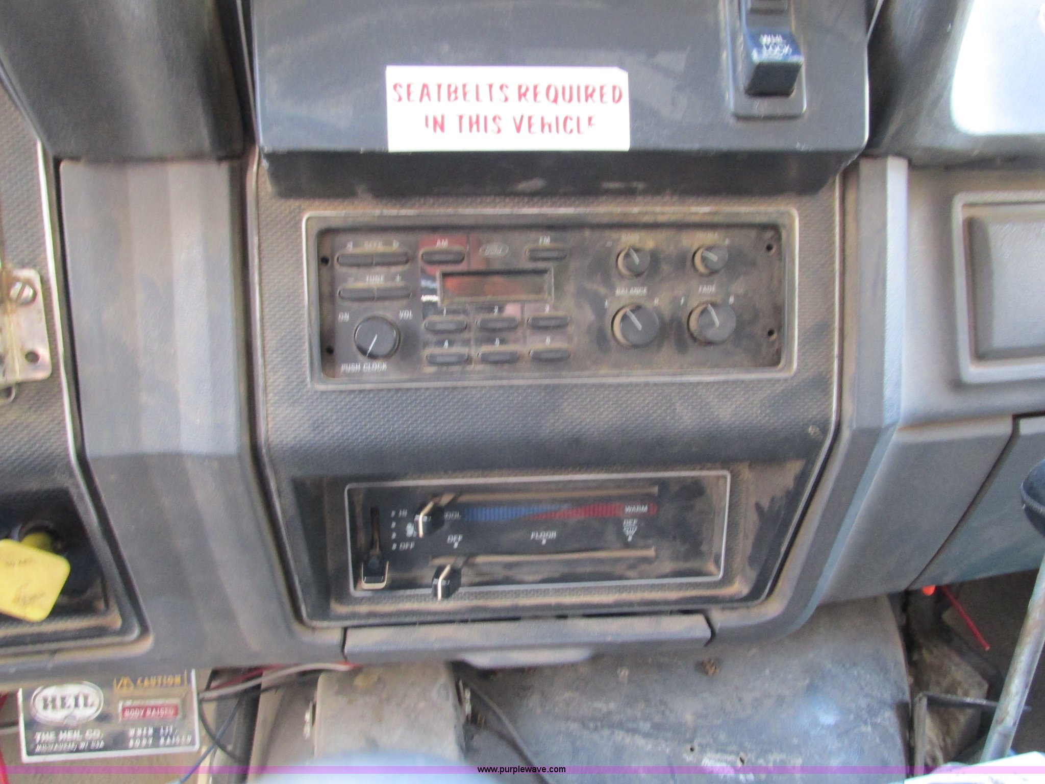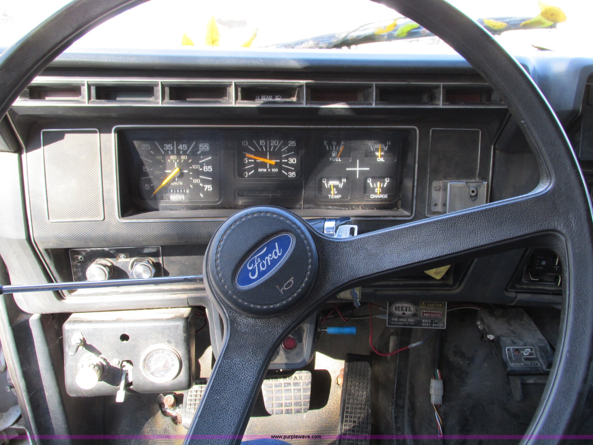 Purple Wave is selling a used Construction Dump Truck in Missouri. This item is a 1994 Ford F800 dump truck with the following: 61,448 miles on odometer, Ford six cylinder diesel engine, Six speed manual transmission, Heat, AM/FM, Heil HPT10YD13 dump bed, 13'L x 8'W x 5'H, Serial 93T262200, Meyer snow plow mount, Pintle hitch, 90 gallon fuel tank, Single exhaust stack, Muncie PTO, Spring suspension, Air brakes, 178" wheelbase, 11R22.5 tires, GVWR 33,000 lbs, FAWR 12,000 lbs, RAWR 21,000 lbs
