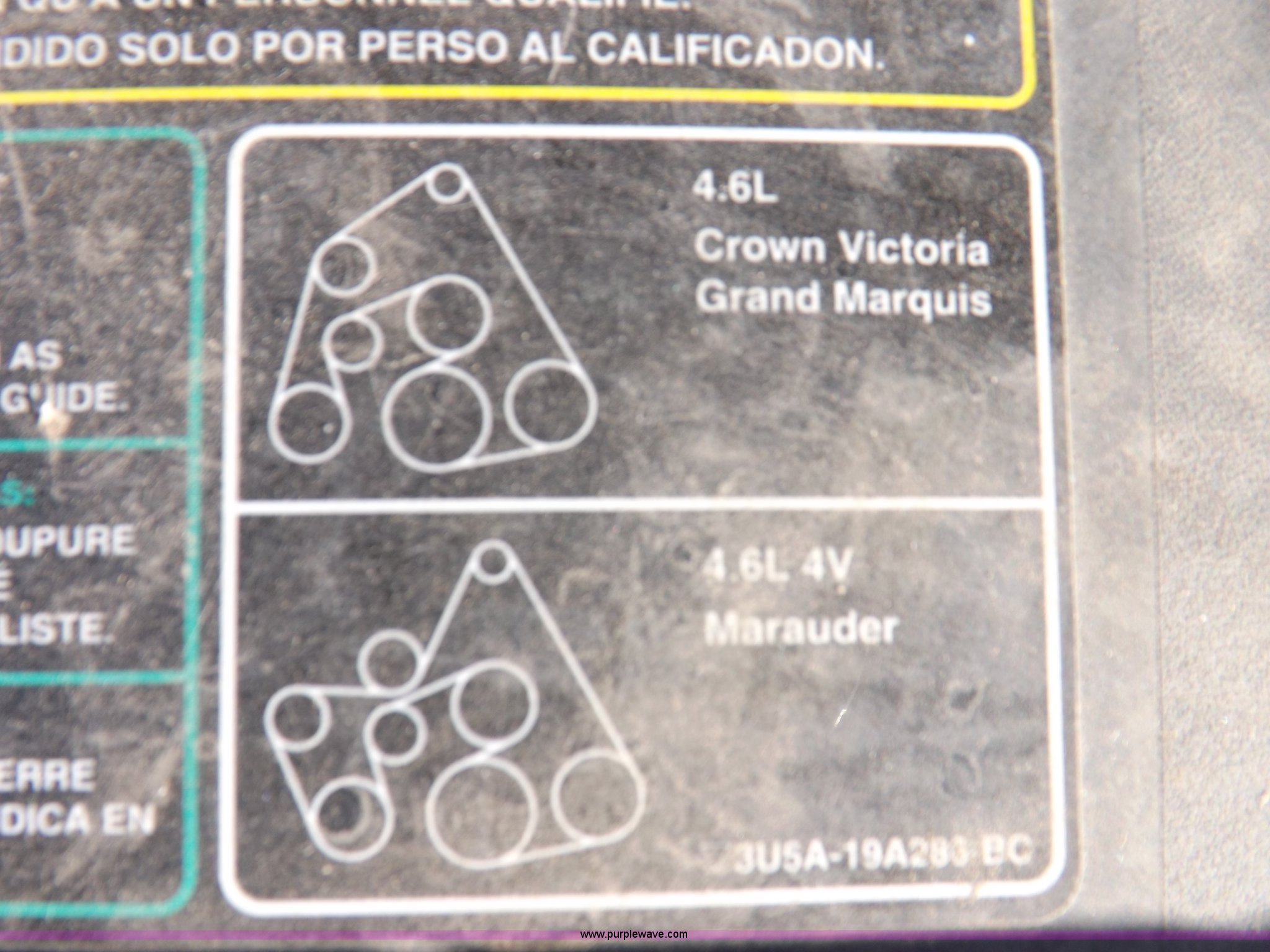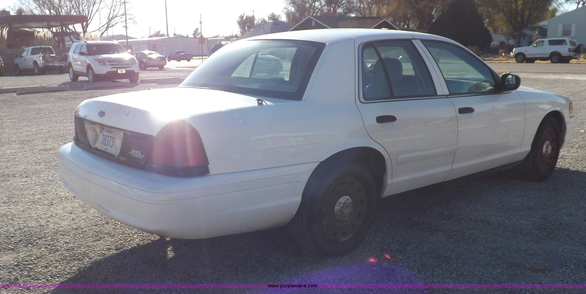 Purple Wave is selling a used Passenger Vehicle in Kansas. This item is a 2004 Ford Crown Victoria Police Interceptor with the following: 150,144 miles on odometer, 4.6L V8 SOHC 16V gas engine, Automatic transmission, AC and heat, Tilt, Cruise, AM/FM/cassette, Power windows, locks, mirrors, and seats, Cloth interior, Spotlight, 225/60R16 tires, Front bumper trim damage, Cab roof hole, Filled, Interior/exterior cosmetic damage, Paint damaged, Front right turn signal housing cracked, Rear door panels missing, Interior trim damage
