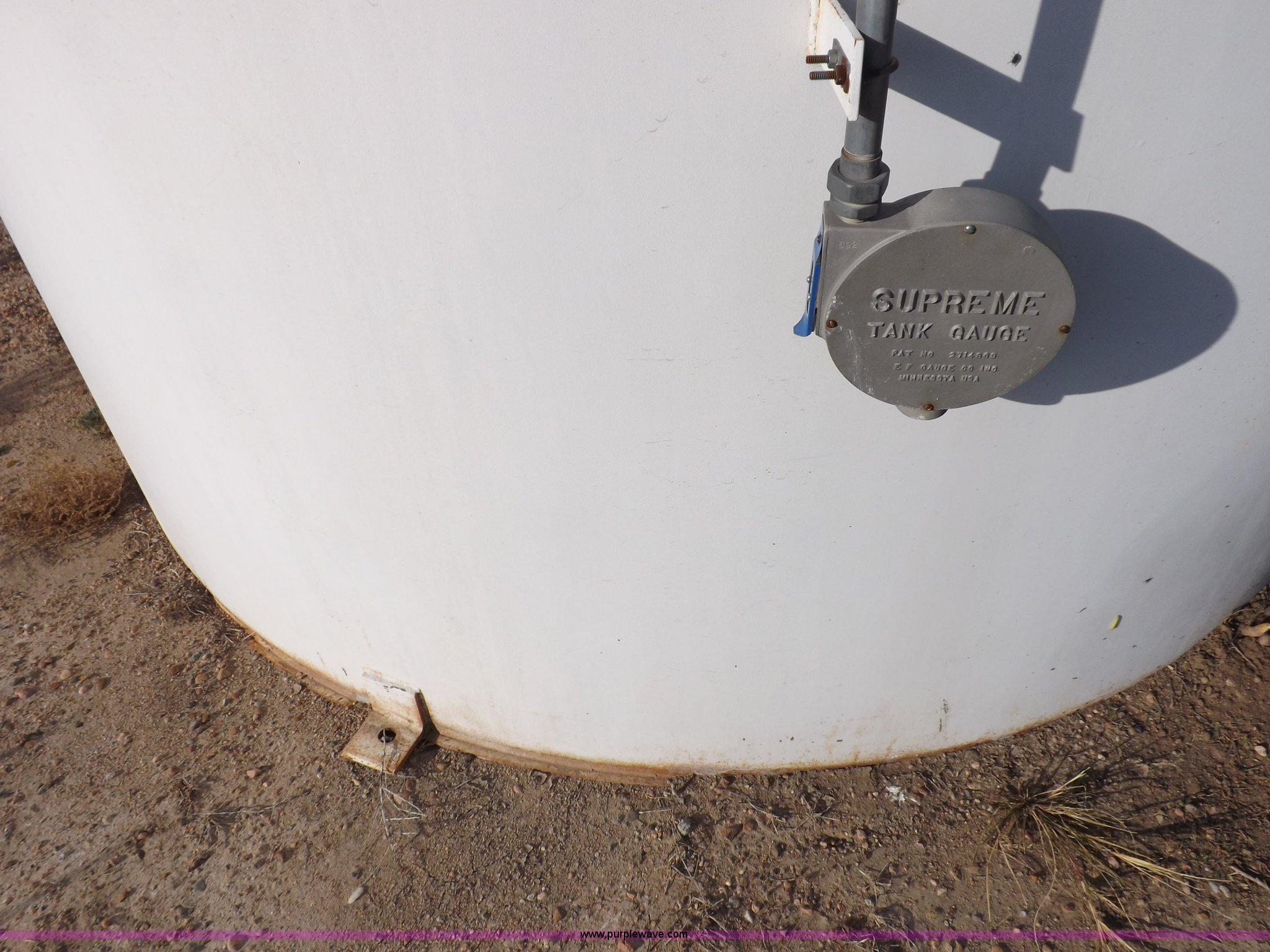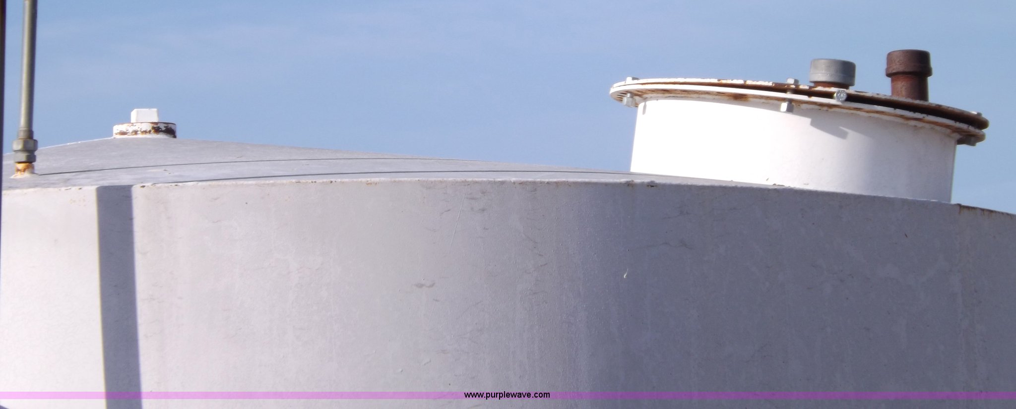 Purple Wave is selling a used Tanks in Kansas. This item is a Palmer vertical tank with the following: 11'H x 10' diameter, 3/16" shell, 1/4" bottom, Approx. 6,400 gallon capacity, (2) 2" bottom outlets, 4" top vent, 21" manway, Plumbed for tank gauge, (4) mounting flanges at base