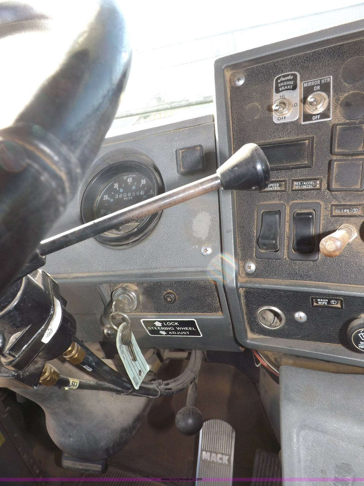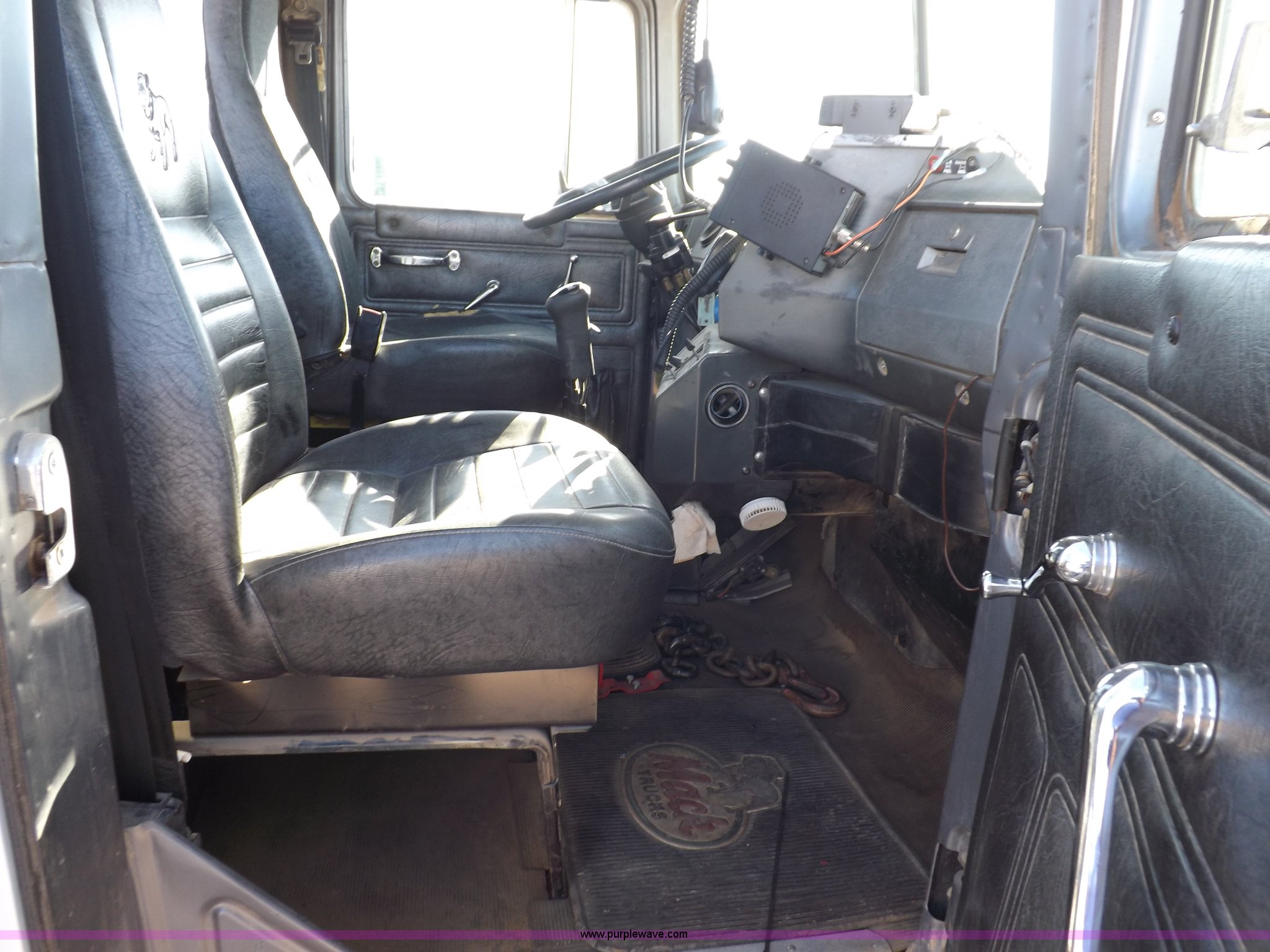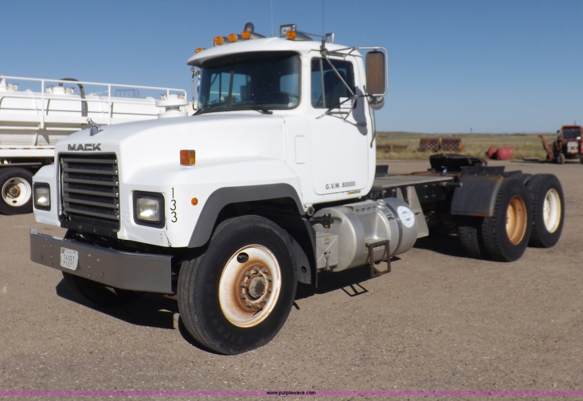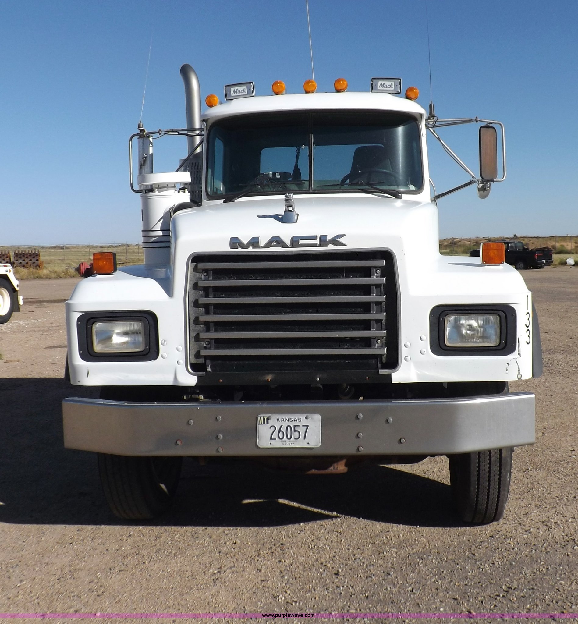 Purple Wave is selling a used Truck Tractor in Kansas. This item is a 1997 Mack RD688S semi truck with the following: 320,856 miles on odometer, Mack E7 12.0L L6 diesel engine, 350 HP, Maxitorque T2130 13 speed manual transmission, AC and heat, Tilt, Cruise, AM/FM/cassette, Air suspension seat, Heated mirrors, Air ride cab, Visor, Chrome bumper, Block heater, Air slide fifth wheel, Dual 79 gallon fuel tanks, Single rear exhaust stack, Aluminum deck plate, Steel quarter fenders, Spring suspension, Air brakes, Brake controller, Jake brake, 231" wheelbas, 11R24.5 tires, Interior/exterior cosmetic damage, Radio gear will be removed, Torn seat, Right rear wheel seal leak, Cracked windshield, Unit# 133