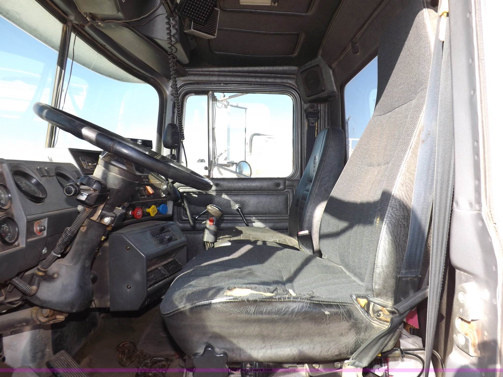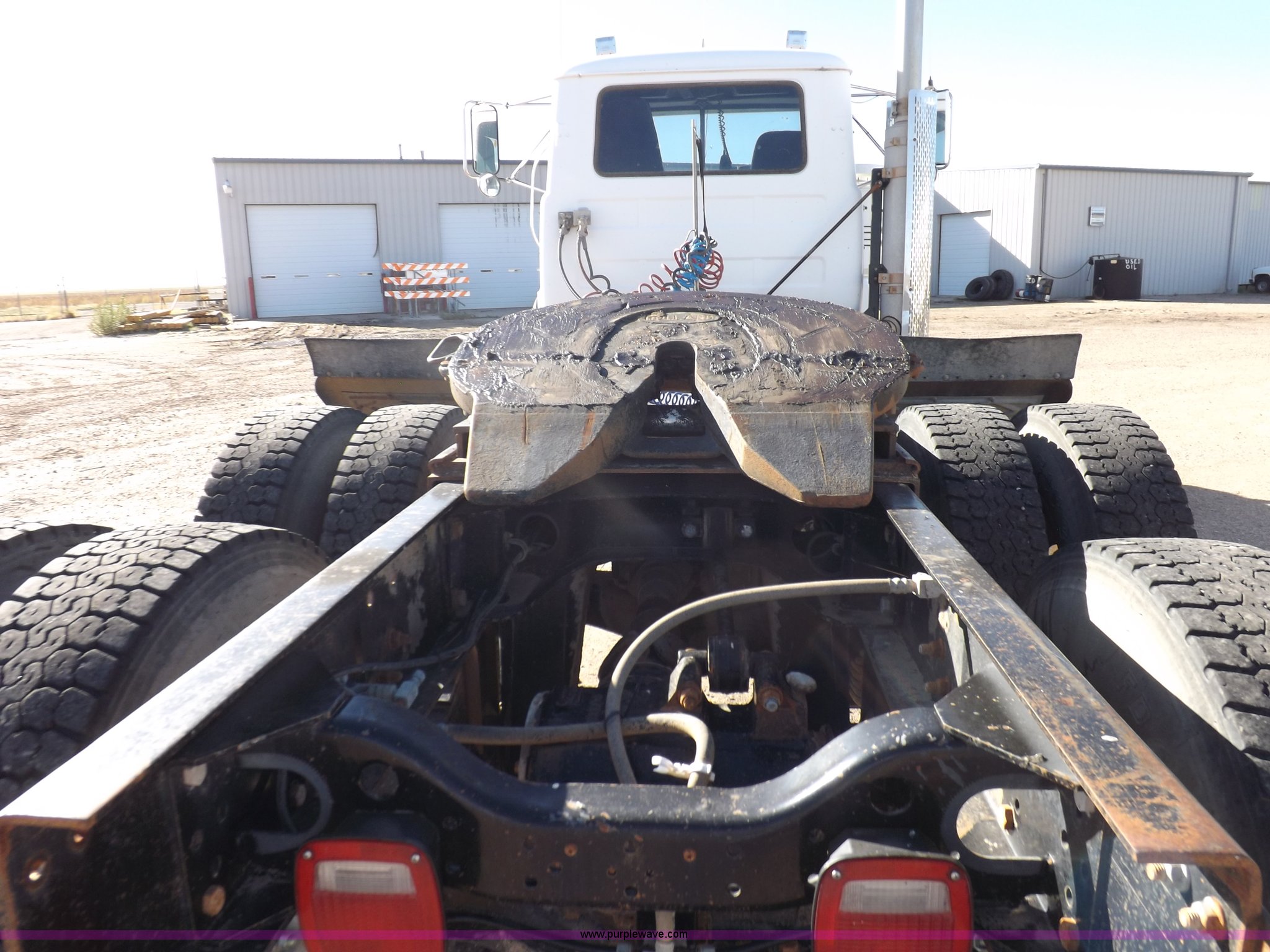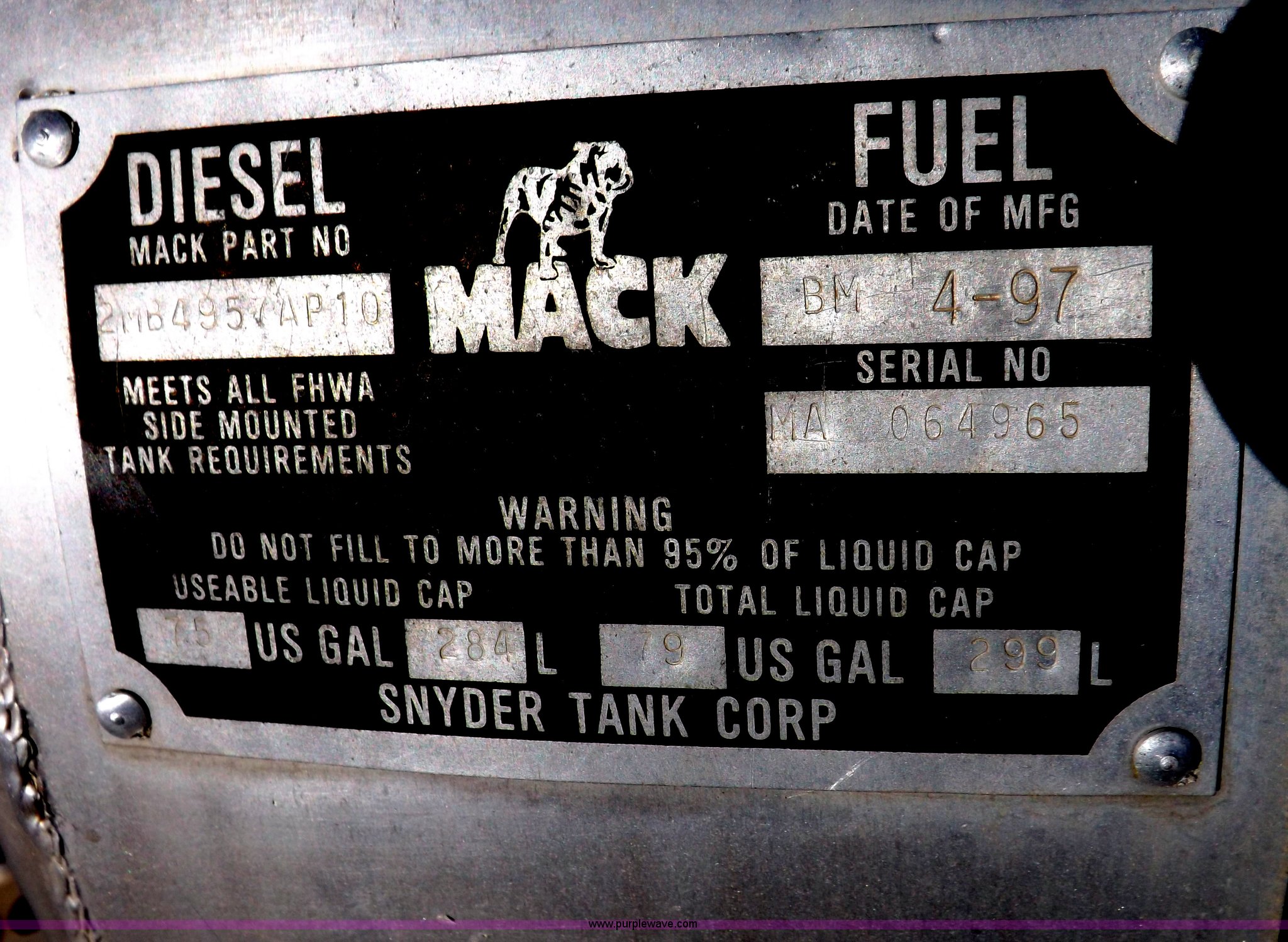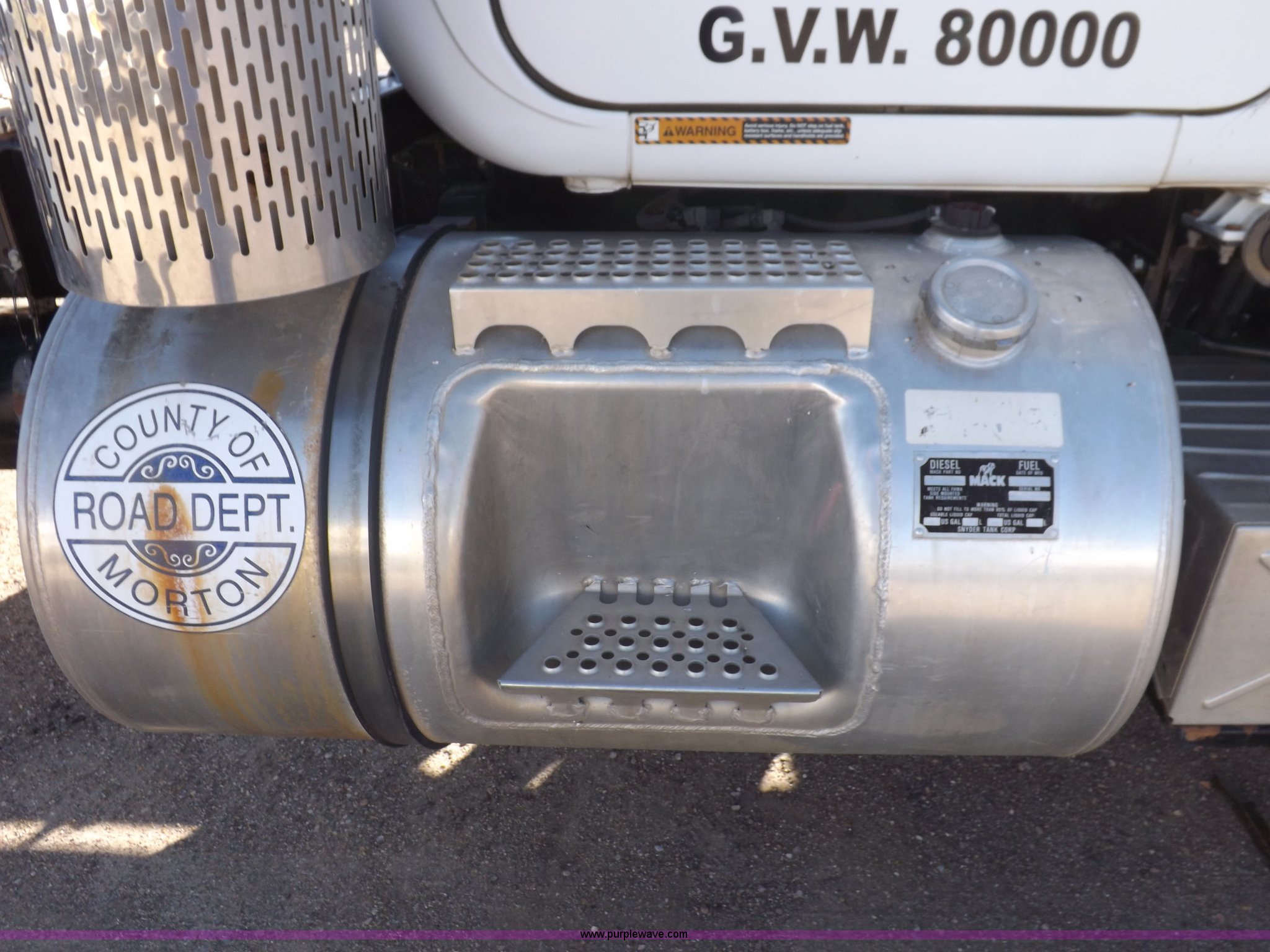 Purple Wave is selling a used Truck Tractor in Kansas. This item is a 1997 Mack RD688S semi truck with the following: 320,856 miles on odometer, Mack E7 12.0L L6 diesel engine, 350 HP, Maxitorque T2130 13 speed manual transmission, AC and heat, Tilt, Cruise, AM/FM/cassette, Air suspension seat, Heated mirrors, Air ride cab, Visor, Chrome bumper, Block heater, Air slide fifth wheel, Dual 79 gallon fuel tanks, Single rear exhaust stack, Aluminum deck plate, Steel quarter fenders, Spring suspension, Air brakes, Brake controller, Jake brake, 231" wheelbas, 11R24.5 tires, Interior/exterior cosmetic damage, Radio gear will be removed, Torn seat, Right rear wheel seal leak, Cracked windshield, Unit# 133