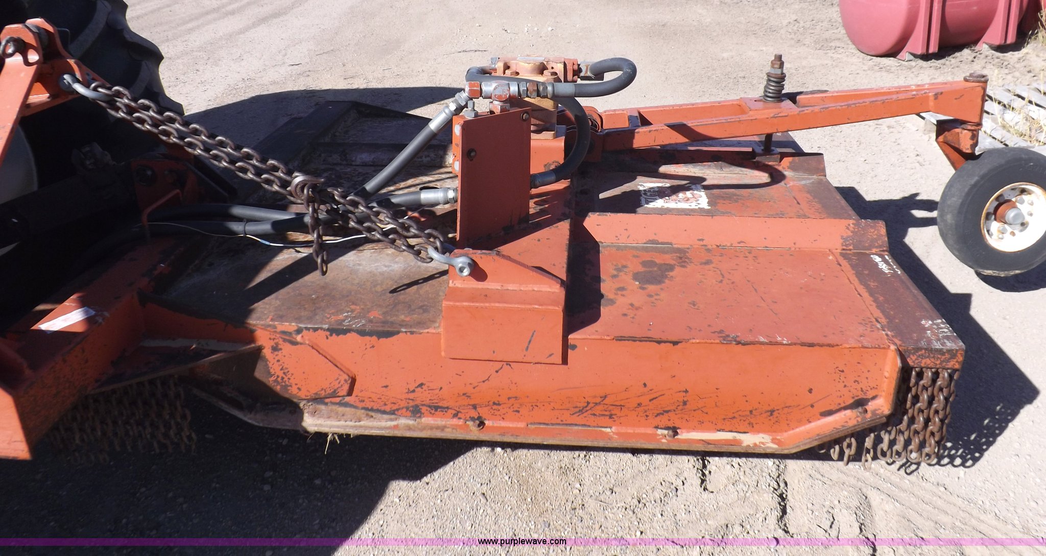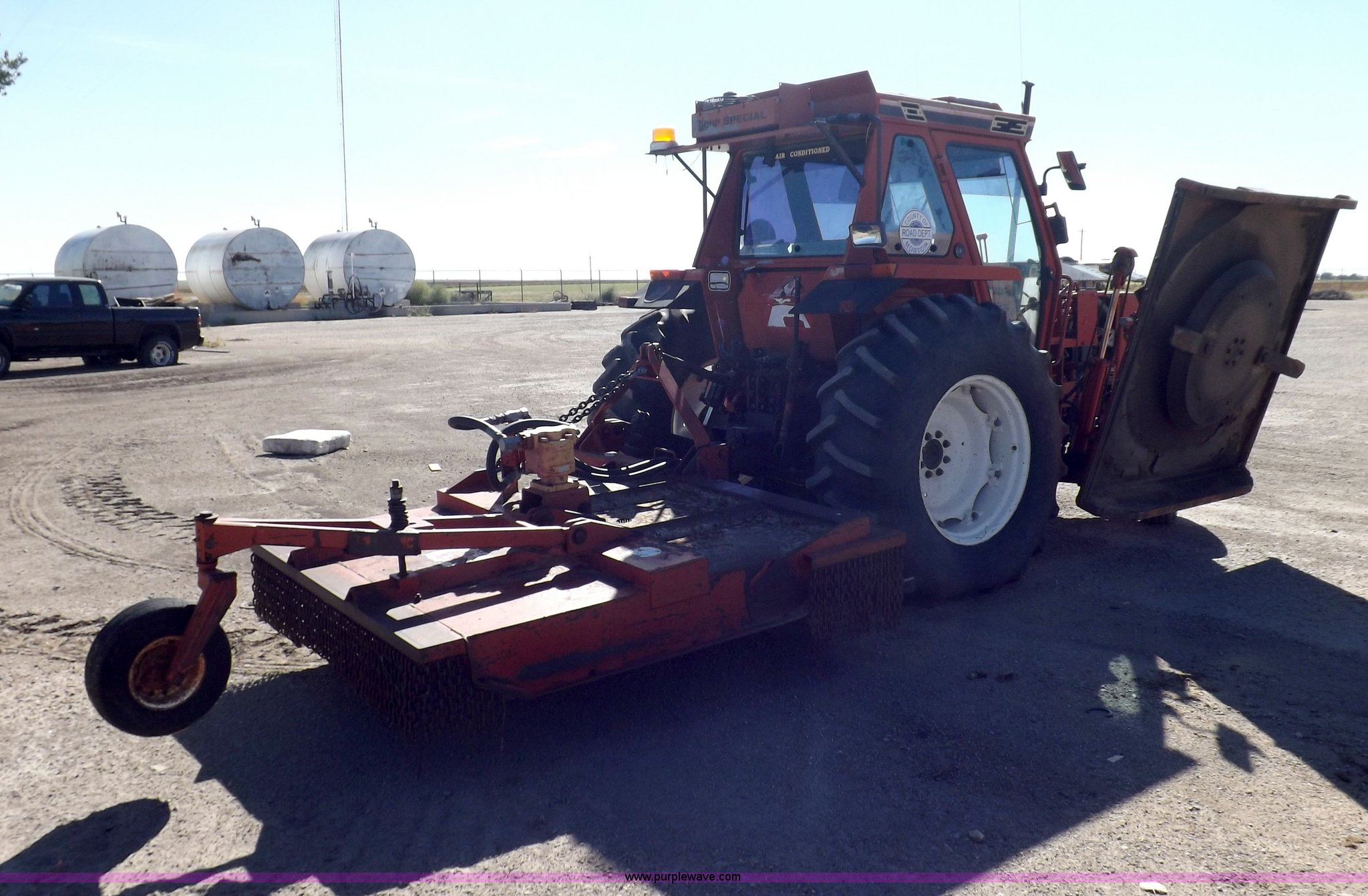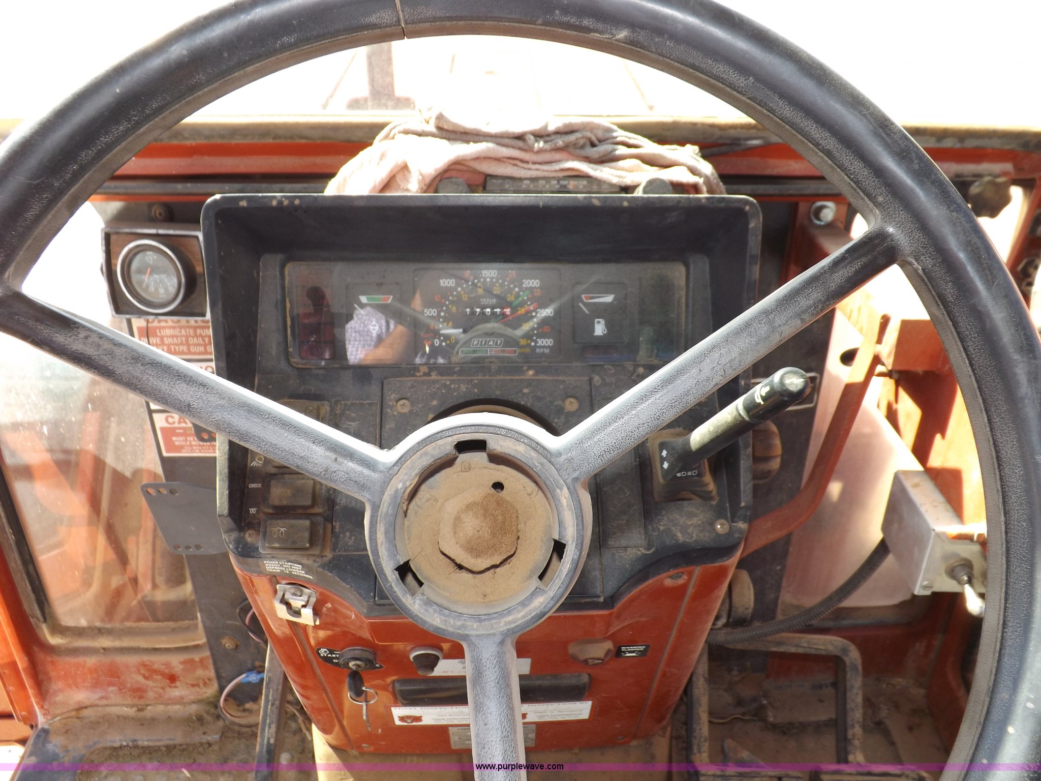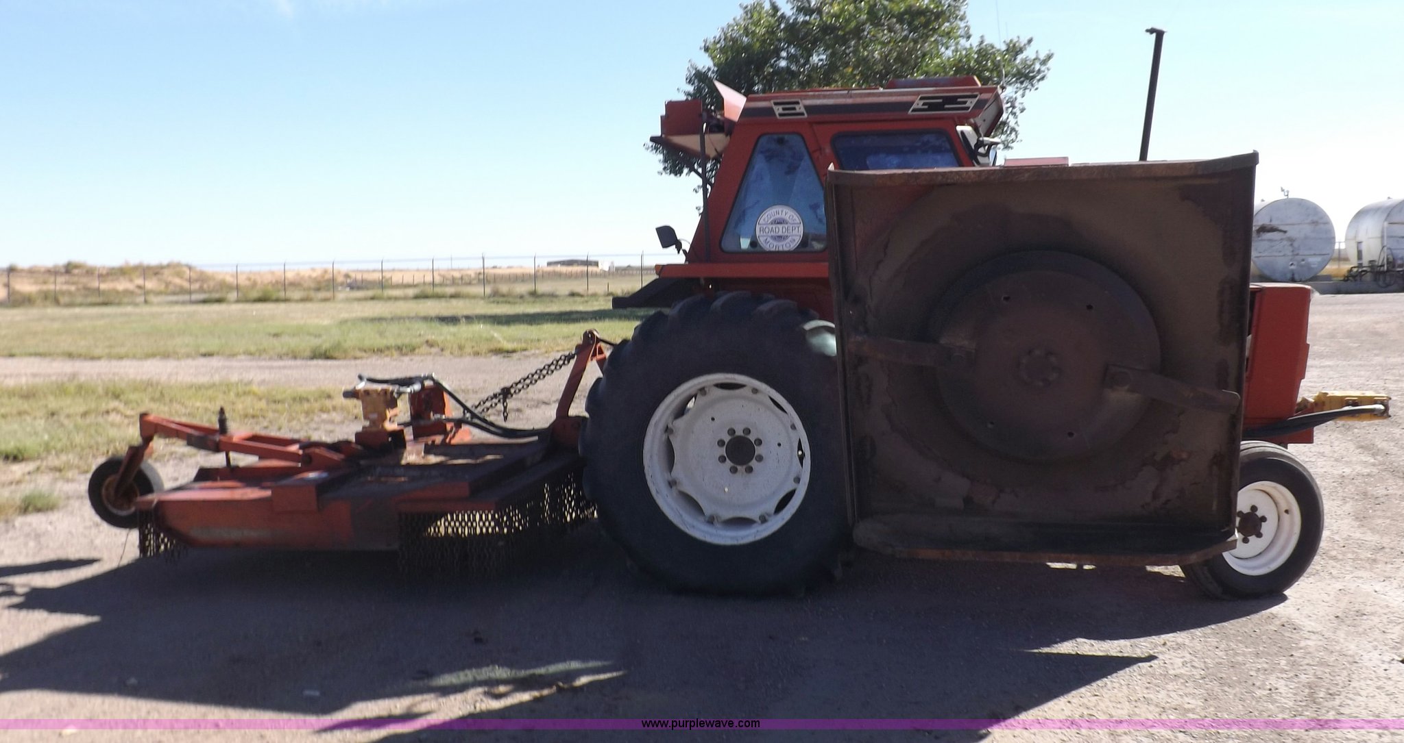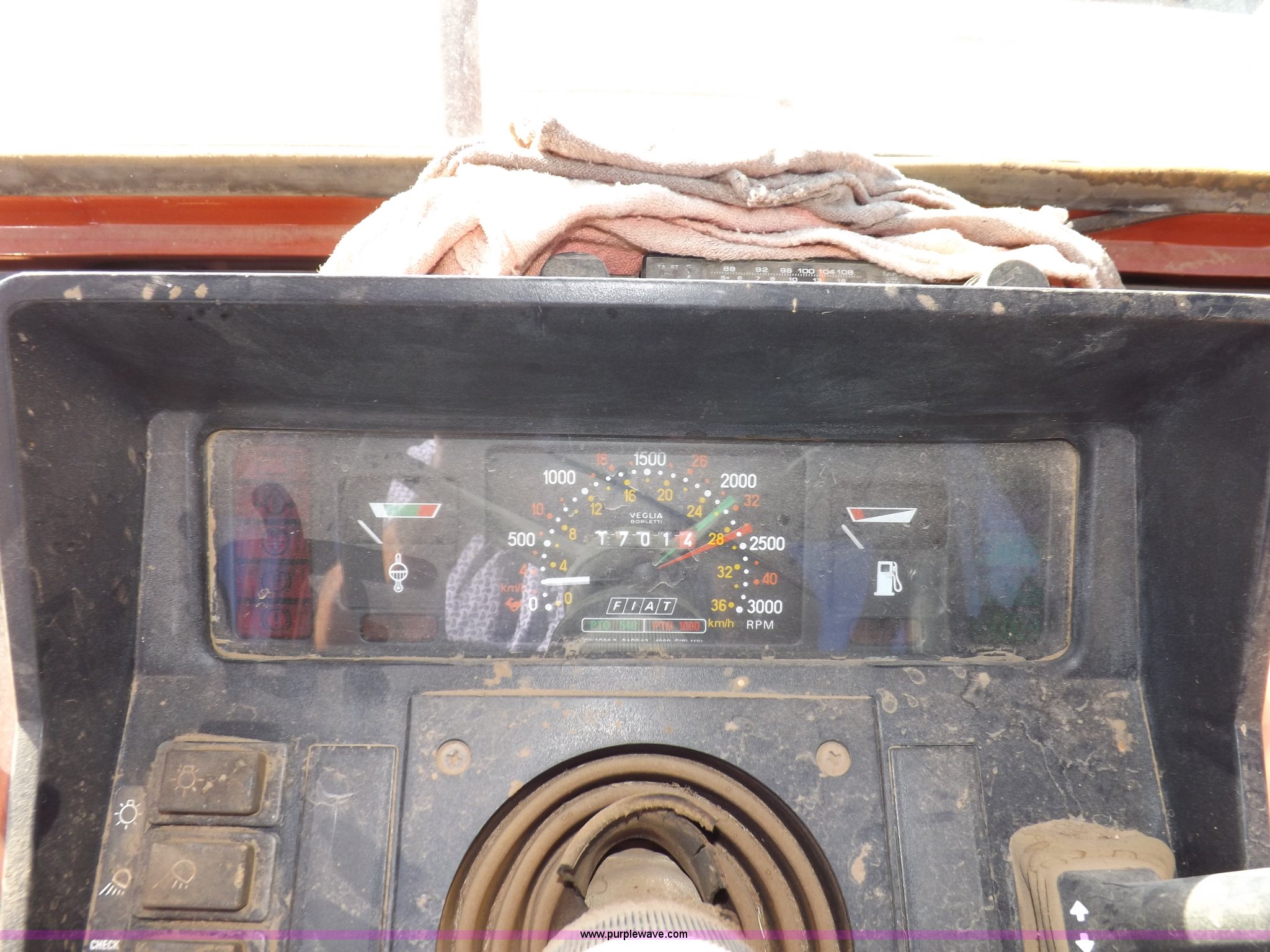 Purple Wave is selling a used Tractor in Kansas. This item is a Fiat 80-90/20/1 tractor with the following: 1,701 hours on meter, Fiat 8045-05 four cylinder diesel engine, Manual transmission, 12F-12R gears, Differential lock, AC and heat, AM/FM/cassette, Spring suspension seat, Tilt steering wheel, Three point, Draw bar, Auxiliary outlet, 540 PTO, Front mount PTO, Hydraulic pump, 540 RPM, Tiger off-set rear mower, 5'W, 5.00x8 tires, Hydrualic driven, Tiger side mower, 5'W, Hydrualic driven, 92" wheelbase, 7.5-16 front tires, 18.4-30 calcium filled rear tires, Shop manuals for tractor, Left rear tire valve stem leaks calcium, Serial D6M30007MAAG0M
