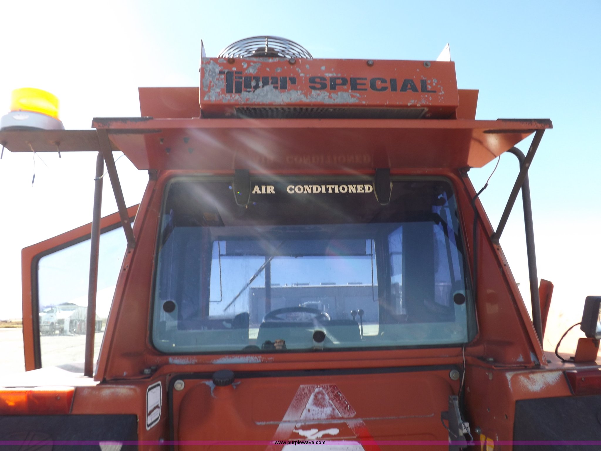 Fiat 80-90/20/1 tractor. 1,701 hours on meter, Fiat 8045-05 four cylinder diesel engine, Manual transmission 12F-12R gears, Differential lock, AC and heat, AM/FM/cassette, Spring suspension seat, Tilt steering wheel, Three point, Draw bar, Auxiliary outlet, 540 PTO, Front mount PTO Hydraulic pump, 540 RPM, Tiger off-set rear mower 5'W, 5.00x8 tires, Hydrualic driven, Tiger side mower 5'W, Hydrualic driven, 92" wheelbase, 7.5-16 front tires, 18.4-30 calcium filled rear tires, Shop manuals for tractor, Left rear tire valve stem leaks calcium, Serial D6M30007MAAG0M. View equipment video. Morton County Road Department. 580 Road 16H. Elkhart, KS 67950