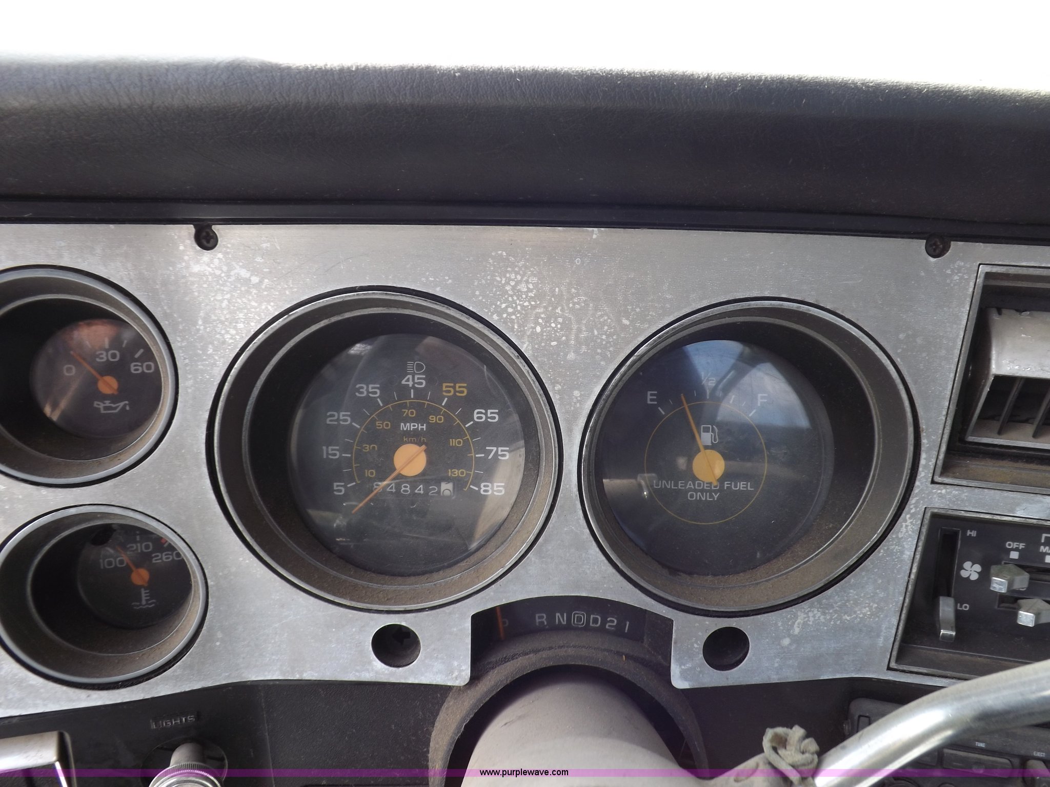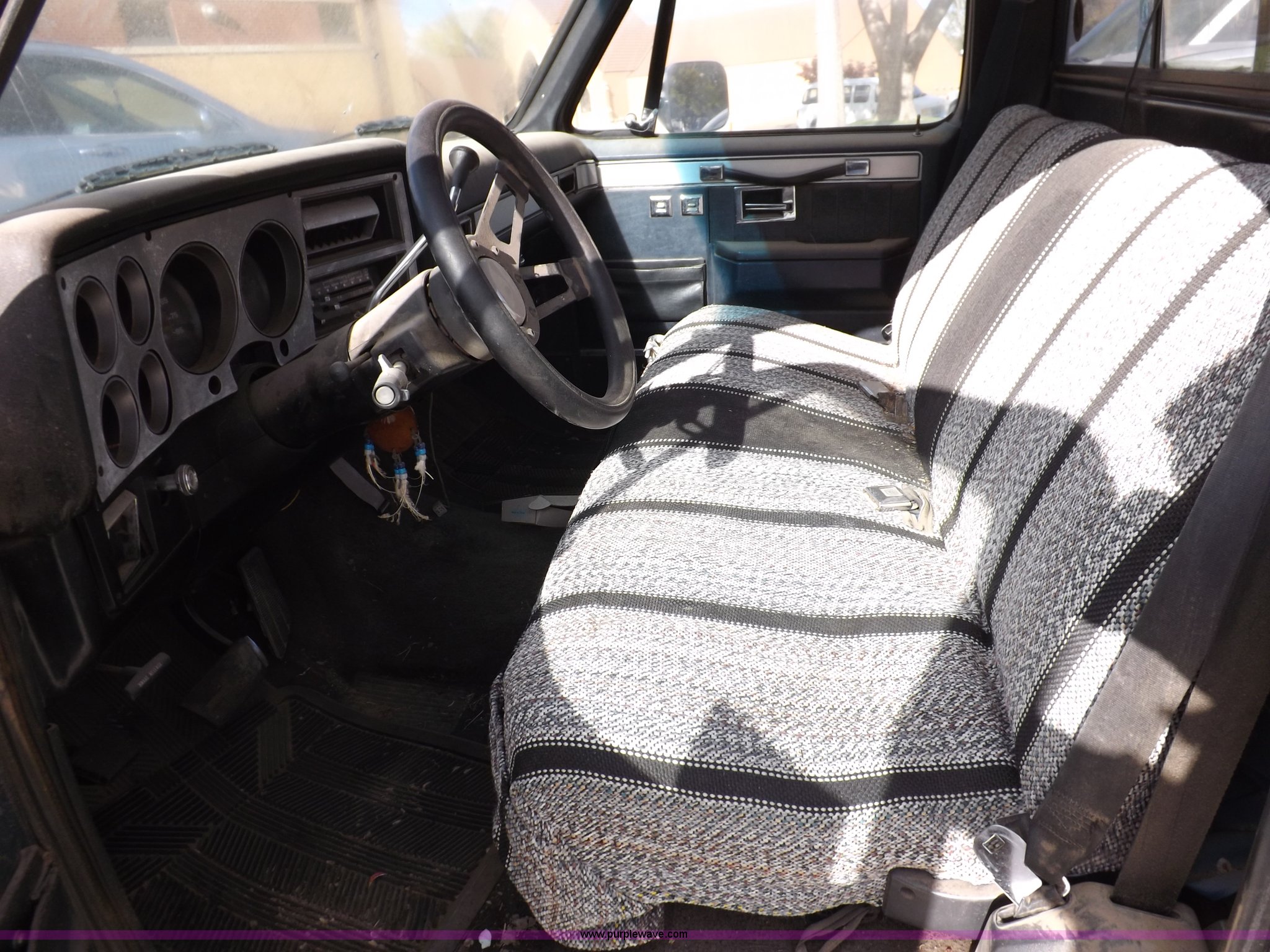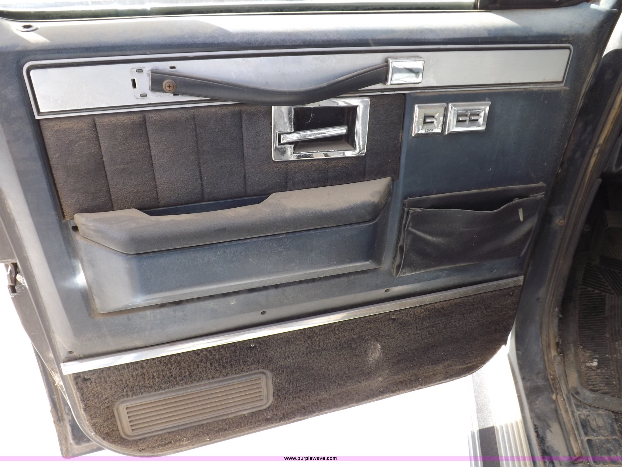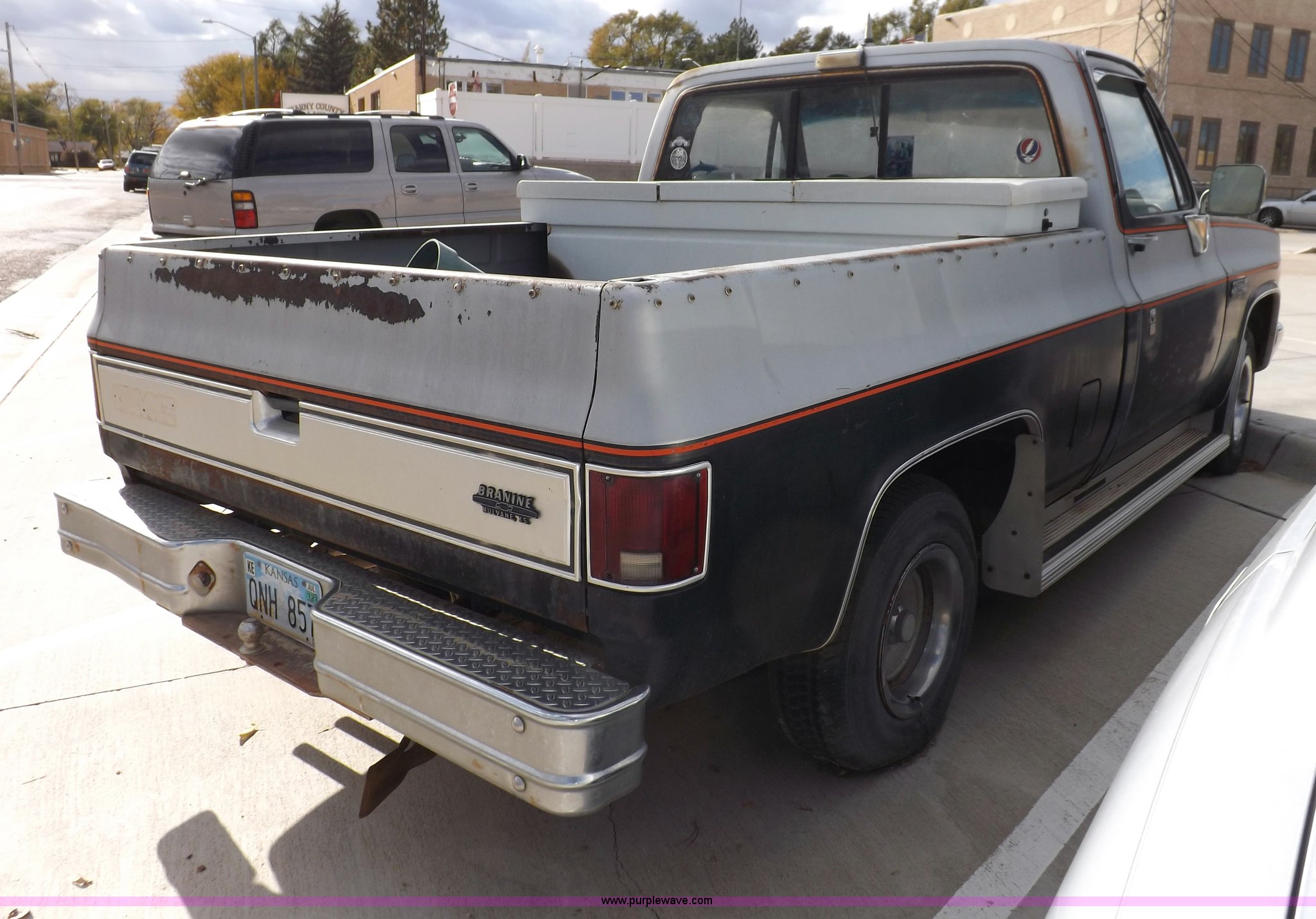 Purple Wave is selling a used Passenger Vehicle in Kansas. This item is a 1985 GMC Sierra Classic 1500 pickup truck with the following: 84,842 miles on odometer, 5.0L V8 VIH 16V gas engine, Automatic transmission, AC and heat, Tilt, Cruise, AM/FM/cassette, Power windows and locks, Cloth interior, Running boards, Cross bed toolbox, Window trim, 225/75R15 tires, Non-operational, Interior/exterior cosmetic damage, Paint and trim damage, Chipped windshield, Rust, Rear bumper damage, Headliner loose