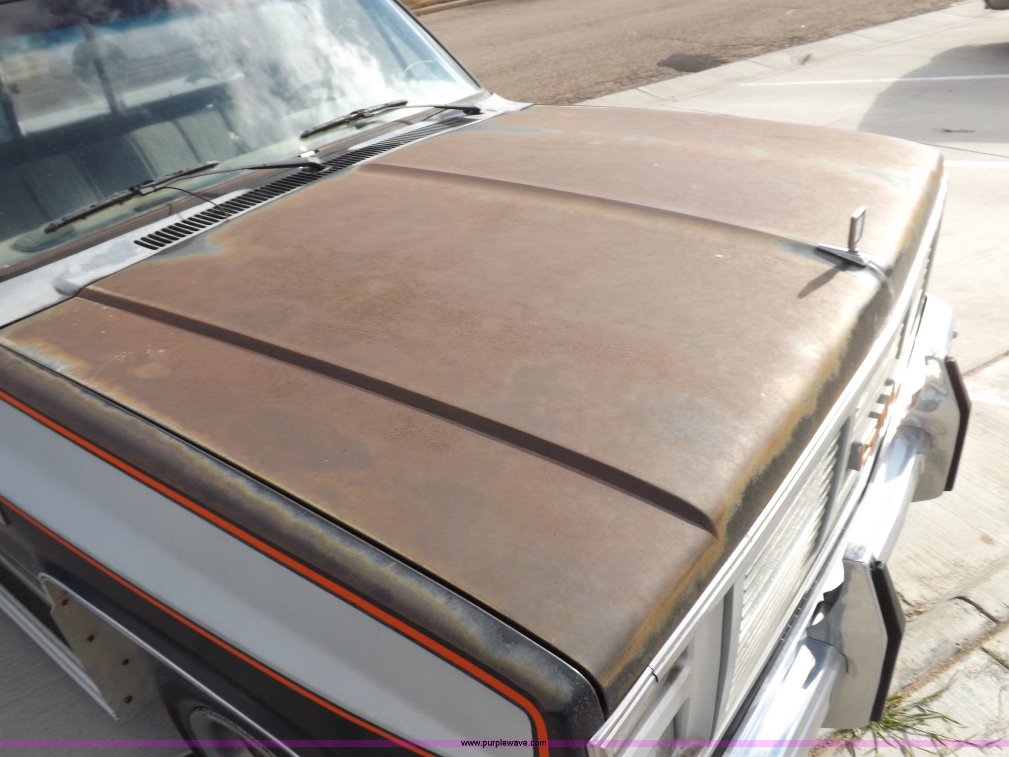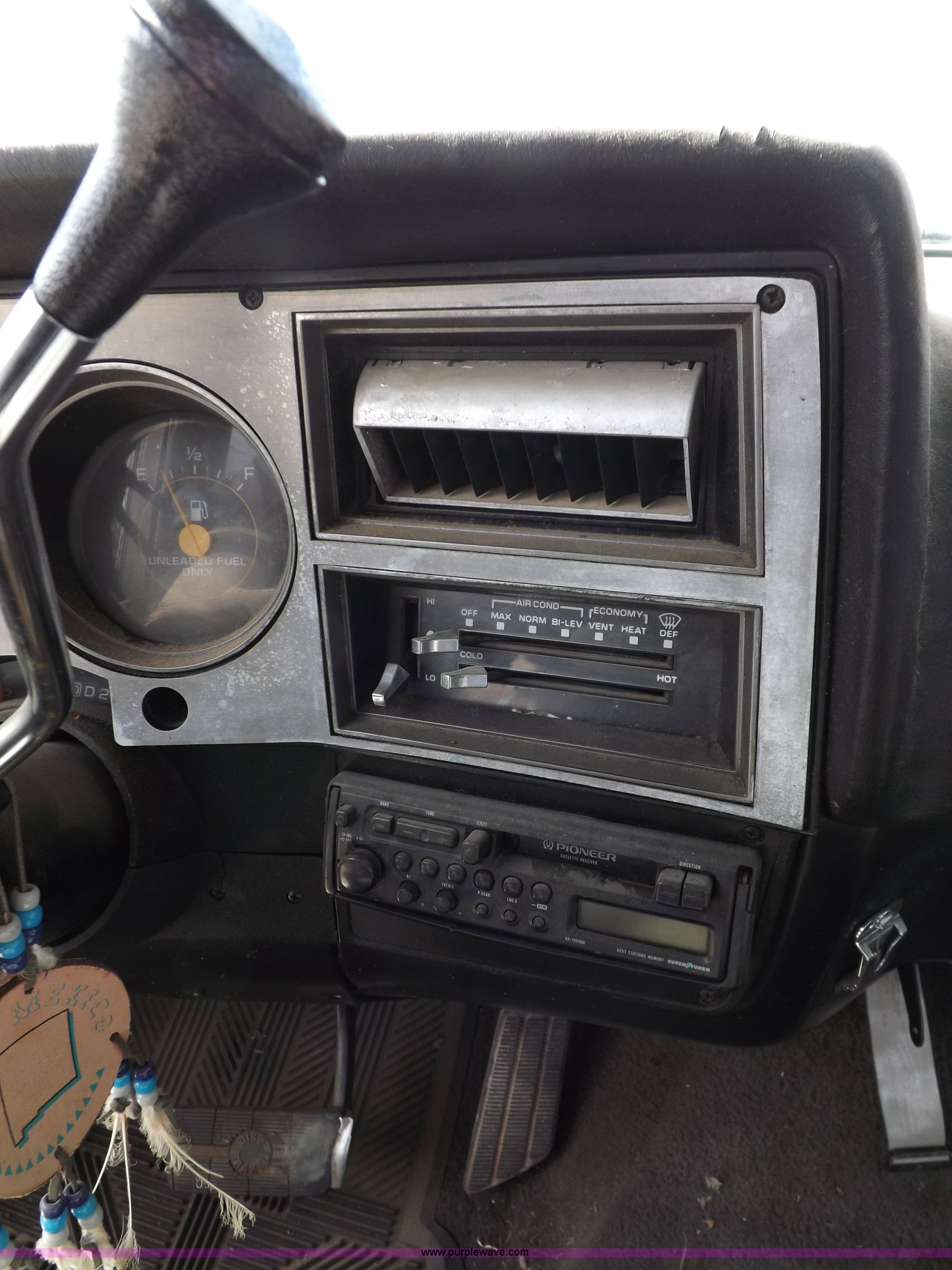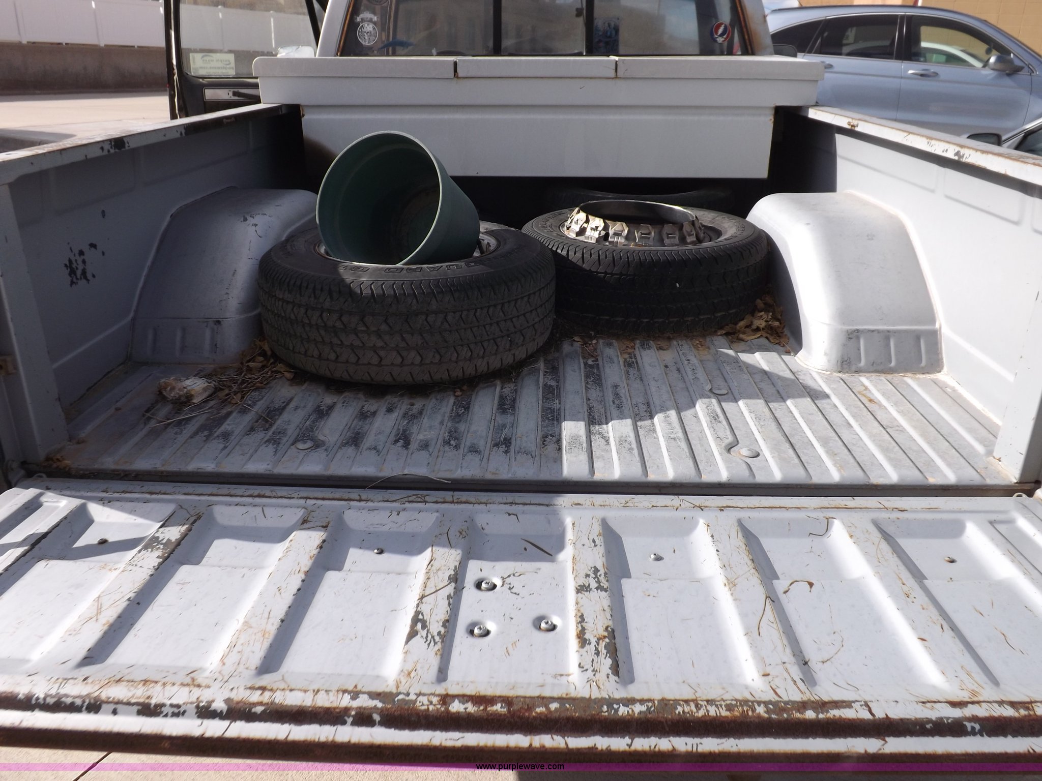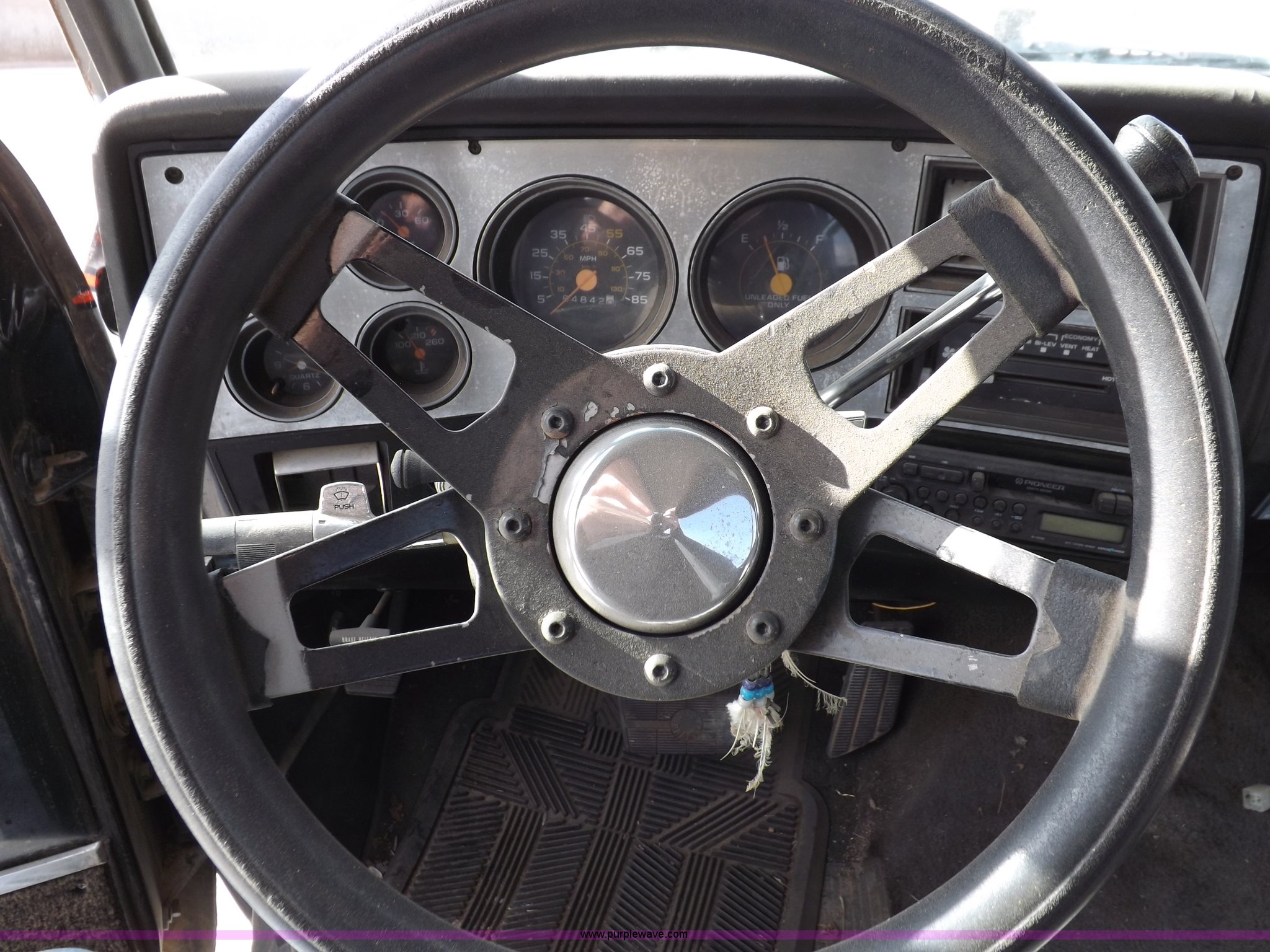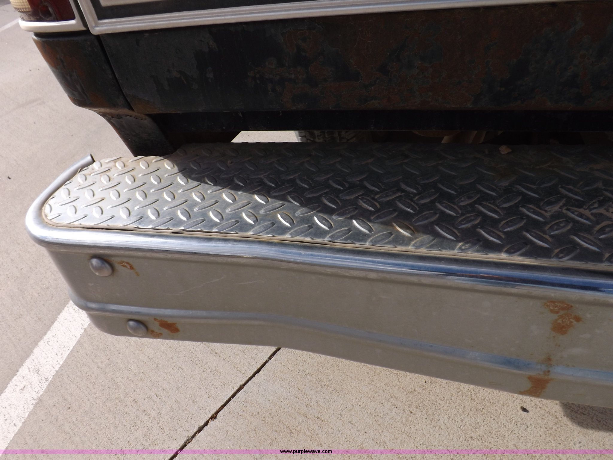 Purple Wave is selling a used Passenger Vehicle in Kansas. This item is a 1985 GMC Sierra Classic 1500 pickup truck with the following: 84,842 miles on odometer, 5.0L V8 VIH 16V gas engine, Automatic transmission, AC and heat, Tilt, Cruise, AM/FM/cassette, Power windows and locks, Cloth interior, Running boards, Cross bed toolbox, Window trim, 225/75R15 tires, Non-operational, Interior/exterior cosmetic damage, Paint and trim damage, Chipped windshield, Rust, Rear bumper damage, Headliner loose