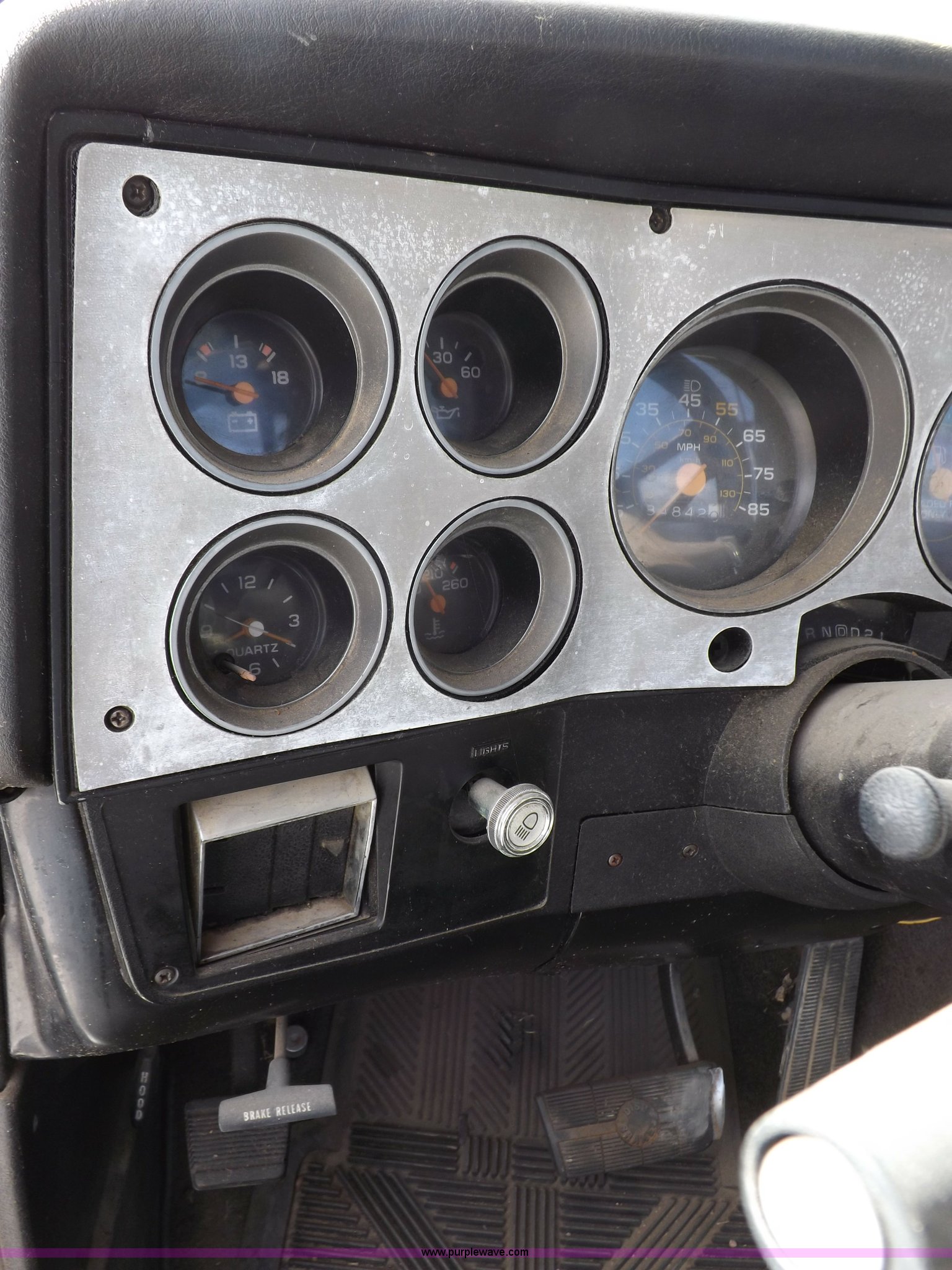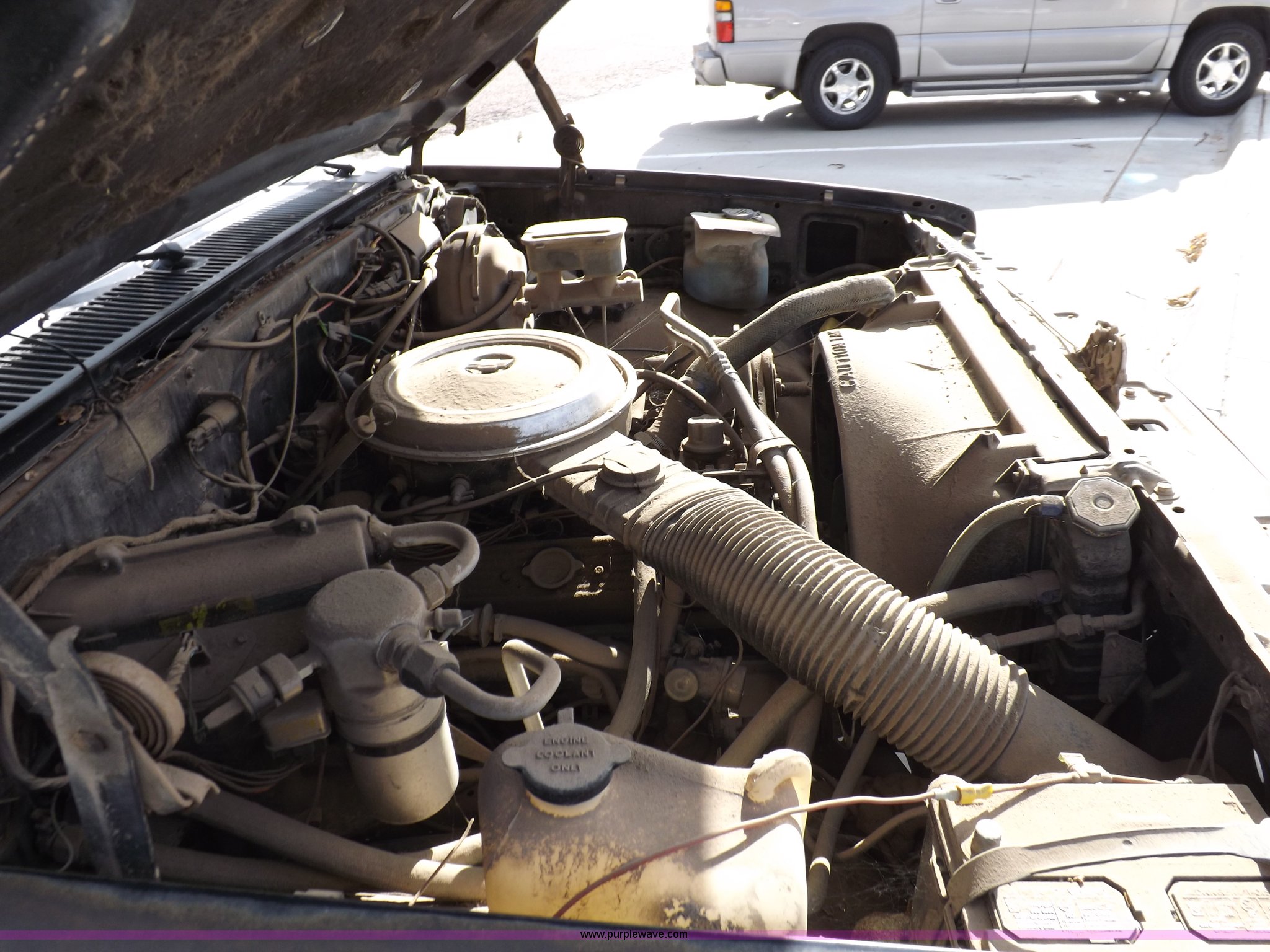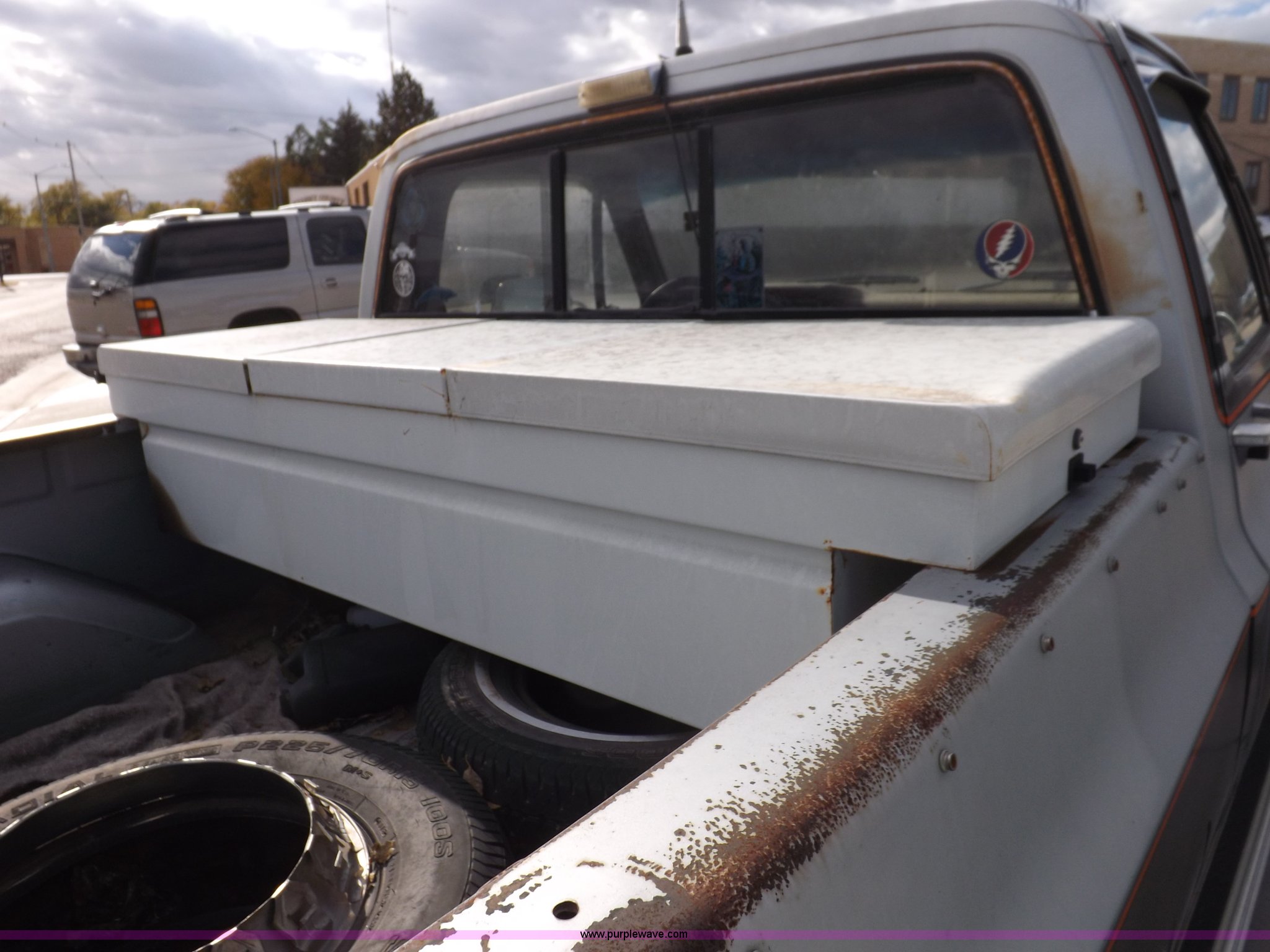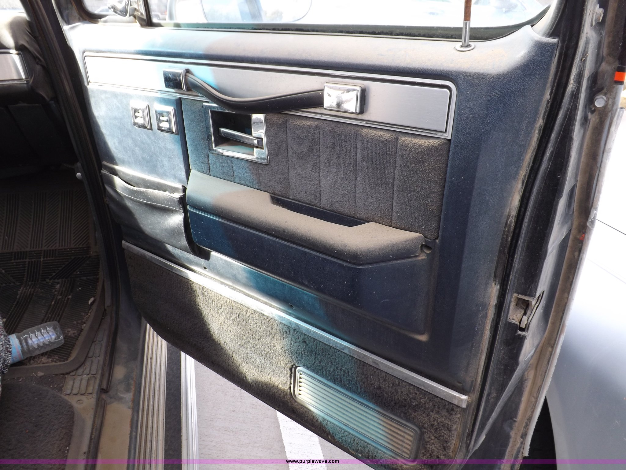 Purple Wave is selling a used Passenger Vehicle in Kansas. This item is a 1985 GMC Sierra Classic 1500 pickup truck with the following: 84,842 miles on odometer, 5.0L V8 VIH 16V gas engine, Automatic transmission, AC and heat, Tilt, Cruise, AM/FM/cassette, Power windows and locks, Cloth interior, Running boards, Cross bed toolbox, Window trim, 225/75R15 tires, Non-operational, Interior/exterior cosmetic damage, Paint and trim damage, Chipped windshield, Rust, Rear bumper damage, Headliner loose