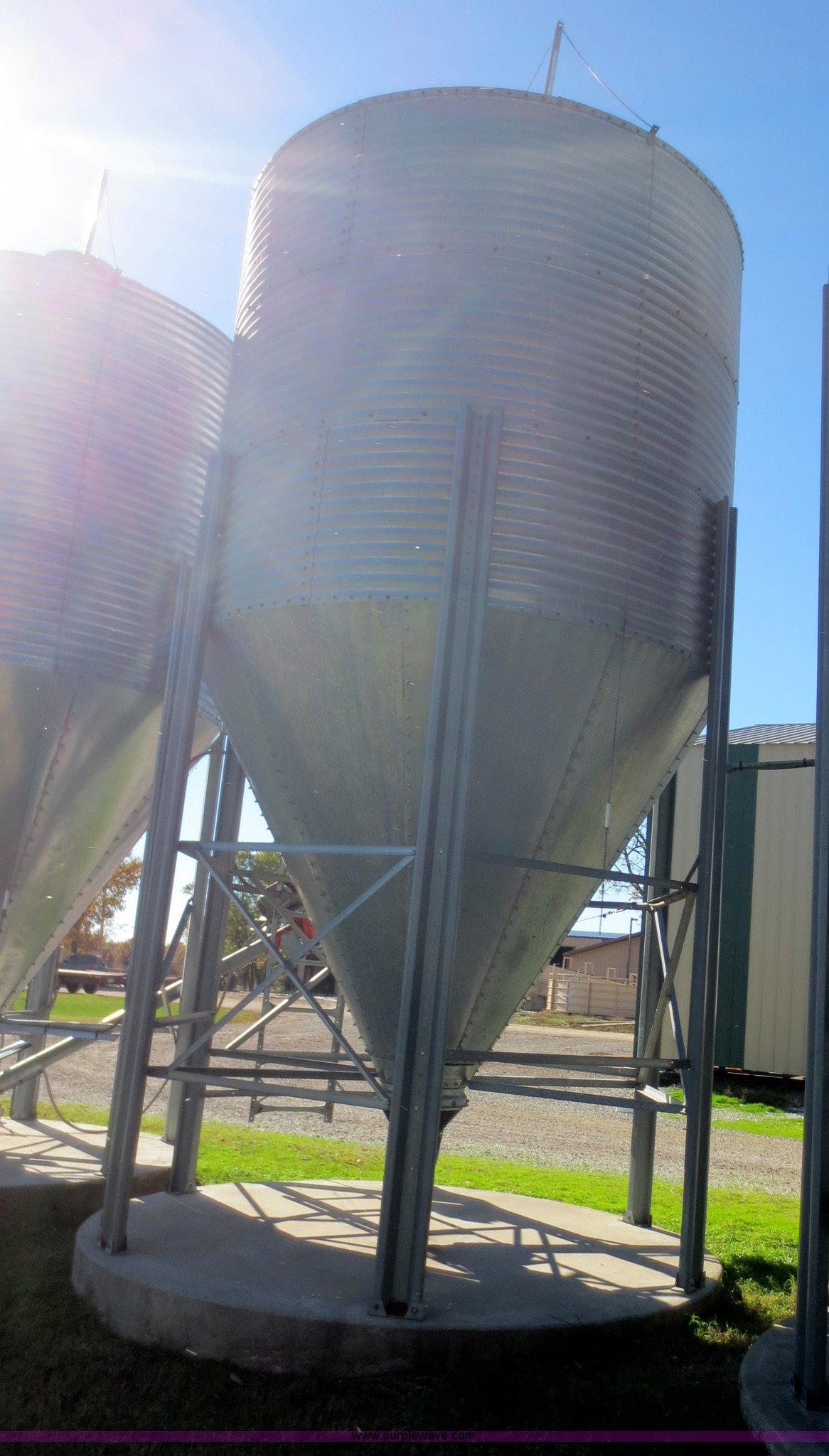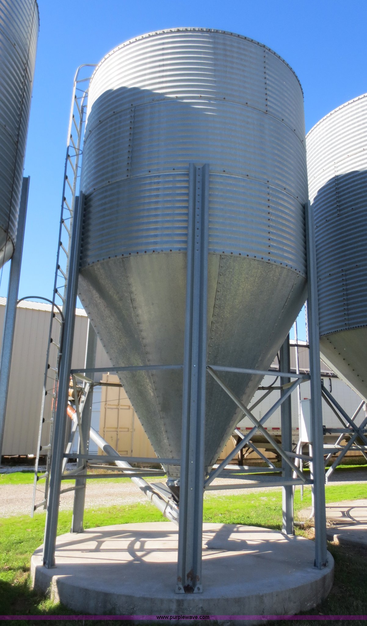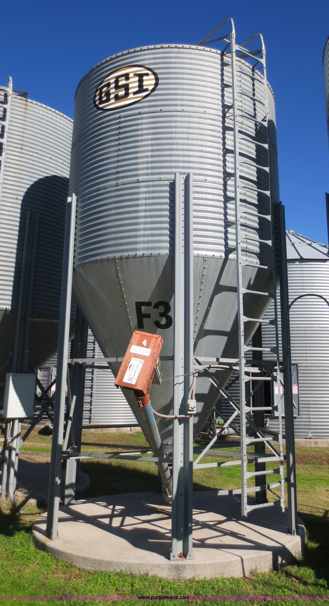 Purple Wave is selling a used Other Grain or Fertilizer Handling in Kansas. This item is a GSI storage bin with the following: Approximately 500 bushel capacity, Jet Flow auger, 3/4 HP 220V motor
