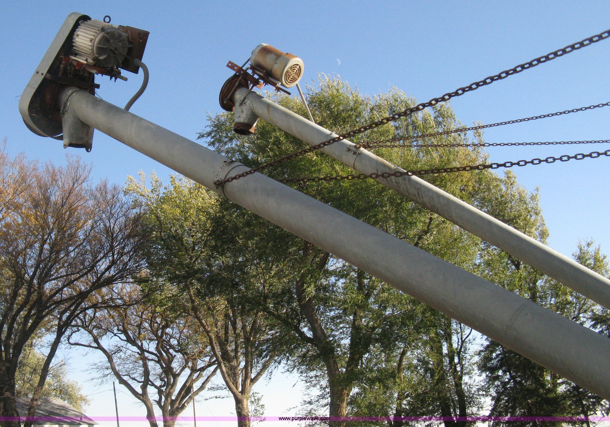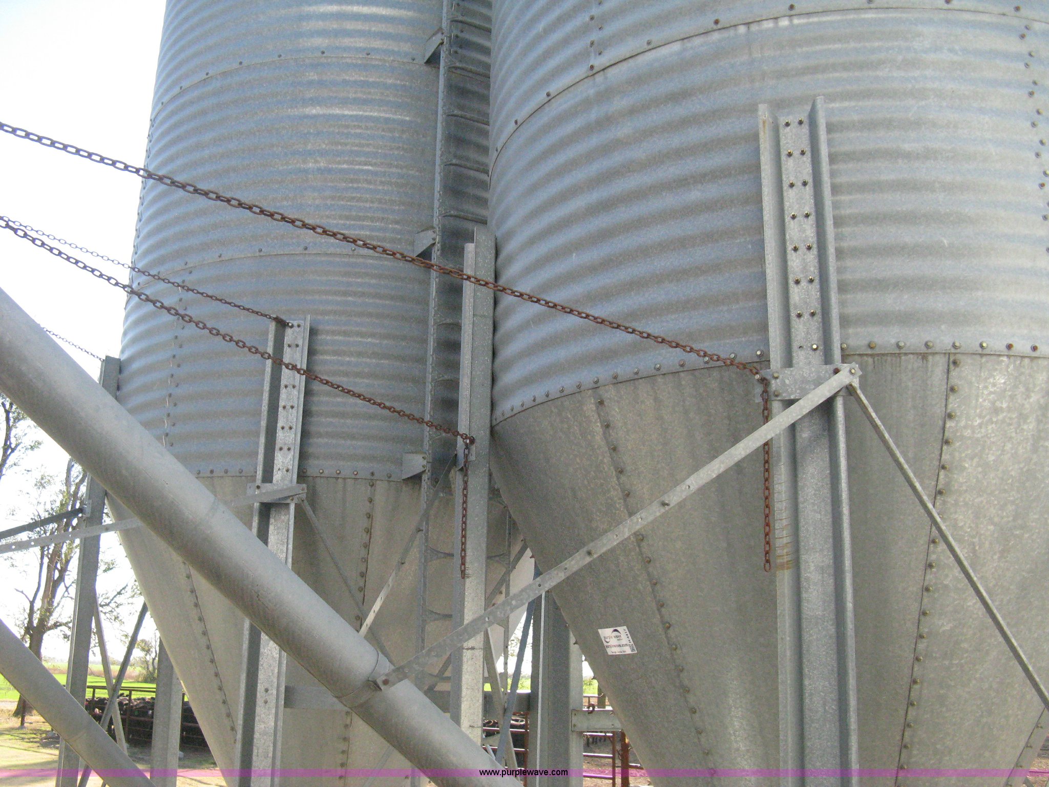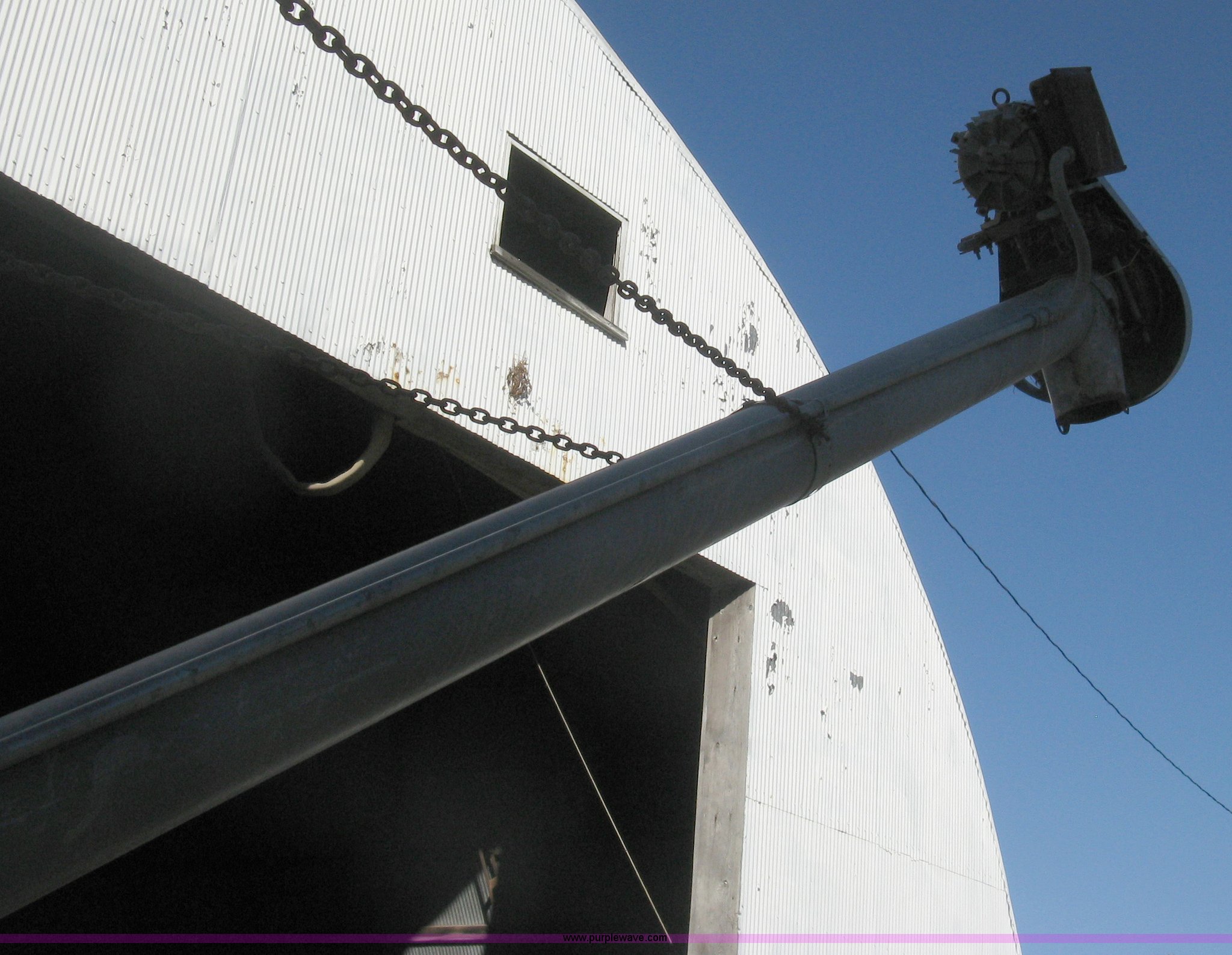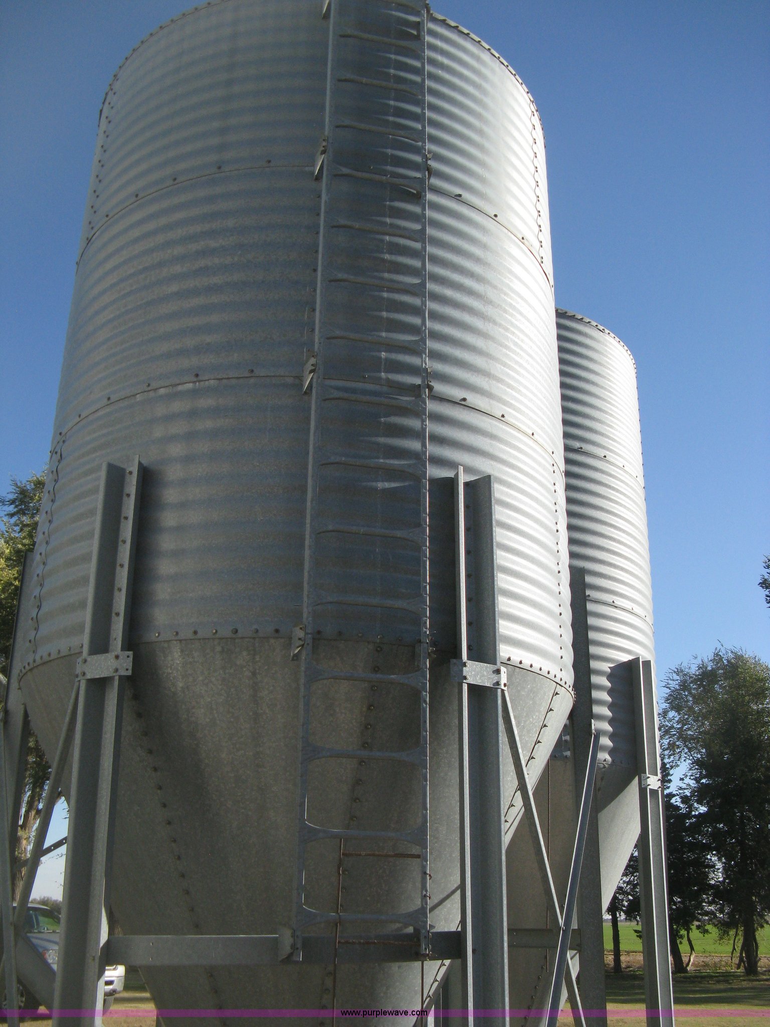 Purple Wave is selling a used Other Grain or Fertilizer Handling in Kansas. This item is a Butler bulk bin with the following: Cone bottom, Approx. 650 bu. capacity, Three 42" rings, 90"L cone bottom, Galvanized, Approx. 18'L unloading auger, 6" diameter, Electric motor, Side mount ladder