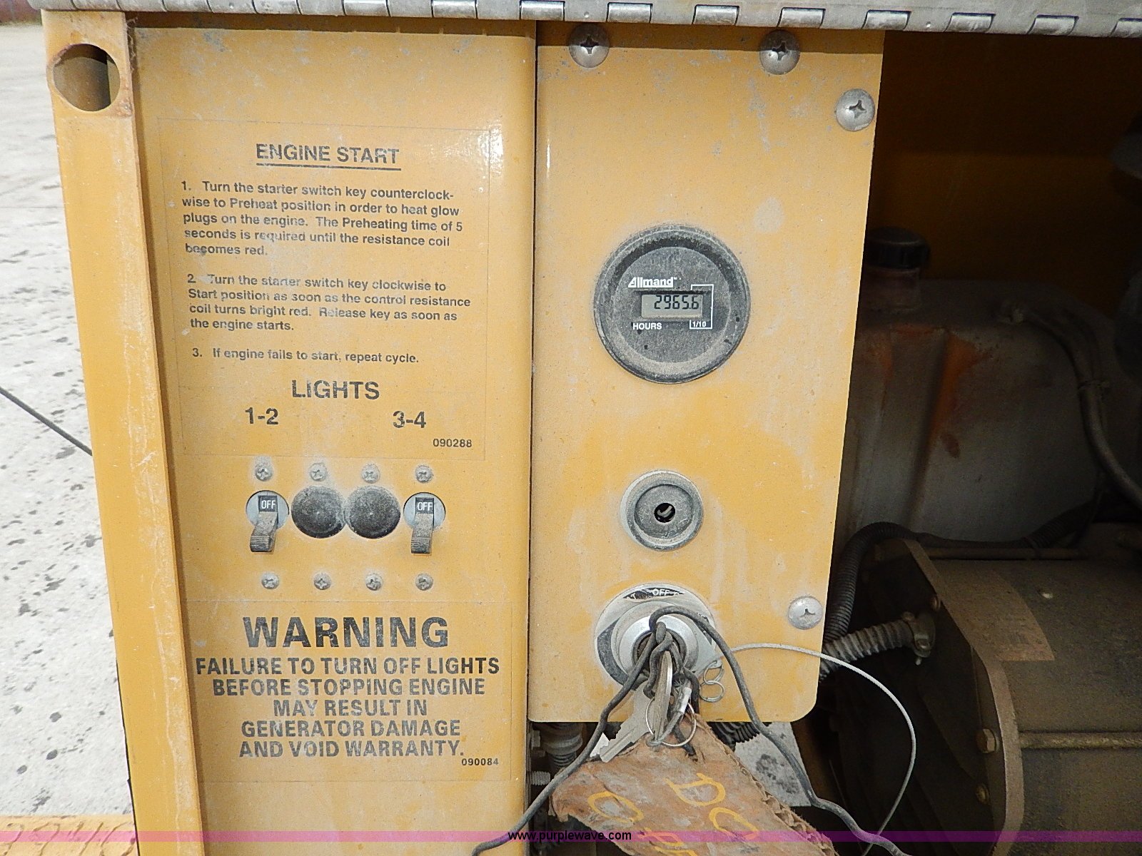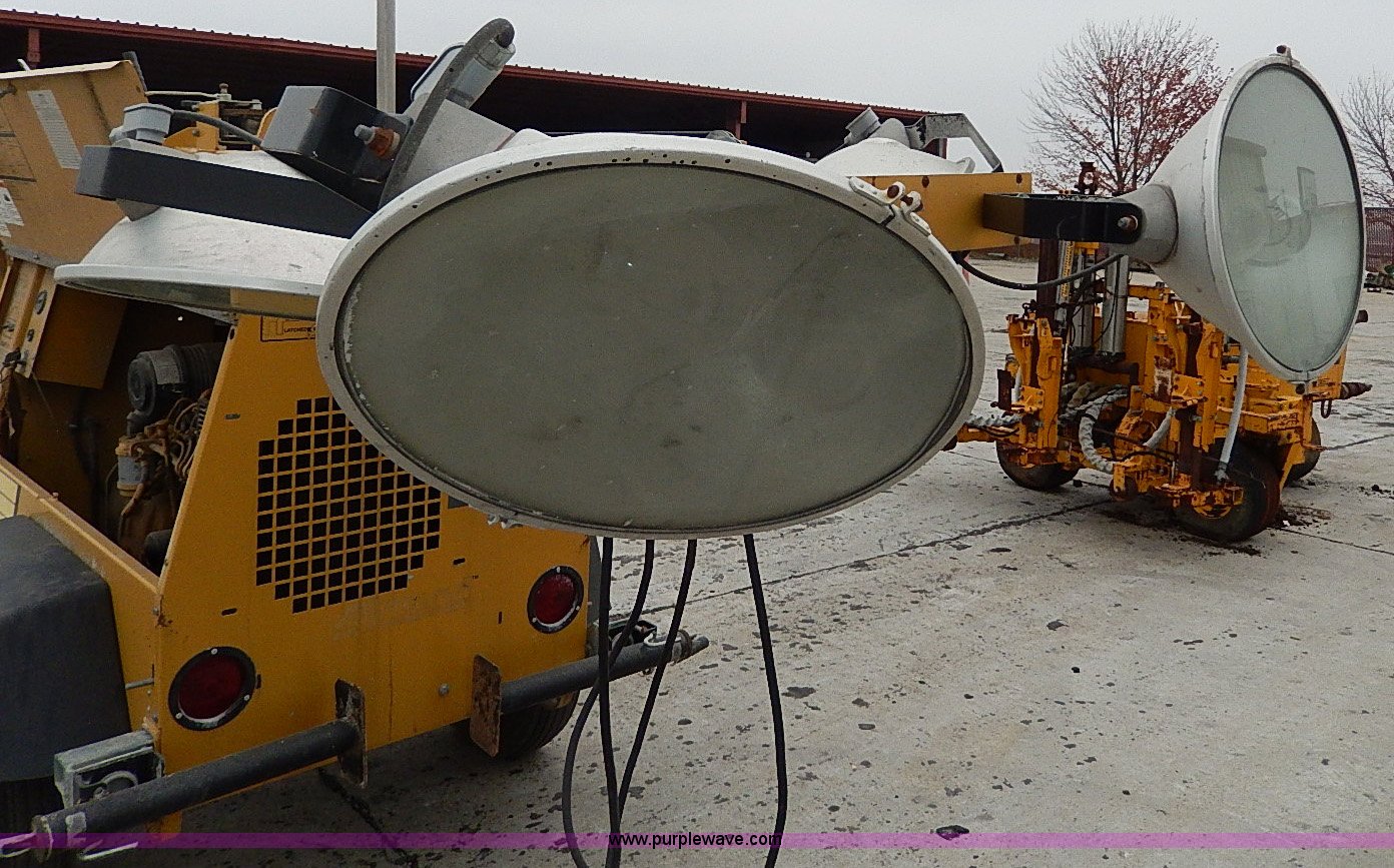 Purple Wave is selling a used Generator Set in Missouri. This item is a Allmand Night-Lite Pro light tower with the following: 2,966 hours on meter, Perkins 103-10 motor, Baldor single phase generator, Manual tower crank, Rear stabilizers, 2" ball hitch, (4) 0,000 watt bulbs, 175/80D13 tires, Unit# 935