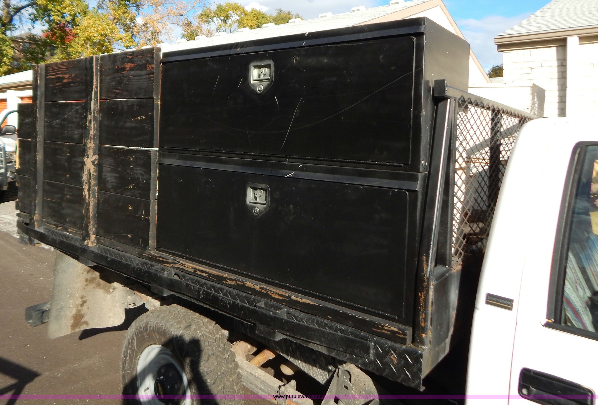 Purple Wave is selling a used Passenger Vehicle in Missouri. This item is a 1990 Chevrolet 2500 dump bed truck with the following: 261,995 miles on odometer, 5.7L V8 OHV 16V gas engine, Automatic transmission, Heat, AM/FM, Manual windows and locks, Cloth interior, 9'L x 86"W dump bed, Wood deck, Side toolboxes, Receiver hitch, Trailer wiring, 245/75R16 tires, Interior/exterior cosmetic damage, Contents of bed and cab are not included