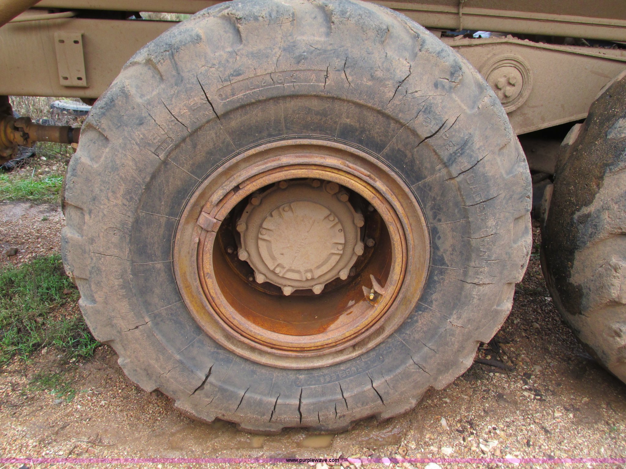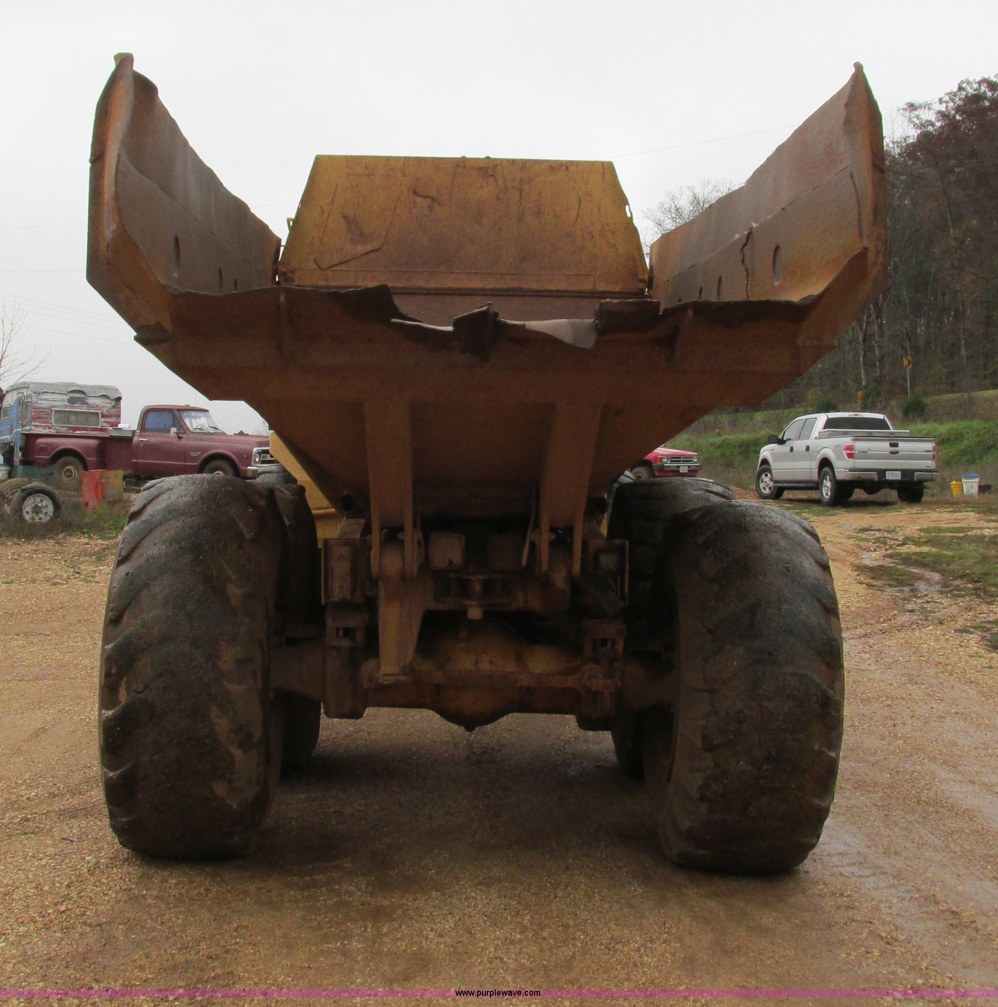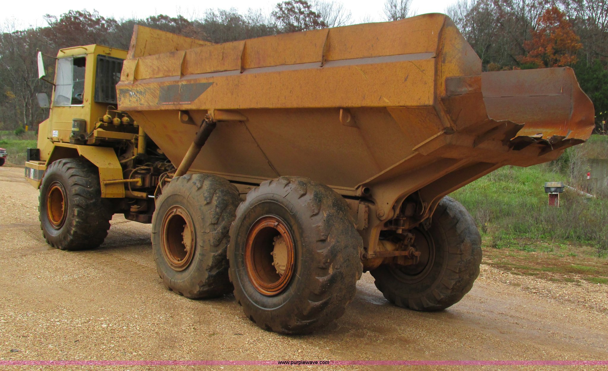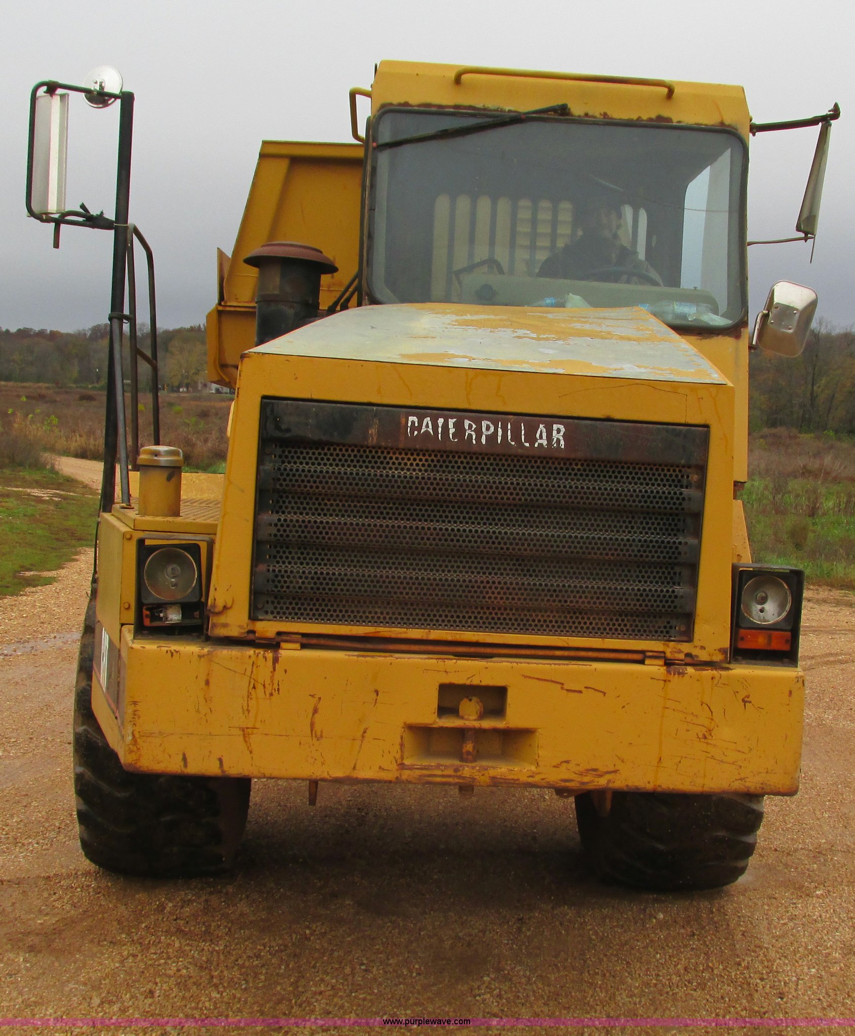 Purple Wave is selling a used Articulated Haul Truck in Missouri. This item is a Caterpillar D250D haul truck with the following: 10,947 hours on meter, Caterpillar 3116 six cylinder diesel engine, Automatic transmission, Spring suspension seat, Articulated hydraulic steering, Twin hoist cylinders, Approx. 16 cu. yd. capacity, 50,264 lbs payload capacity, Caterpillar Superflex suspension, Air acutated brakes, 23.5-25 tires, 38,000 lbs. base operating weight, Interior/exterior cosmetic damage, Windshield cracked, Glass missing, Rust, Non-operational parking brake, Tires cracked, Seat torn, Covers will be installed prior to auction, Serial 4TF037999Y8271