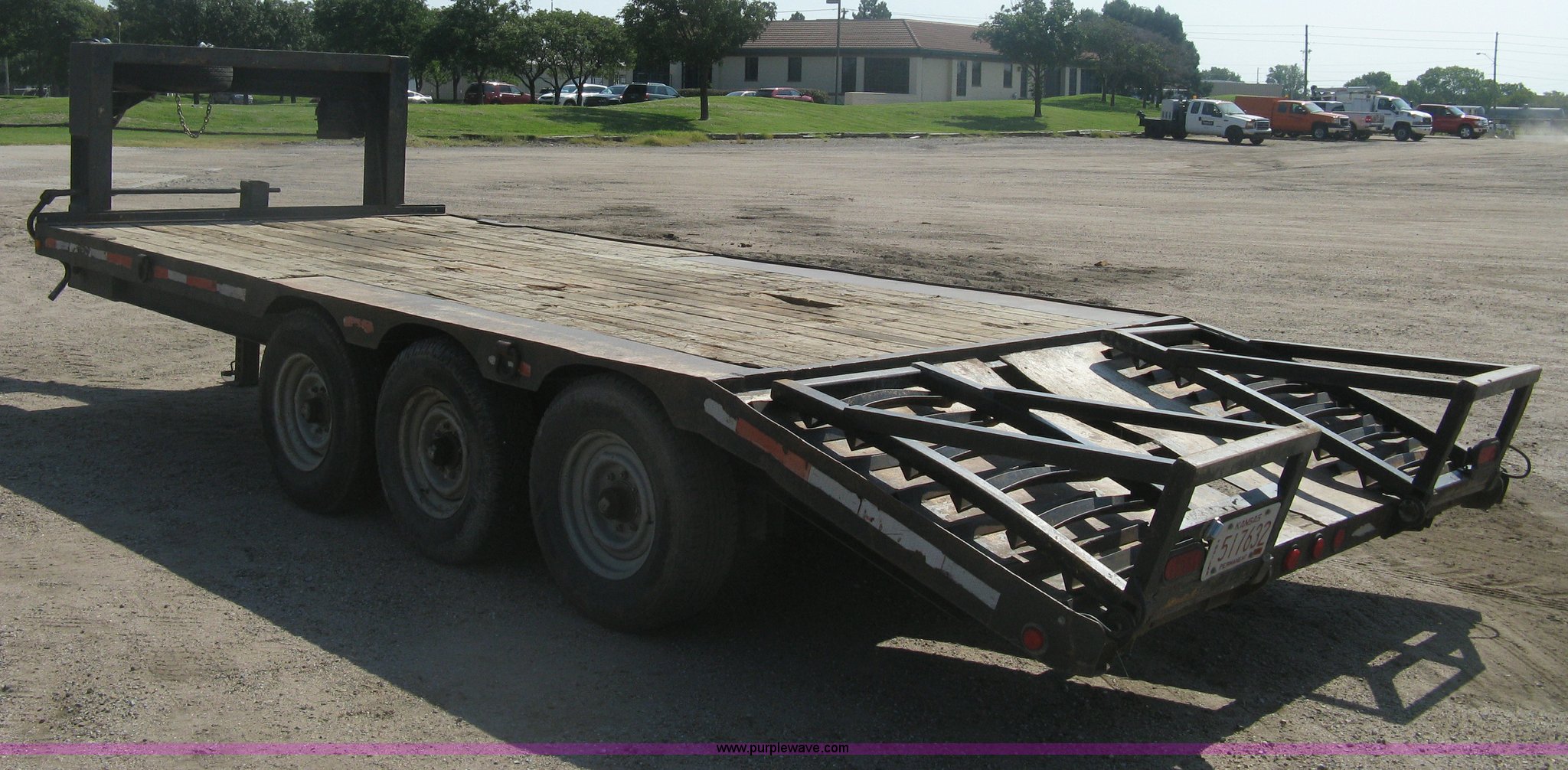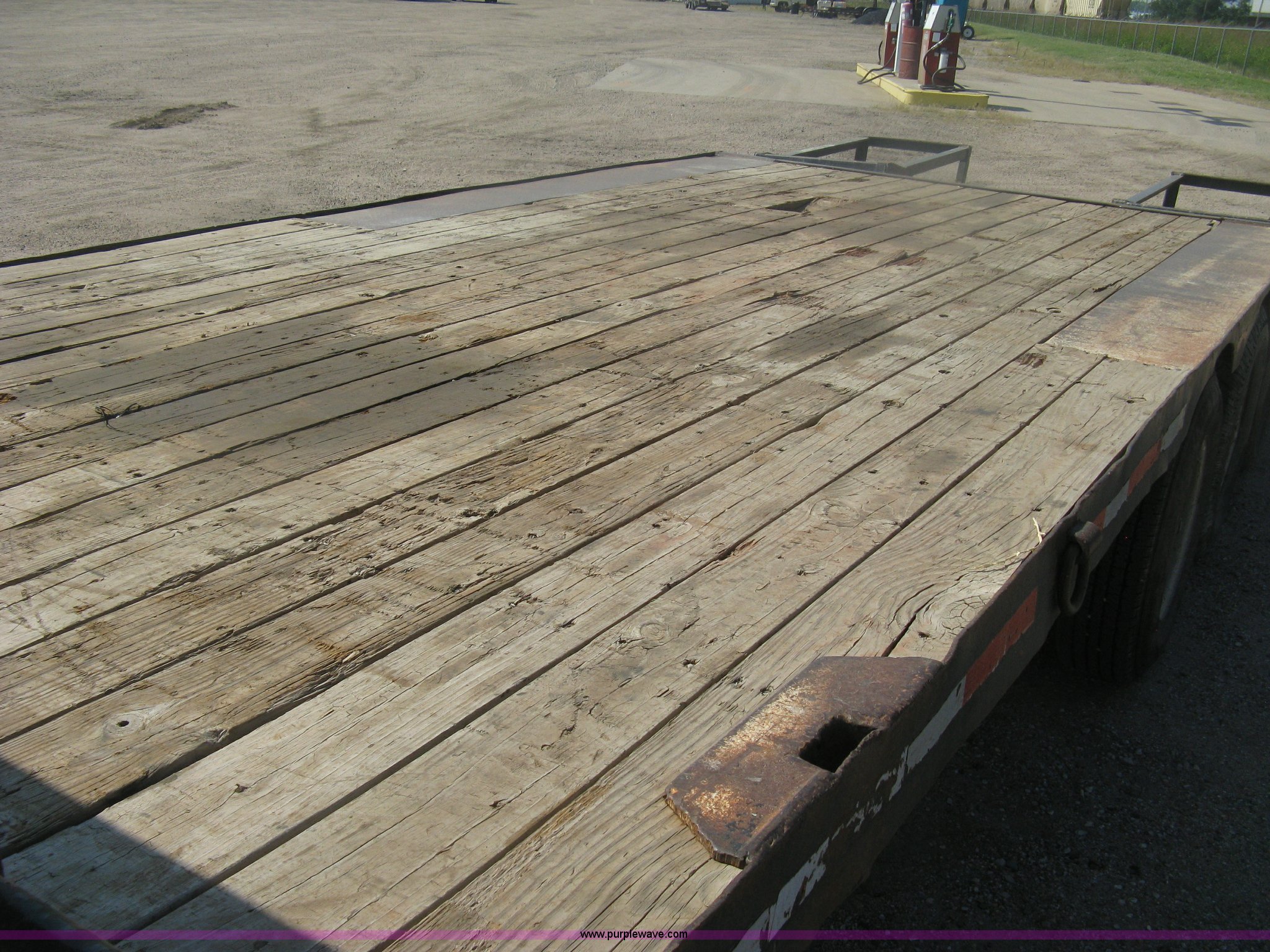 Purple Wave is selling a used Equip. Trailer in Kansas. This item is a 1981 JFW triple axle gooseneck trailer with the following: 16'L x 8'W deck, 4'L steel dovetail, Wood floor, (2) fold up ramps, 48"L x 25"W, (4) D-ring tie downs, Steel wheels, Single post landing gear, Adjustable height hitch, Break-away safety chains, Break-away brake box, Six pin trailer wire plug-in, Shop built gooseneck hitch, originally bumper pull, Eight lug, LT215/85R16 tires, Unit# 15.98