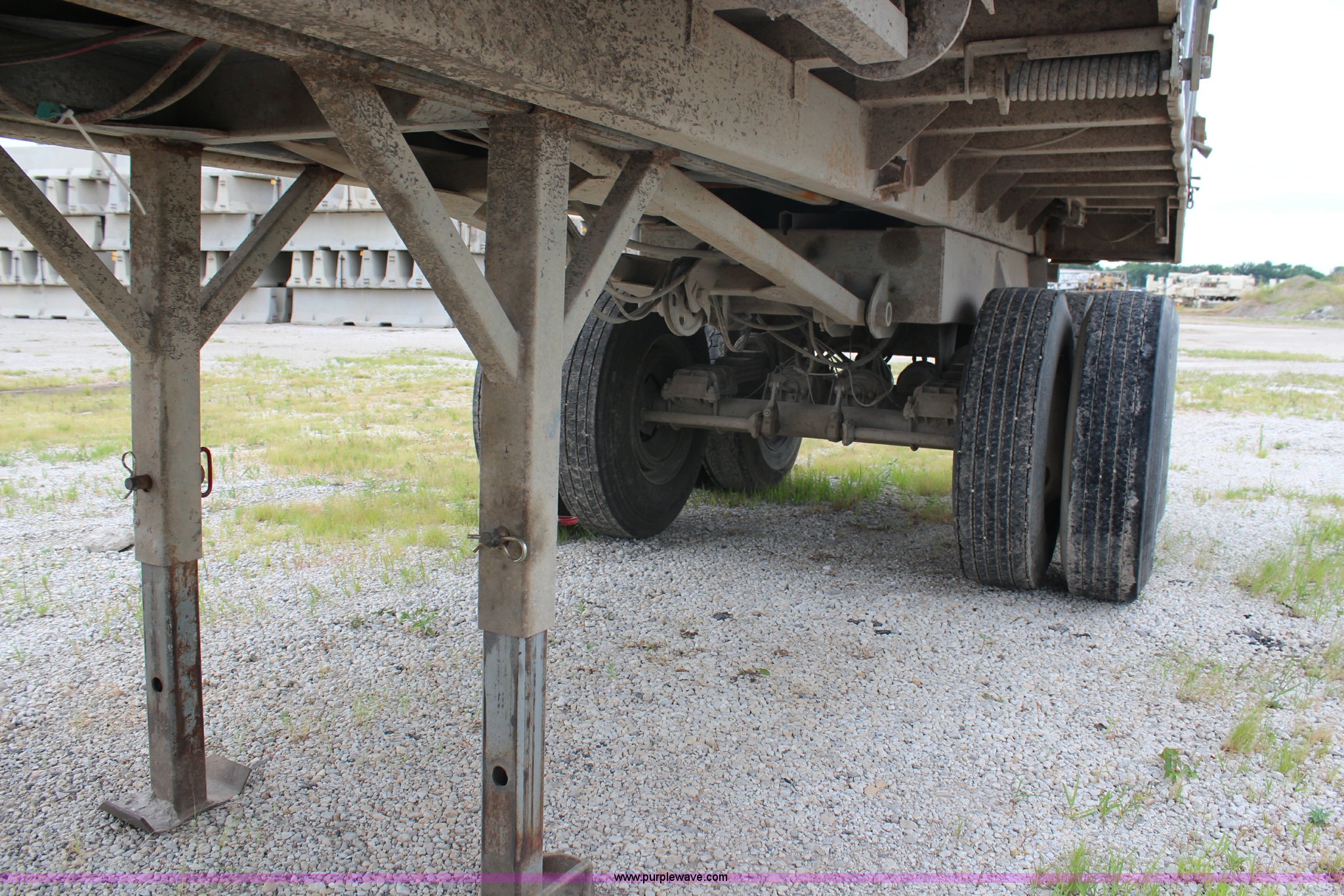 Purple Wave is selling a used End Dump Rock Trailer in Kansas. This item is a 1998 Hilbilt end dump trailer with the following: 24'L, Single ram hoist, Pneumatic tailgate latch, Rollover tarp, Spring suspension, Air brakes, 11R22.5 tires, GVWR 70,000 lbs, GAWR 19,000 lbs