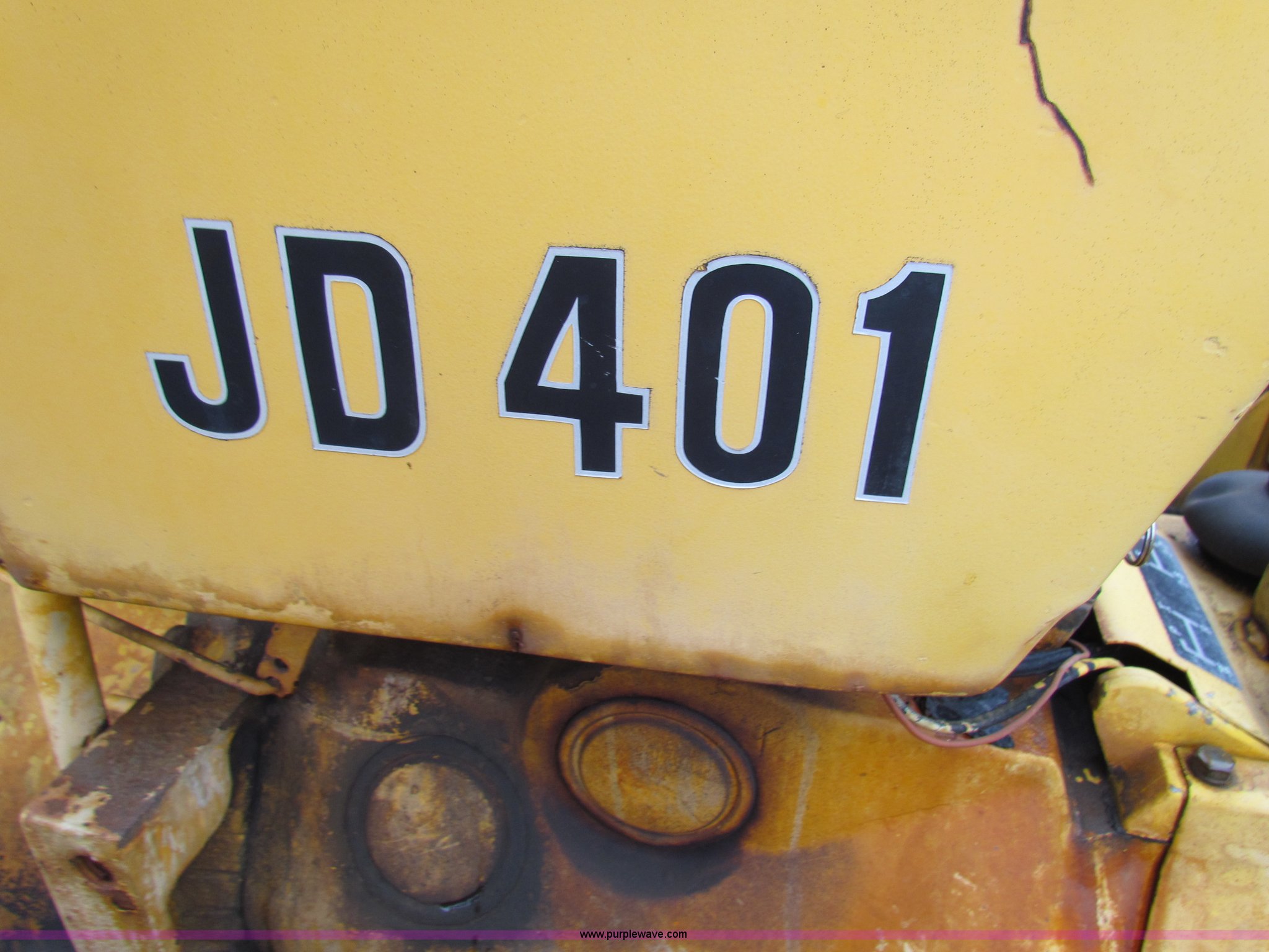 Purple Wave is selling a used Tractor in Oklahoma. This item is a John Deere 401 tractor with the following: 6,099 hours on meter, Four cylinder diesel engine, 8F-1R gears, Loader, Joystick loader control, Three point, 540 PTO, One rear hydraulic remote, 9.5L-15 front tires, 16.9-24 rear tires, Hydraulic leak under seat area, Batteries need replaced, Serial 0080900