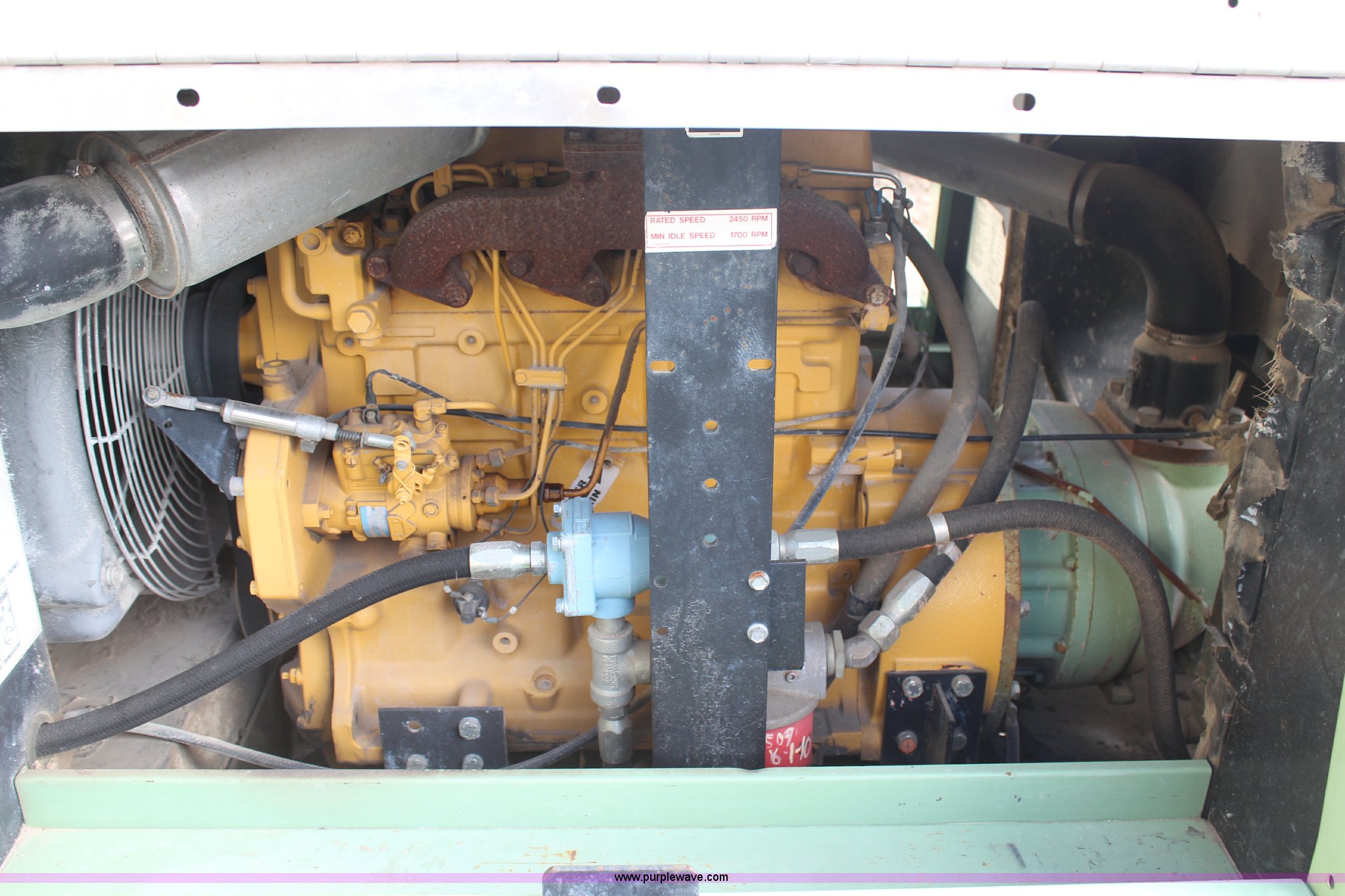 Purple Wave is selling a used Air Compressor in Kansas. This item is a Sullair 250 air compressor with the following: 522 hours on meter, John Deere four cylinder diesel engine, 250 CFM, 125 maximum psi, Pintle hitch, 205/75D14 tires, Missing engine covers, Serial 004133584