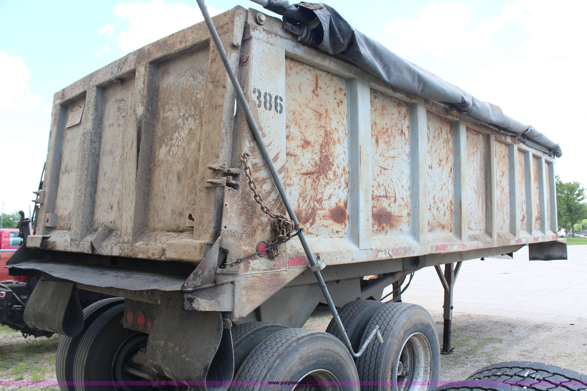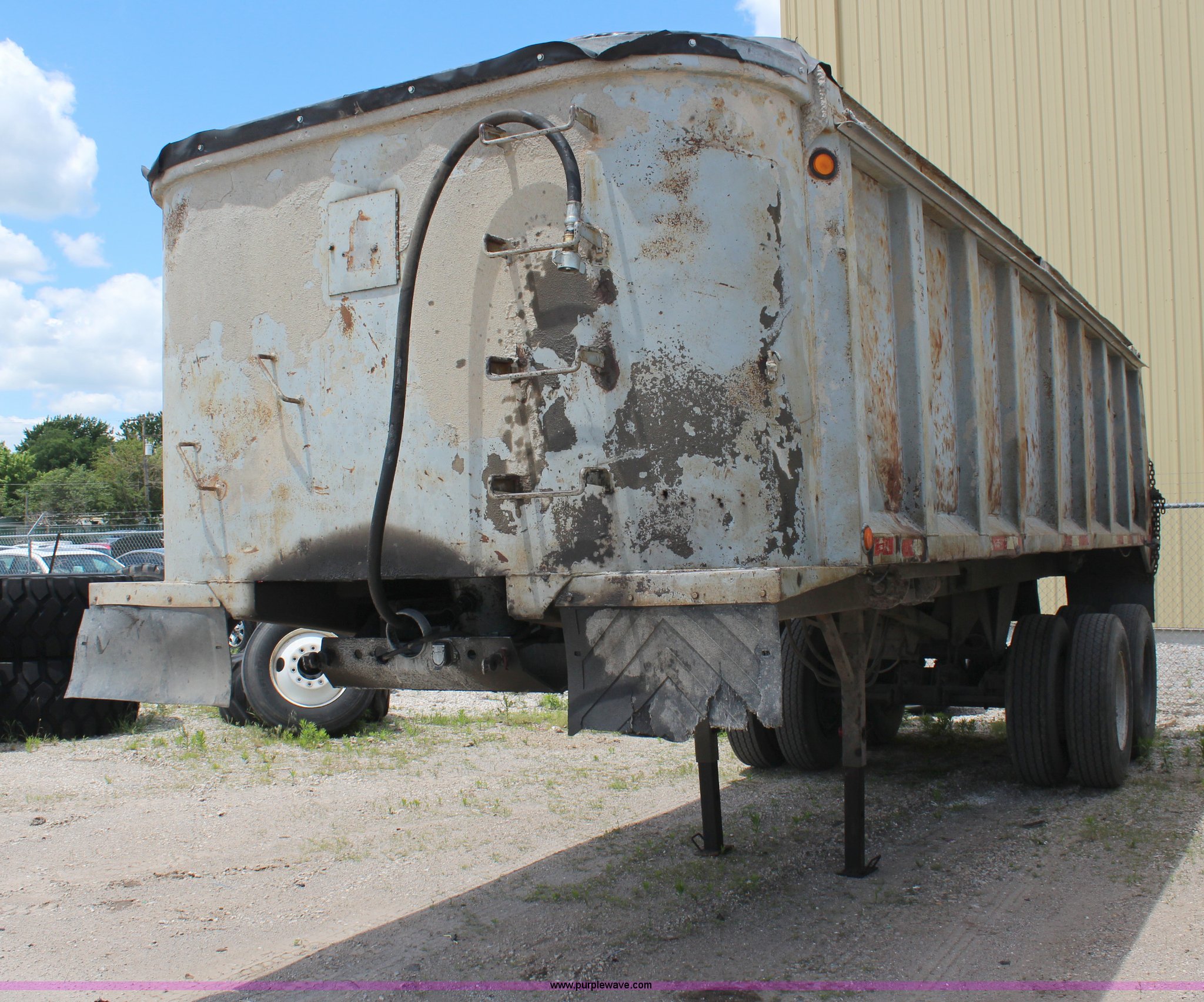 Purple Wave is selling a used End Dump Rock Trailer in Kansas. This item is a 1993 Hilbilt end dump trailer with the following: 24'L, Single ram hoist, Pneumatic tailgate latch, Rollover tarp, Spring suspension, Air brakes, 11R22.5 tires, GVWR 70,000 lbs, GAWR 19,000 lbs