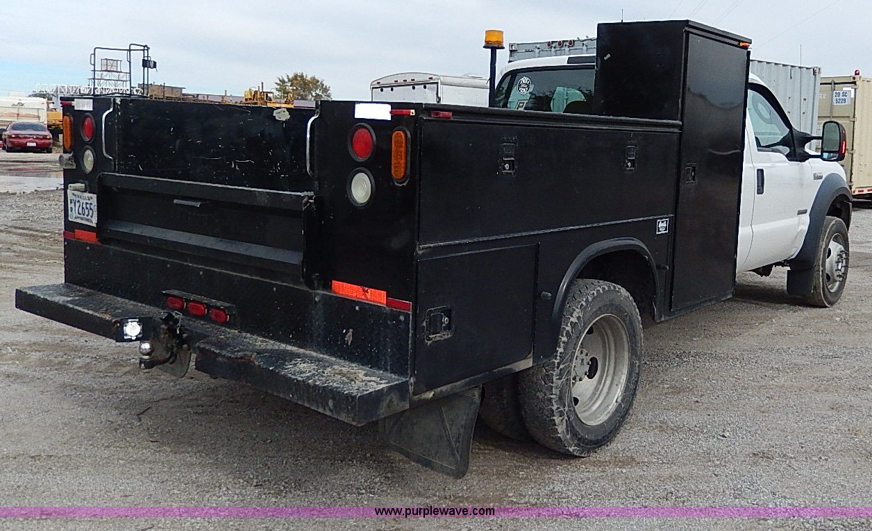 Purple Wave is selling a used Flat Bed Truck in Kansas. This item is a 2006 Ford F450 Super Duty XL SuperCab pickup truck with the following: 206,061 miles on odometer, 6.0L V8 OHV 32V turbo diesel engine, Automatic transmission, AC and heat, Tilt, Cruise, AM/FM, Power windows, locks, and mirrors, Heated mirrors, Cloth interior, Knapheide utility bed, (6) storage compartments, Strobe light, Front tow hooks, Pintle hitch, Trailer wiring, 225/70R19.5 tires, Exterior cosmetic damage, Dents and scratches