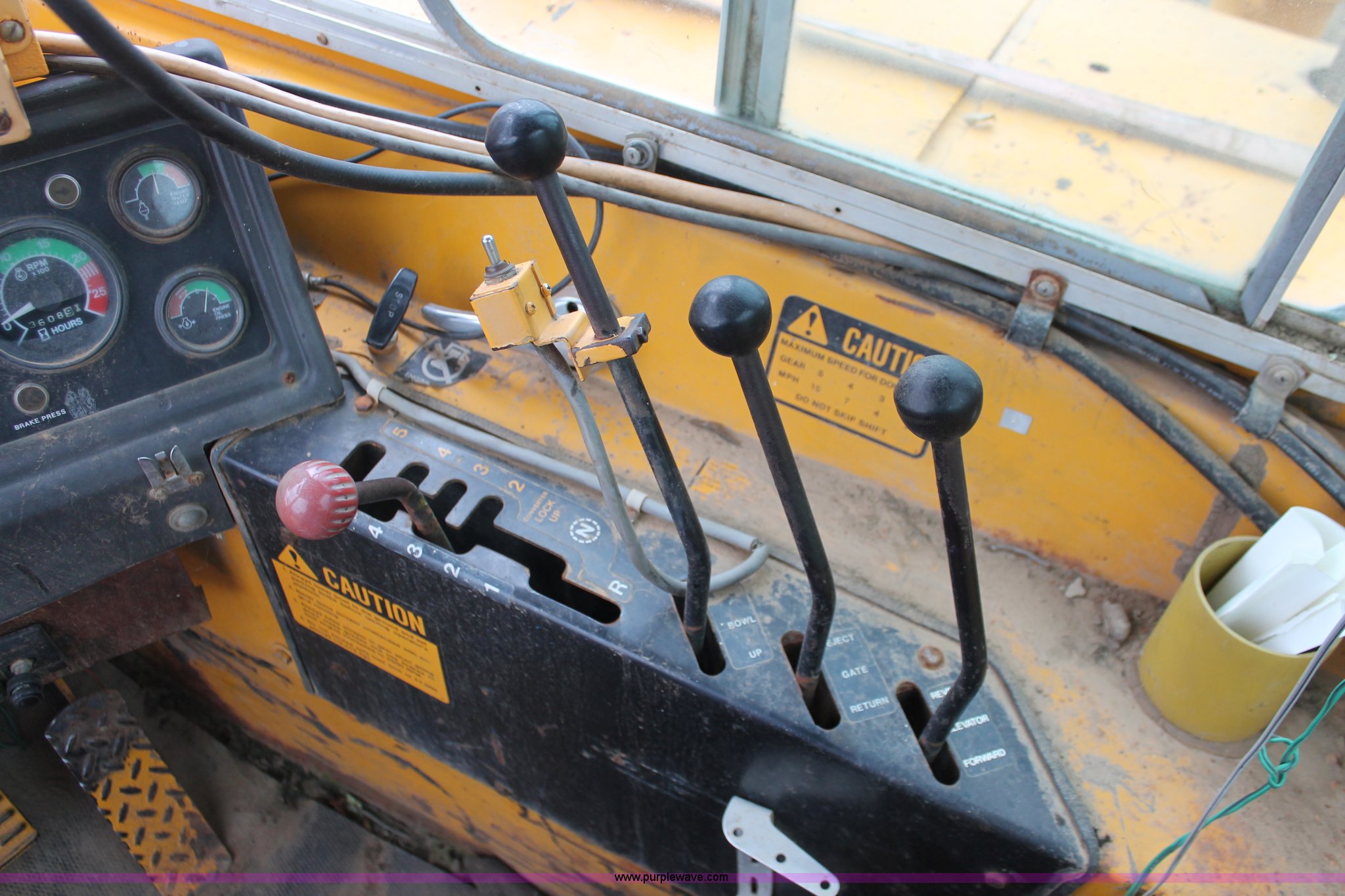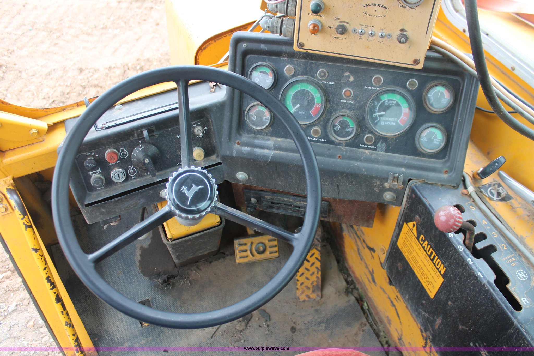 Purple Wave is selling a used Elevating Scraper in Oklahoma. This item is a 1978 John Deere 762 elevating paddle scraper with the following: 3,608 hours on meter, John Deere 6619TT-01 six cylinder diesel engine, Serial 027836RC, 5F-1R gears, Enclosed cab, AC, Unknown operating condition, AM/FM/cassette, Unknown operating condition, Front windshield wiper, Unknown operating condition,, Three stick hydraulic operation, Bowl, Gate, Elevator, Las-ER-Plane indicating control, Front work lights, 66.5"W paddles, 90"W cut, 23.5-25 tires, 34,300 lbs. base operating weight, Front glass missing, Serial 002576T