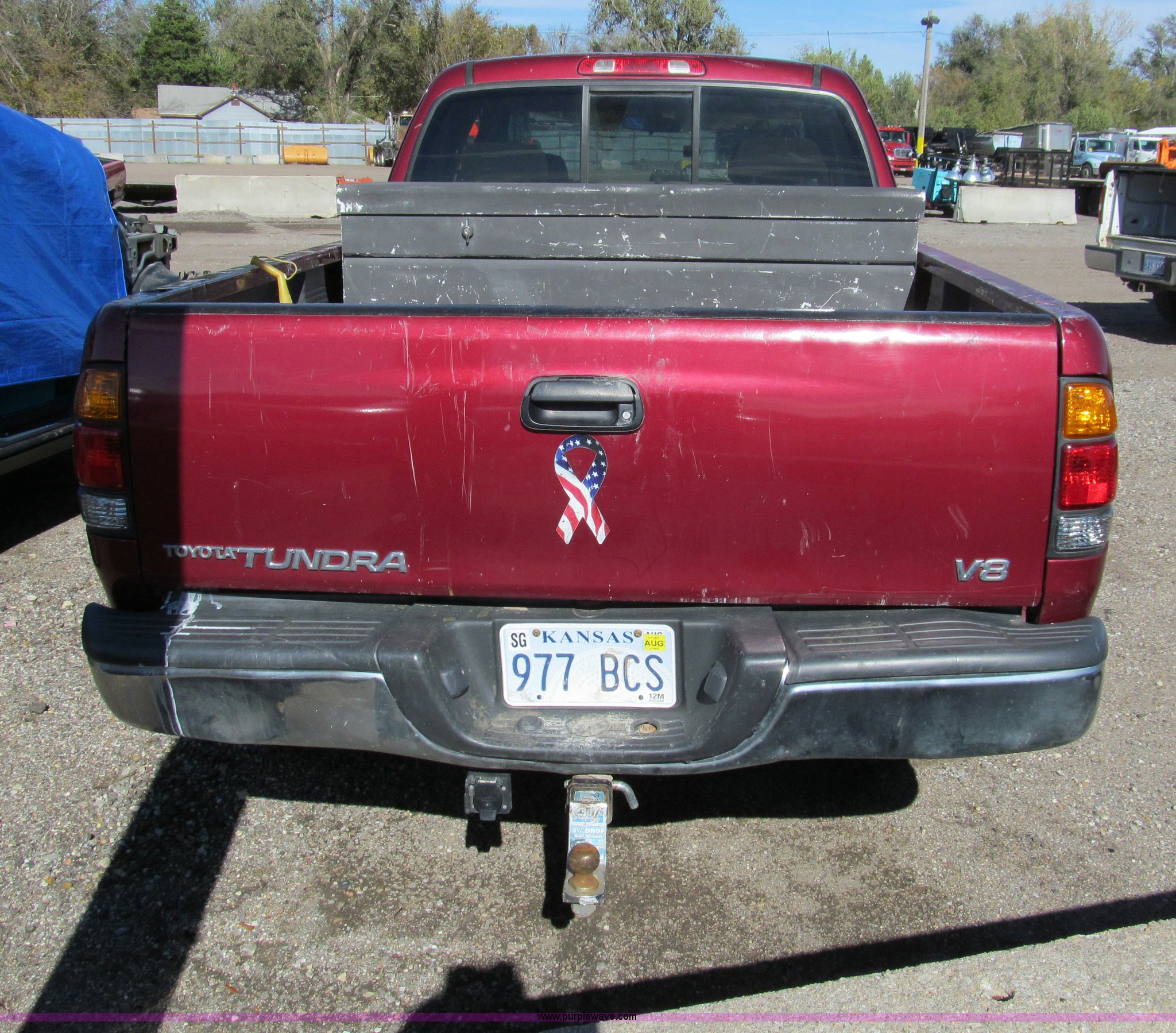 2000 Toyota Tundra SR5 Access Cab pickup truck. Unknown miles on odometer, 4.7L V8 DOHC 32V gas engine, Automatic transmission, AC and heat, AM/FM/cassette, Power windows and locks, Cloth interior, Running boards, Toolbox, Receiver hitch 3 1/4" drop hitch, Trailer wiring, 265/75R16 tires, Windshield cracked, Front bumper damage, Case# 13C518409. Vehicle is abandoned. No additional information is available. Vehicle does not have keys unless notated otherwise in the item listing.. View City Of Wichita Terms for title acquisition and item removal requirements.. 5TBRT3411YS077450. Ken's Auto Tow. 3730 South Broadway. Wichita, KS 67216