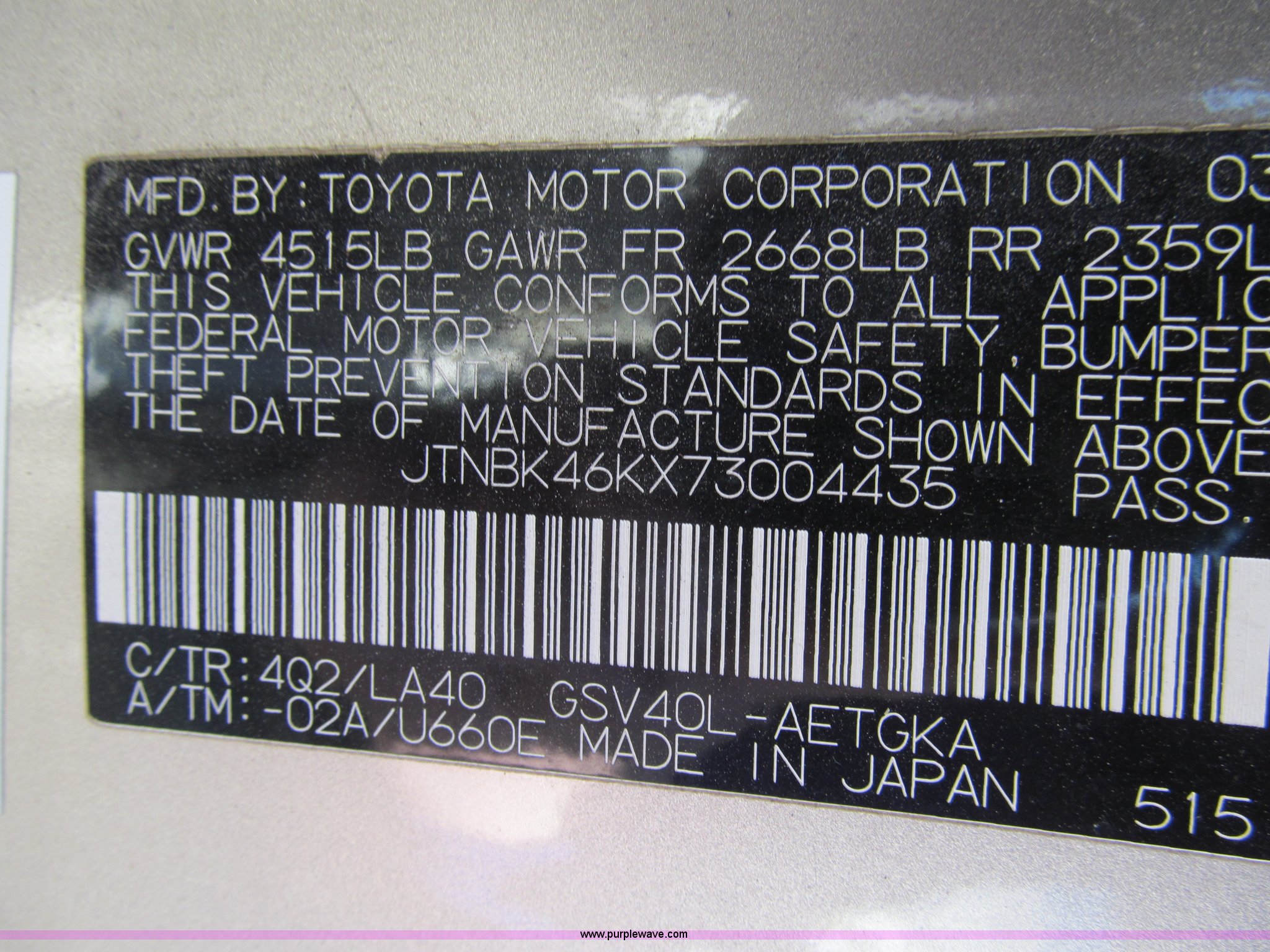 2007 Toyota Camry LE. Unknown miles on odometer, 3.5L V6 DOHC 24V gas engine, Automatic transmission, AC and heat, Tilt, Cruise, AM/FM/CD, Power windows, locks, mirrors, and seats, Heated seats, Leather interior, Sunroof, Keys, 215/60R16 tires, Front bumper damage, Case# 13C59797. Vehicle is abandoned. No additional information is available. Vehicle does not have keys unless notated otherwise in the item listing.. View City Of Wichita Terms for title acquisition and item removal requirements.. JTNBK46KX73004435. Ken's Auto Tow. 3730 South Broadway. Wichita, KS 67216