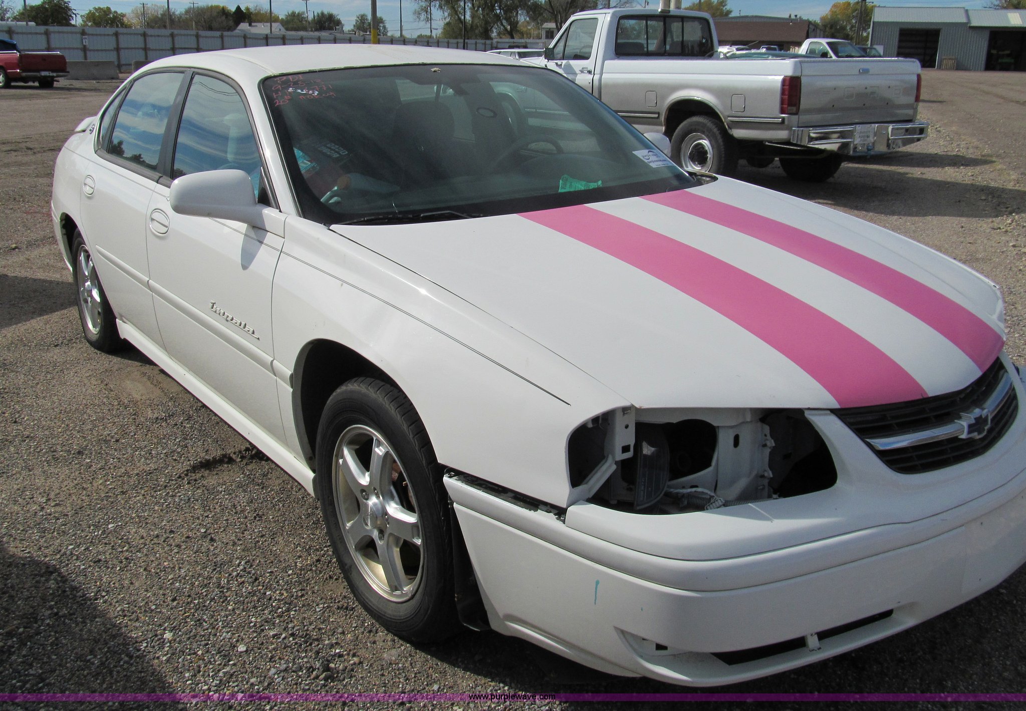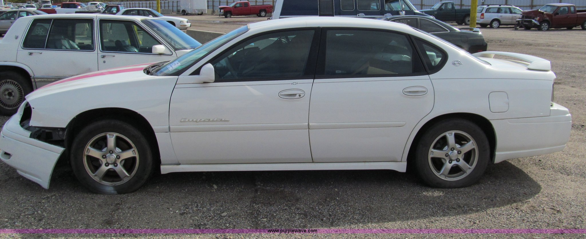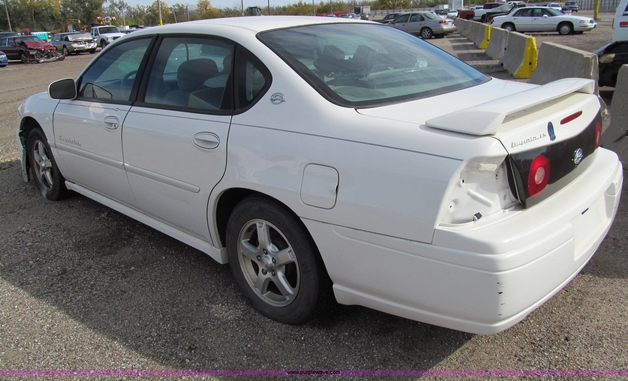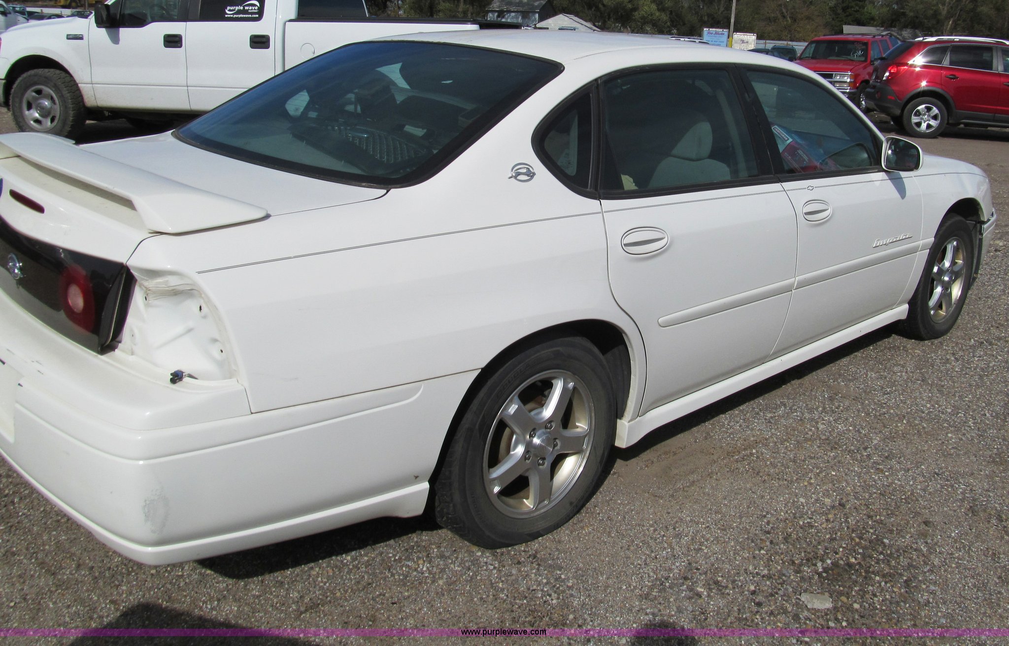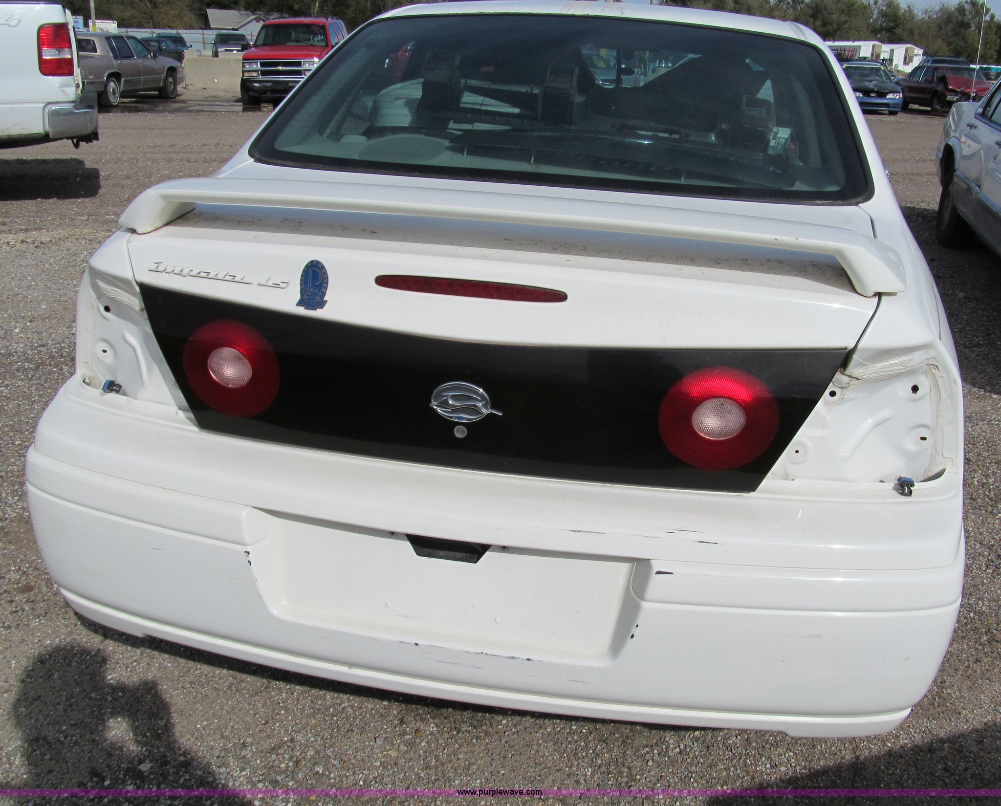 Purple Wave is selling a used Wrecked and Abandoned in Kansas. This item is a 2004 Chevrolet Impala LS with the following: Unknown miles on odometer, 3.8L V6 OHV 12V gas engine, Automatic transmission, AC and heat, Tilt, Cruise, AM/FM/CD, Power windows, locks, mirrors, and seats, Cloth interior, 225/60R16 tires, Windshield cracked, Headlight and taillights removed, Front bumper damage, Case# 13C64369