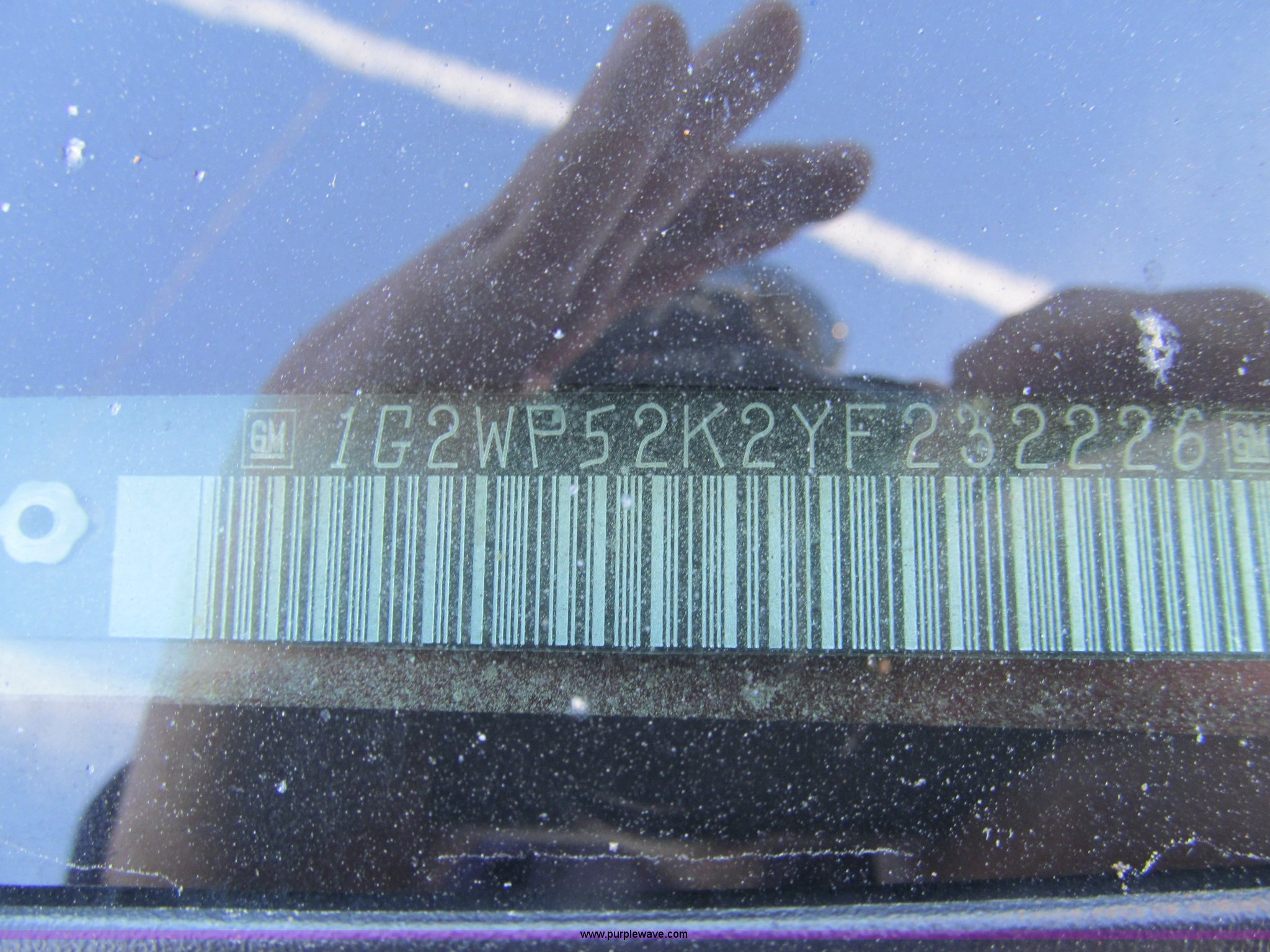 2000 Pontiac Grand Prix GT. 198,305 miles on odometer, 3.8L V6 OHV 12V gas engine, Automatic transmission, AC and heat, Tilt, AM/FM, Power windows and locks, Cloth interior, 225/60R16 tires, Rear wheel and axle damage, Interior/exterior cosmetic damage, Case# 13C59158. Vehicle is abandoned. No additional information is available. Vehicle does not have keys unless notated otherwise in the item listing.. View City Of Wichita Terms for title acquisition and item removal requirements.. 1G2WP52K2YF232226. Bud Roat Towing. 310 N Handley. Wichita, KS 67216