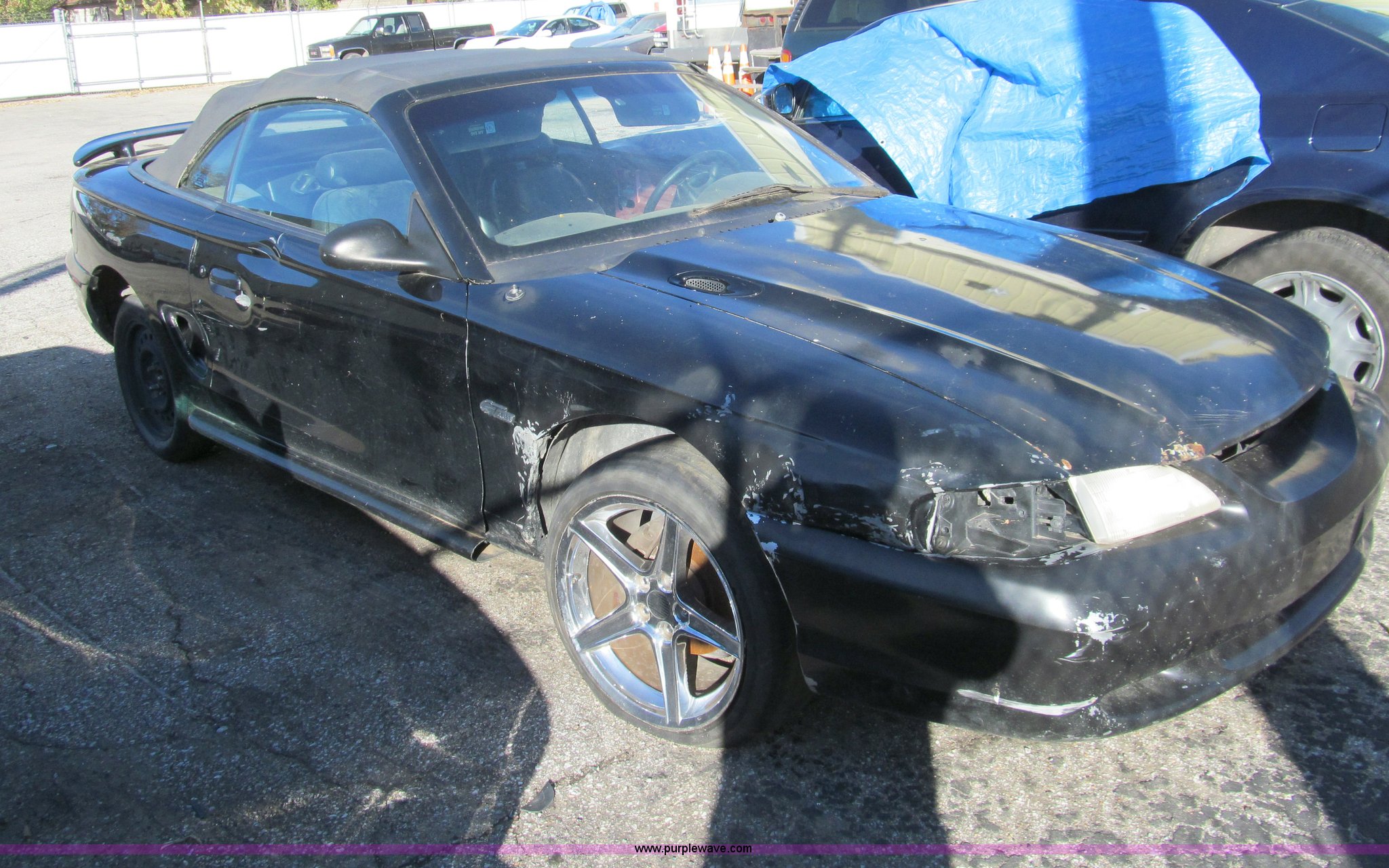 Purple Wave is selling a used Wrecked and Abandoned in Kansas. This item is a 1998 Ford Mustang GT with the following: 154,409 miles on odometer, 4.6L V8 SOHC 16V gas engine, Four speed manual transmission, Tilt, Power windows and locks, Leather interior, Convertible, Keys, 245/40R18 tires, Missing front left headlight, Interior/exterior cosmetic damage, Case# 13C060762