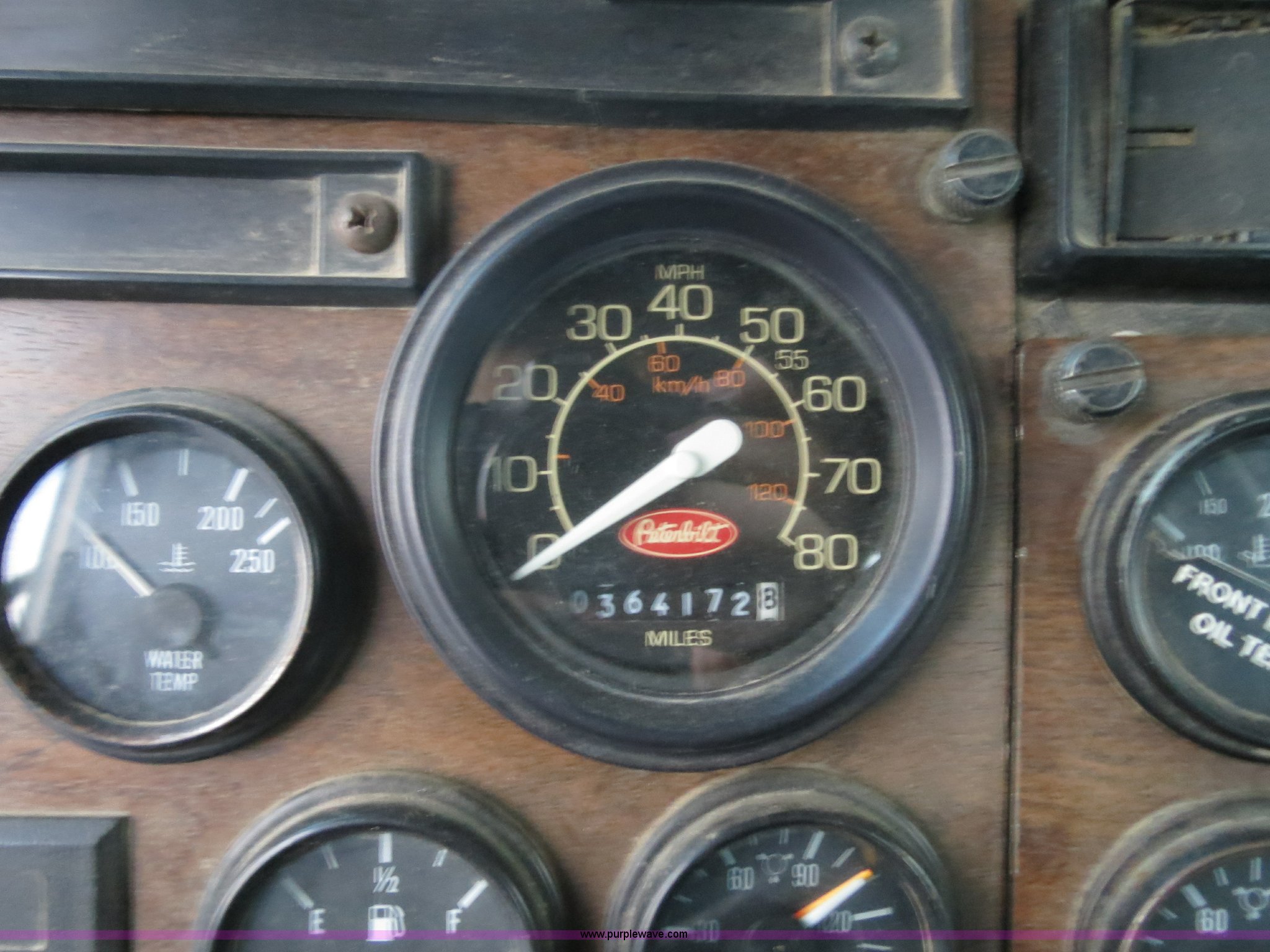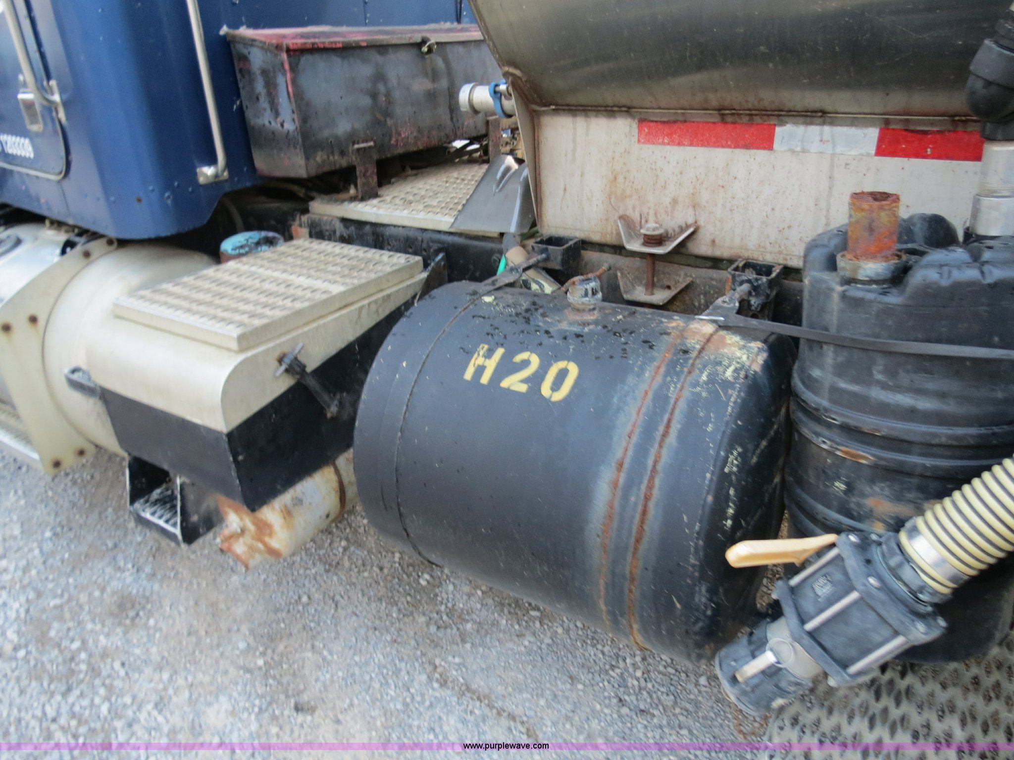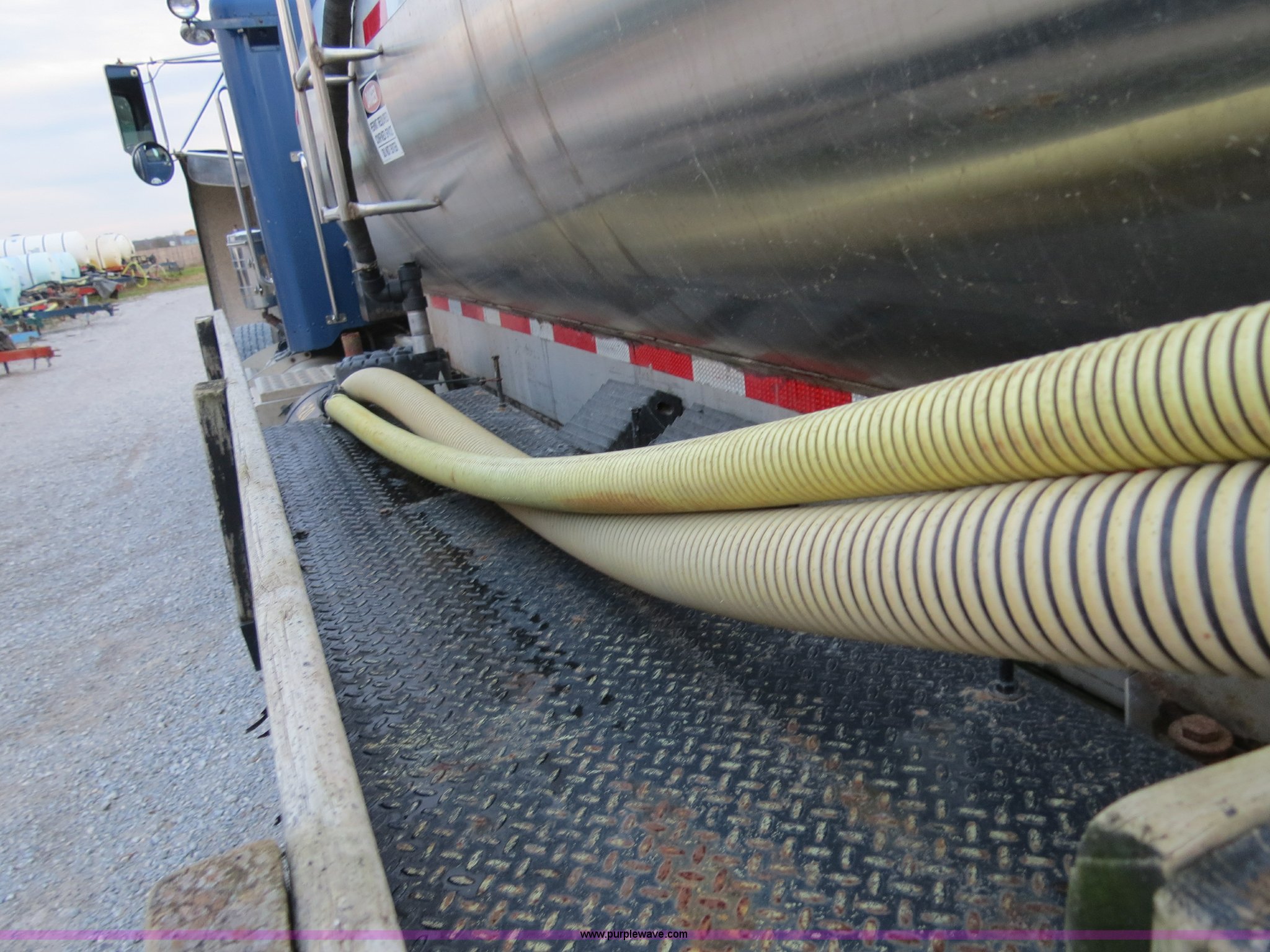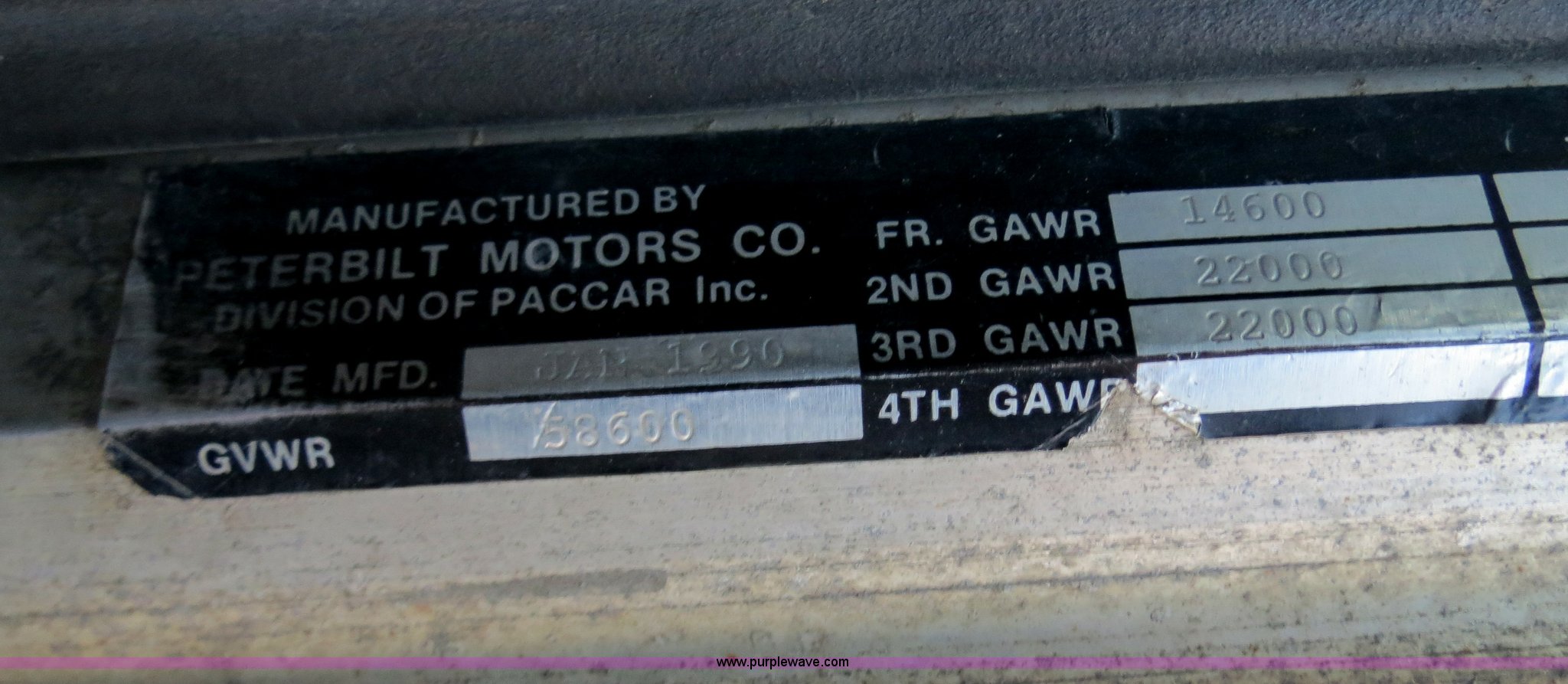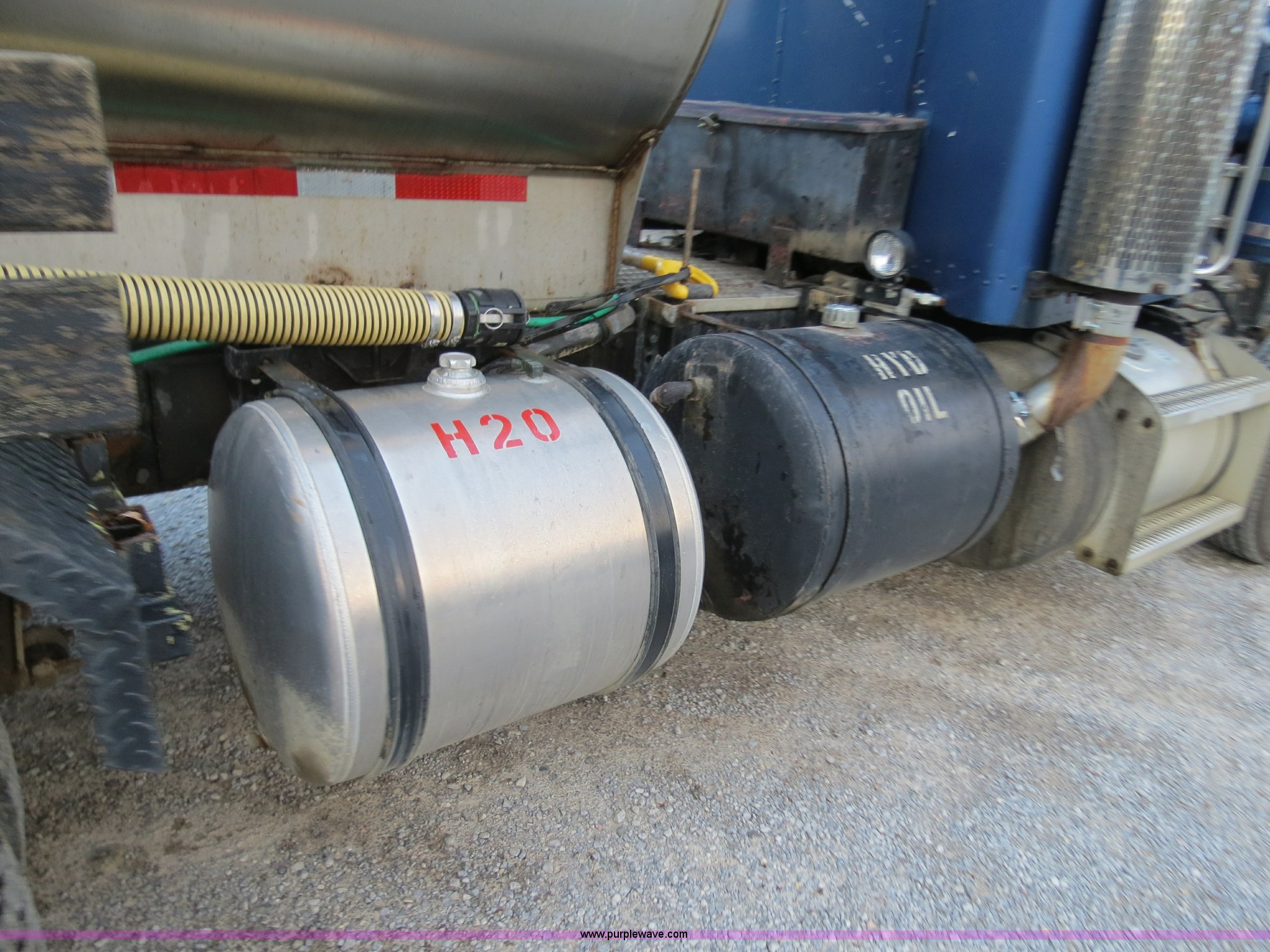 Purple Wave is selling a used Tank Truck or Water Truck in Michigan. This item is a 1990 Peterbilt 379 nurse truck with the following: 364,172 miles on odometer, Cummins NT 14.0L L6 turbo diesel engine, Eaton Fuller Road Ranger 13 speed manual transmission, AC and heat, AM/FM, Passenger daylight door, Air suspension seat, Passenger side power window, Heated mirrors, Spotlight, 2,000 gallon stainless steel tank, (2) rear 4" quick coupler, 4" hose with quick coupler, 2" hose with quick coupler, Side access ladder, Top load, Side walk platforms, Chrome bumper, Dual fuel tanks, Single rear exhaust stack, Aluminum deck plate, PTO, Wet kit, Air suspension, Air brakes, Jake brake, Aluminum front wheels, 315/80R22.5 front tires, Dayton 285/75R24.5 rear tires, GVWR 58,600 lbs, FAWR 14,600 lbs, IAWR 22,000 lbs, RAWR 22,000 lbs
