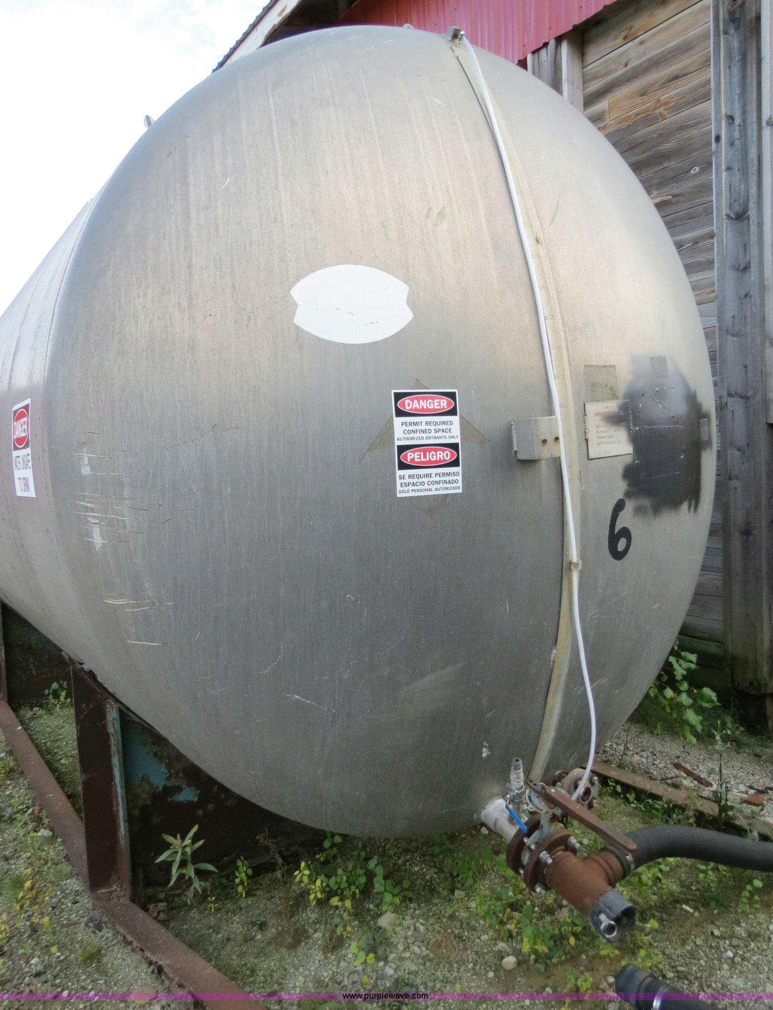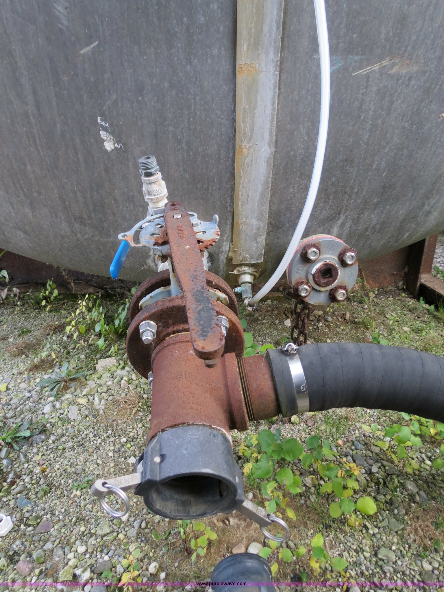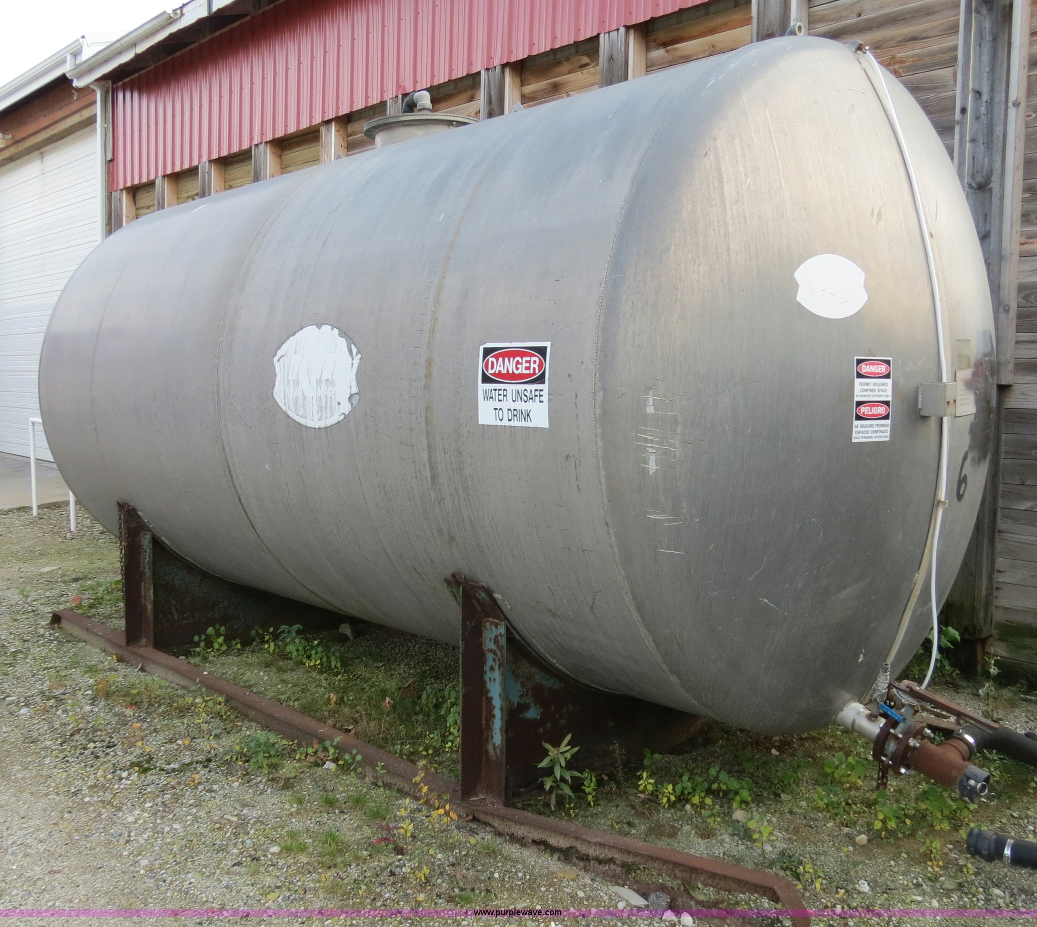6,000 gallon steel tank. 16'L, Appox. 8'W diameter, Shut-off valves, 4" quick couplers, Used for water. Crop Production Services - St. Johns. 208 W Railroad St. St. Johns, MI 48879