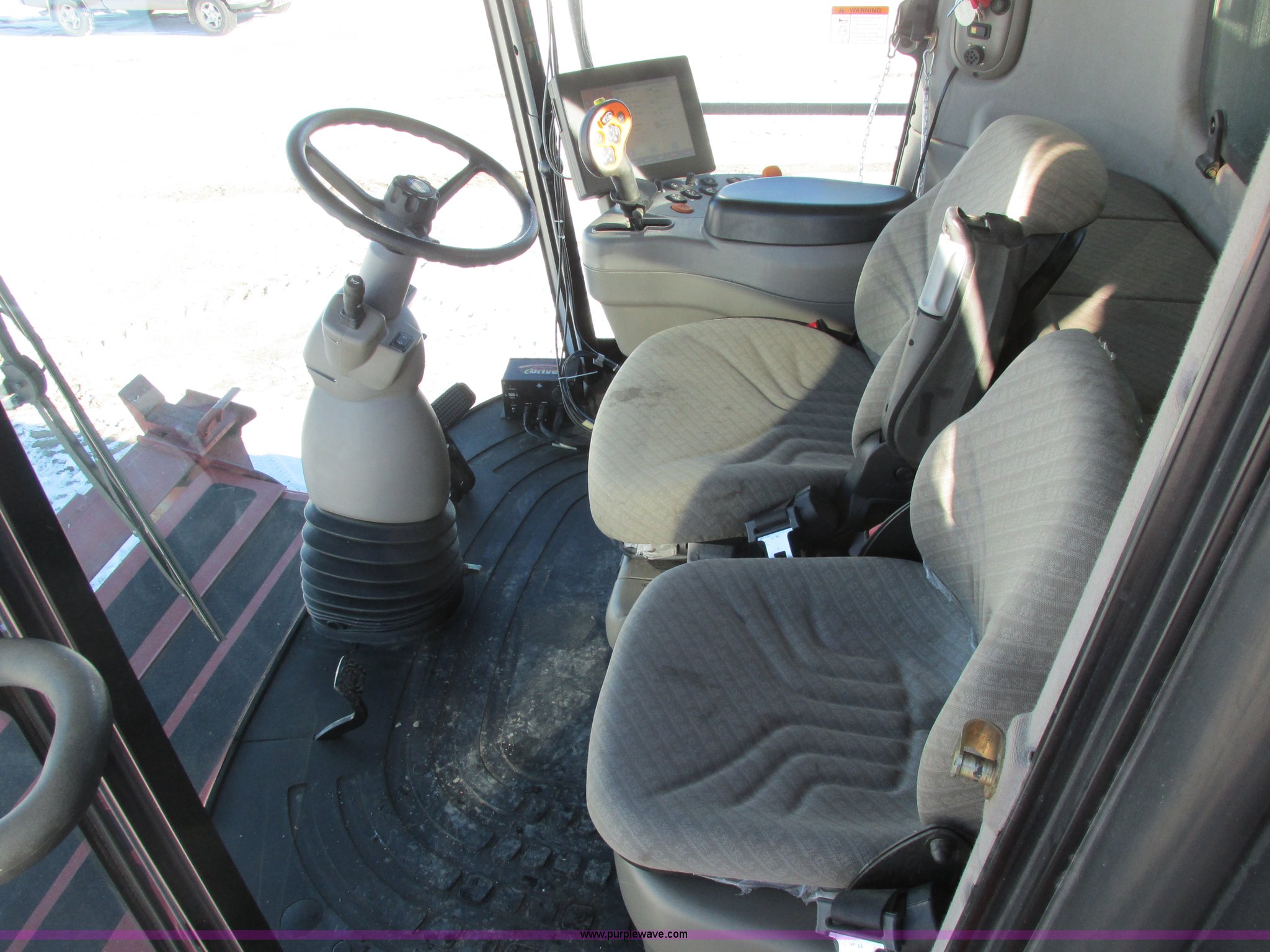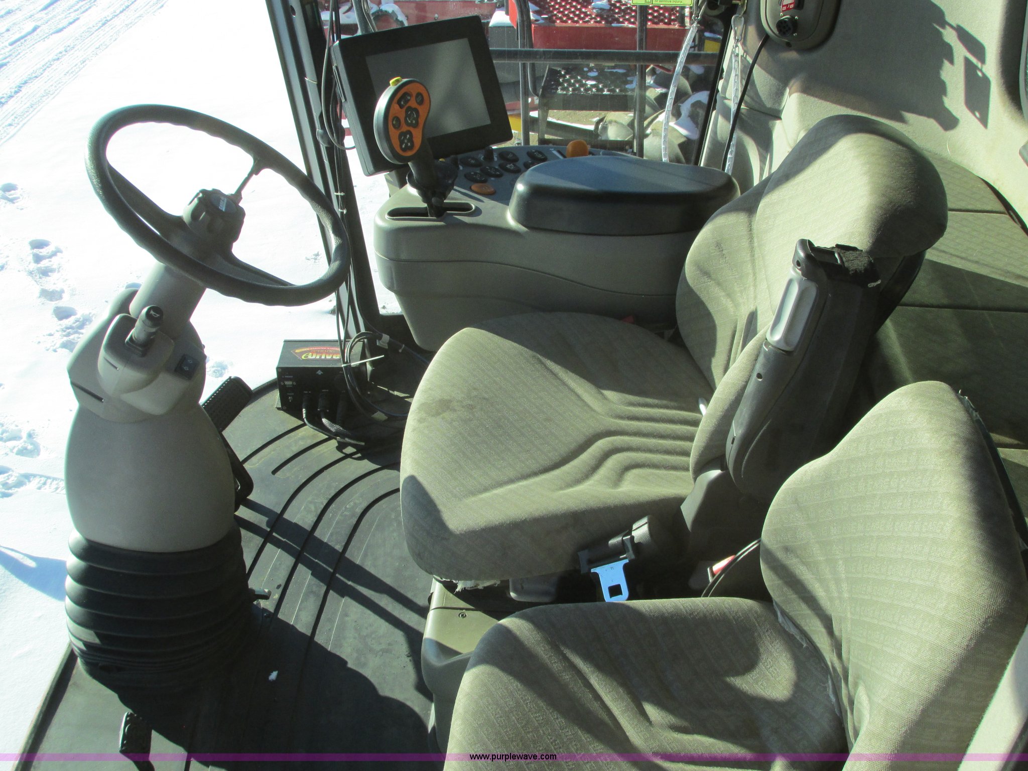 Purple Wave is selling a used Combine in North Dakota. This item is a 2005 Case IH 8010 combine with the following: 1,866 engine hours on meter, 1,486 separator hours on meter, Case six cylinder diesel engine, 425 HP, Hydrostatic transmission, 4F-4R gears, AC and heat, AM/FM, Air suspension seat, Instructor's seat, Tilt steering wheel, Yield monitor, Outback Auto Steer GPS, AFS Pro 600 monitor, Work lights, Bin extension, Feeder house reverser, Two speed rotor, Single point hookup, 350 bushel bin capacity, 20.8R42 drive tires, 600/65R28 rear tires, Radial tires, Serial HAJ106070