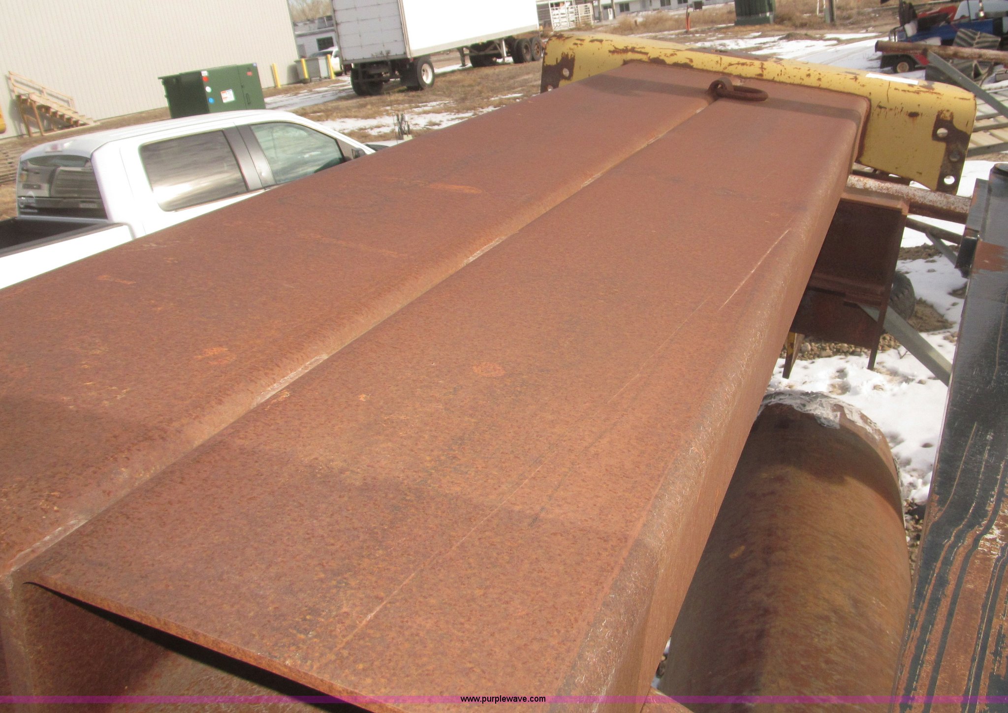 Purple Wave is selling a used Scraper Attach. in Nebraska. This item is a Noble scraper hitch fifth wheel mounted adapter with the following: 7'L x 24"W x 6"D steel rectangular tubing, Lifting eye, Fits Case IH STX tractor, Removed from John Deere tractor prior to mounting on fifth wheel adapter for semi truck use