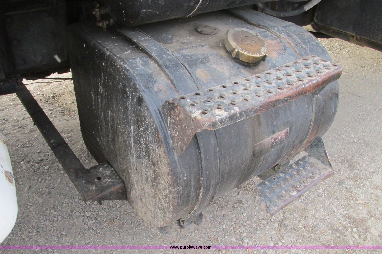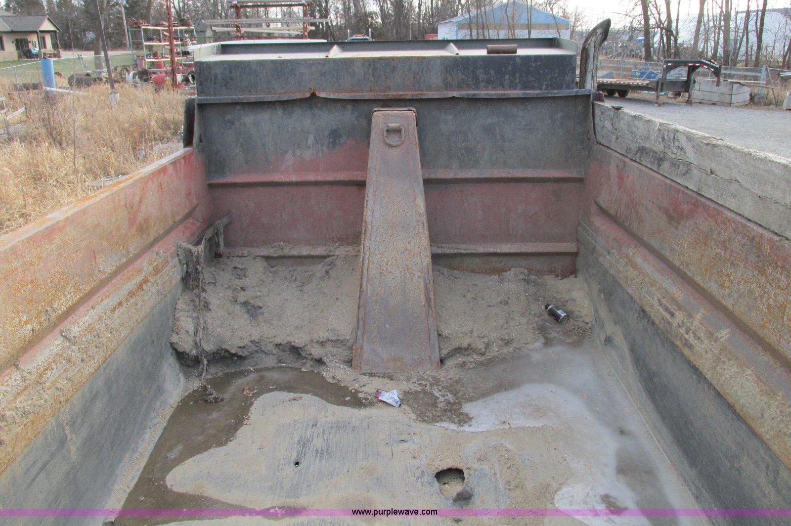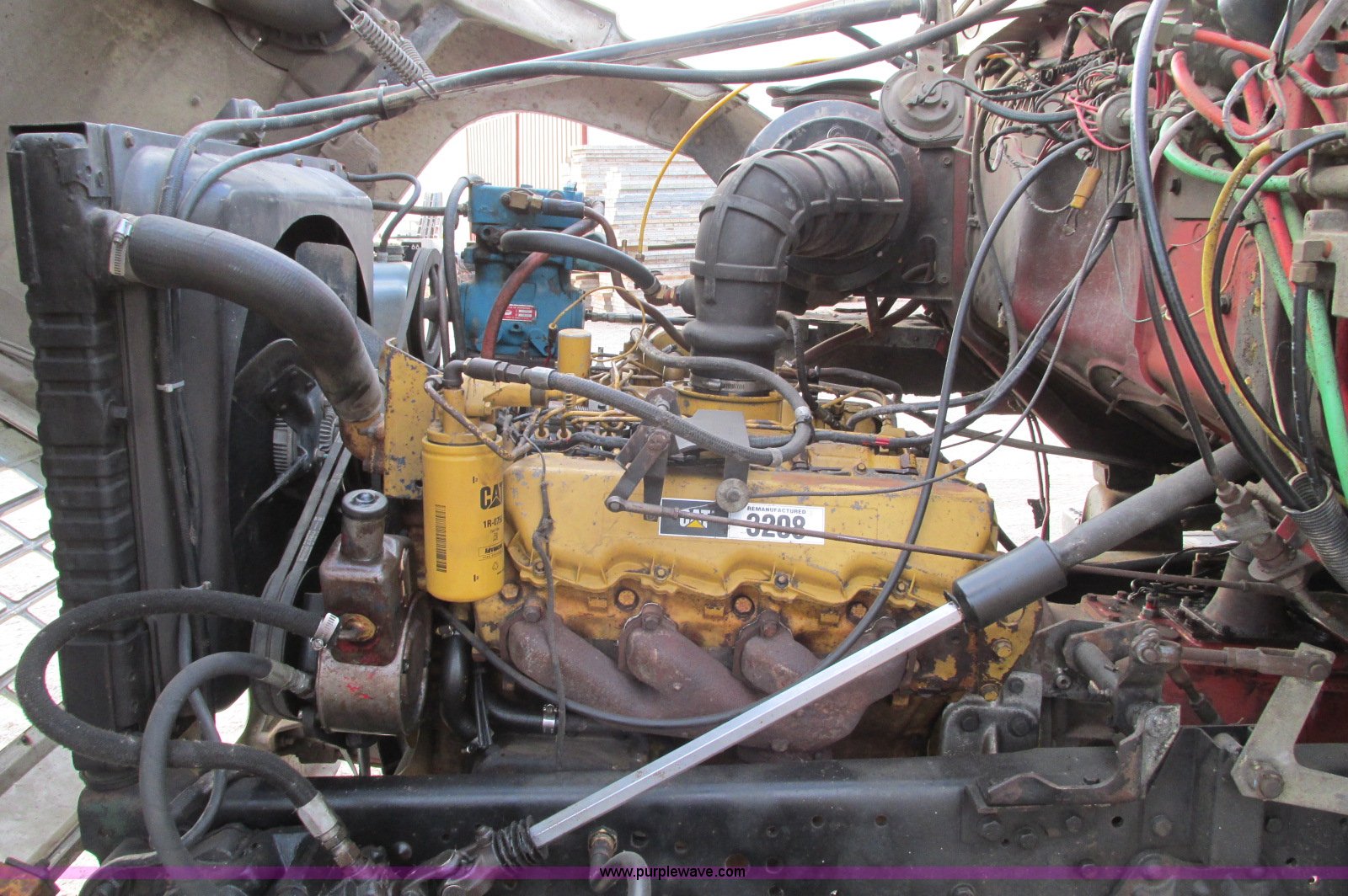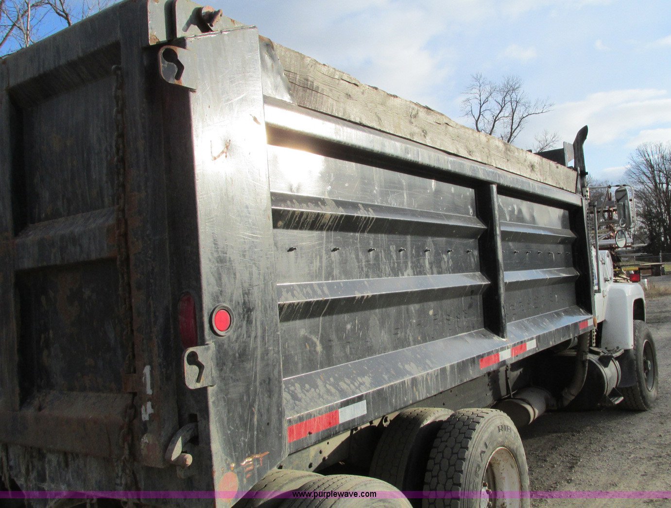 Purple Wave is selling a used Construction Dump Truck in Minnesota. This item is a 1984 Ford LT8000 dump truck with the following: 432,522 actual miles, Caterpillar 3208 10.4L V8 diesel engine, Road Ranger 13 speed manual transmission, Heat, AM/FM/cassette, Air suspension seat, Crysteel 15' dump bed, Air end gate, Block heater, Trailer wiring, Pintle hitch, Dual 60 gallon fuel tanks, Muncie PTO, Air suspension, Air brakes, 212" wheelbase, 385/65R22.5 tires, GVWR 50,000 lbs, Board missing on driver's side of box, Dump box liner damaged, Trailer not included