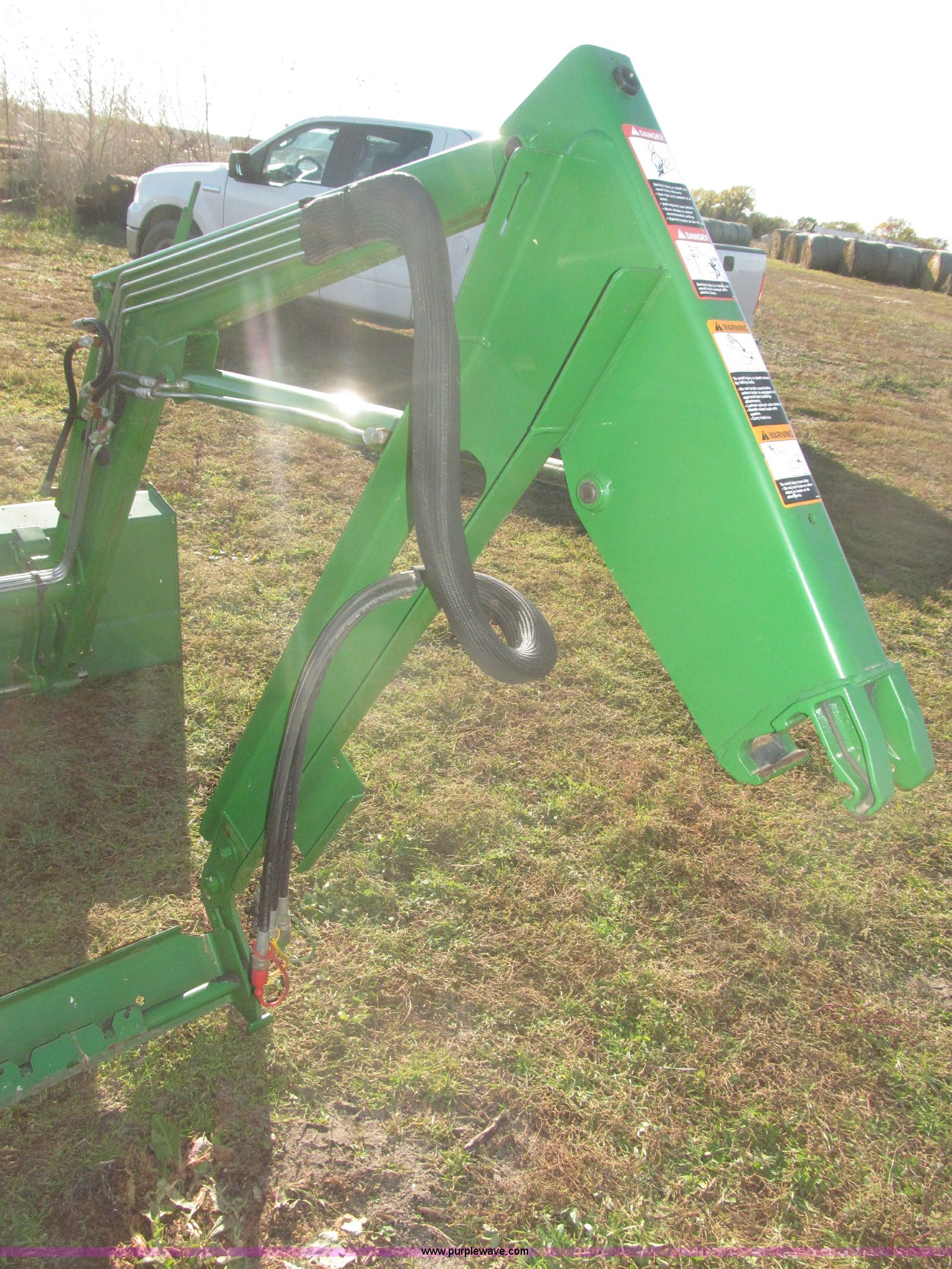 Purple Wave is selling a used Ag Tractor Loader or Attach. in Nebraska. This item is a John Deere 460 loader attachment with the following: (4) hydraulic lines with fittings, 3/8" scoops, Quick attach bucket bracket, Weld-on cutting edge, 74.5"W, 72 1/4" I.D. bucket, Hose covers and safety decals, No control lever, Serial W00460X031642