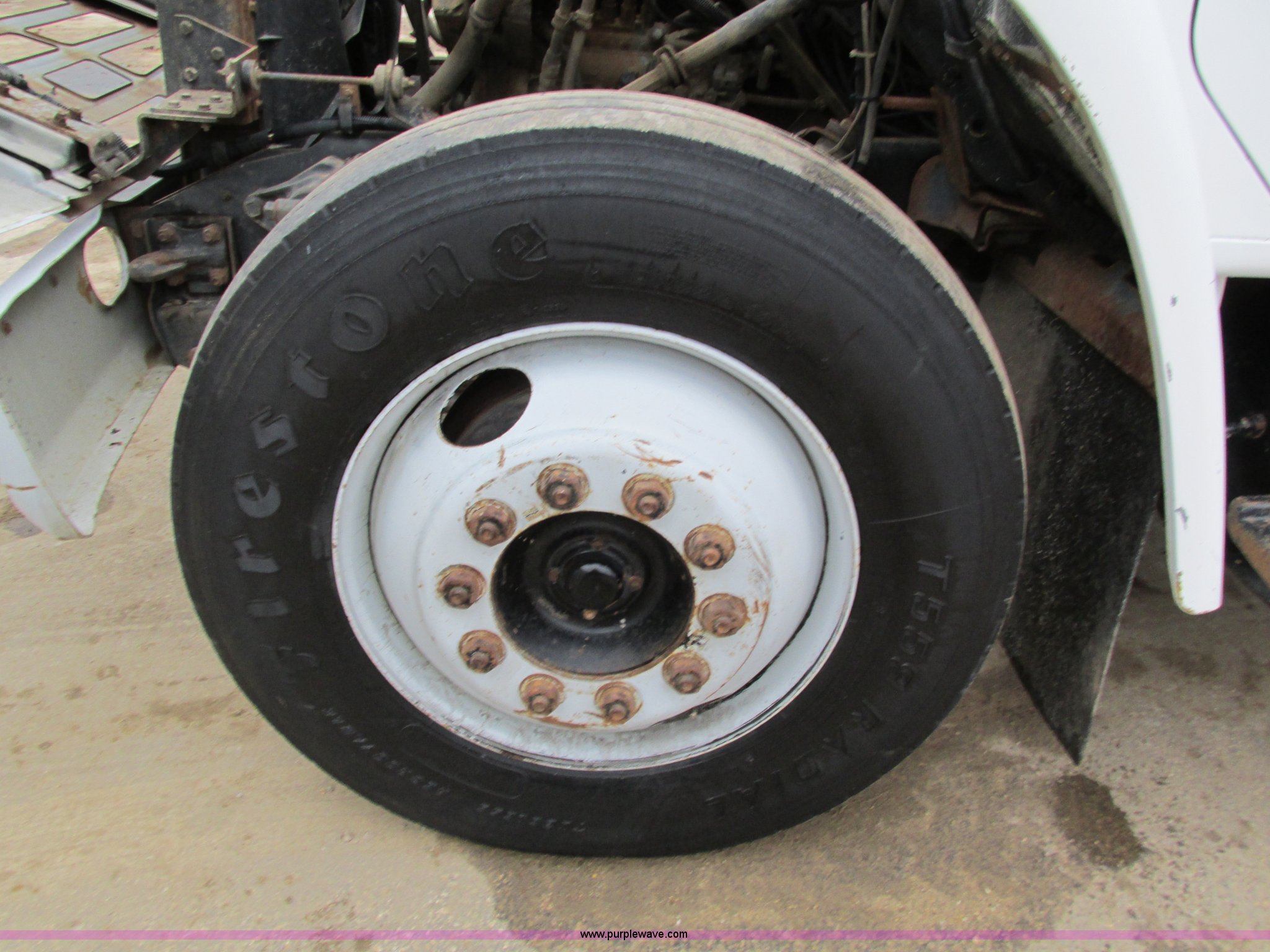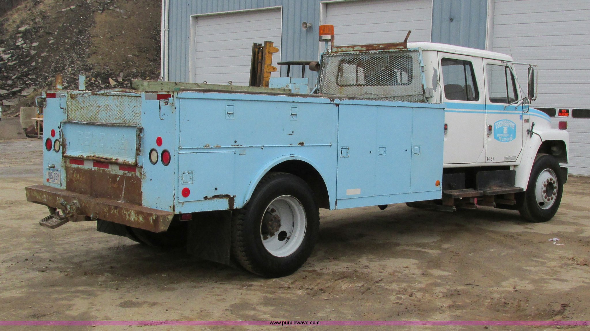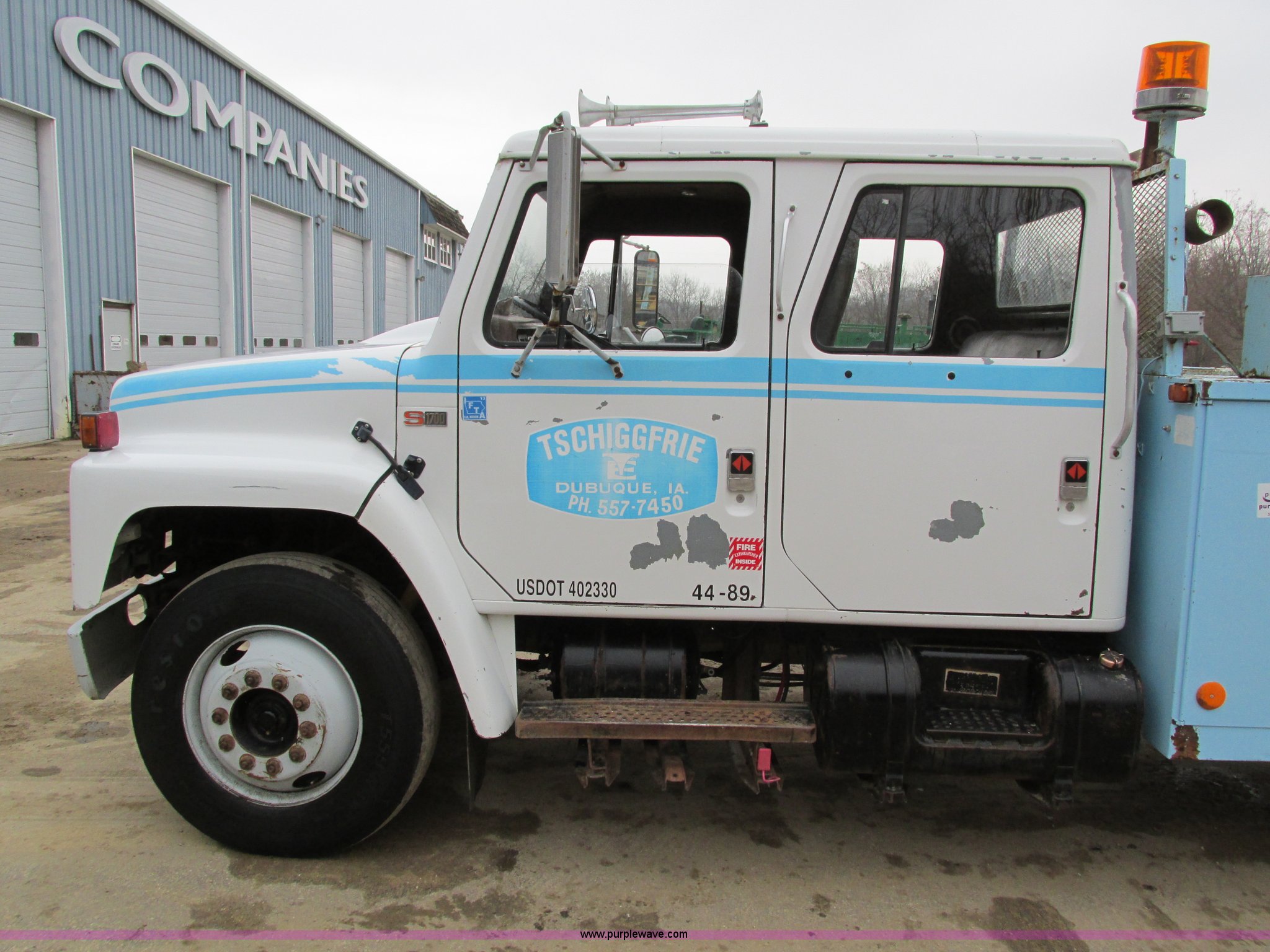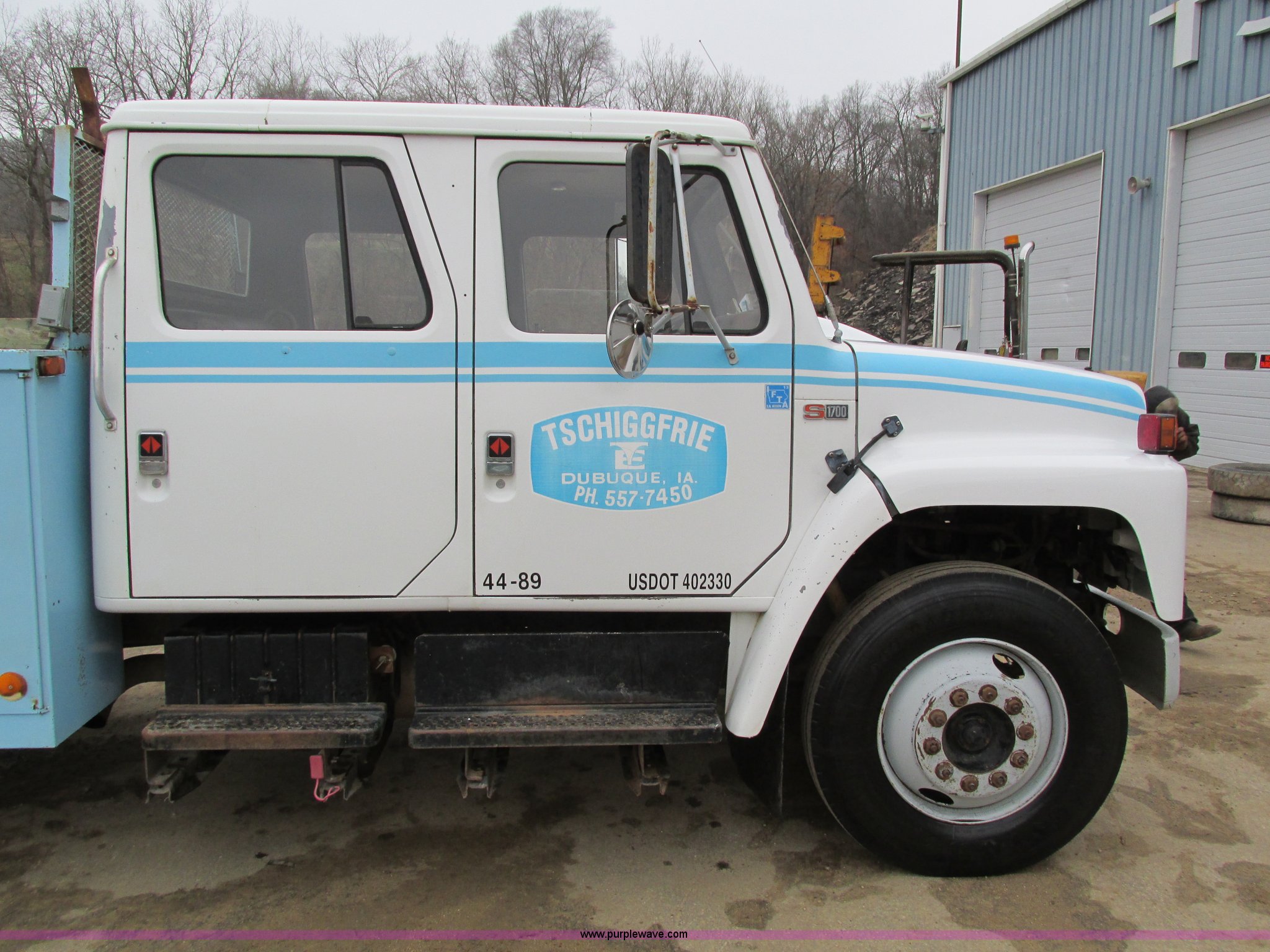 Purple Wave is selling a used Service Truck in Iowa. This item is a 1989 International 1754 utility truck with the following: International DT360 5.9L L6 diesel engine, 170 HP, Allison AT500 automatic transmission, Heat, AM/FM/CD, Manual windows and locks, Vinyl/cloth interior, 12.5' utility bed, 50 gallon fuel tank, Receiver hitch, Trailer wiring, 10R22.5 tires, 12 ply, Federal inspection completed April 2013, Service records available, Unit# 44-89